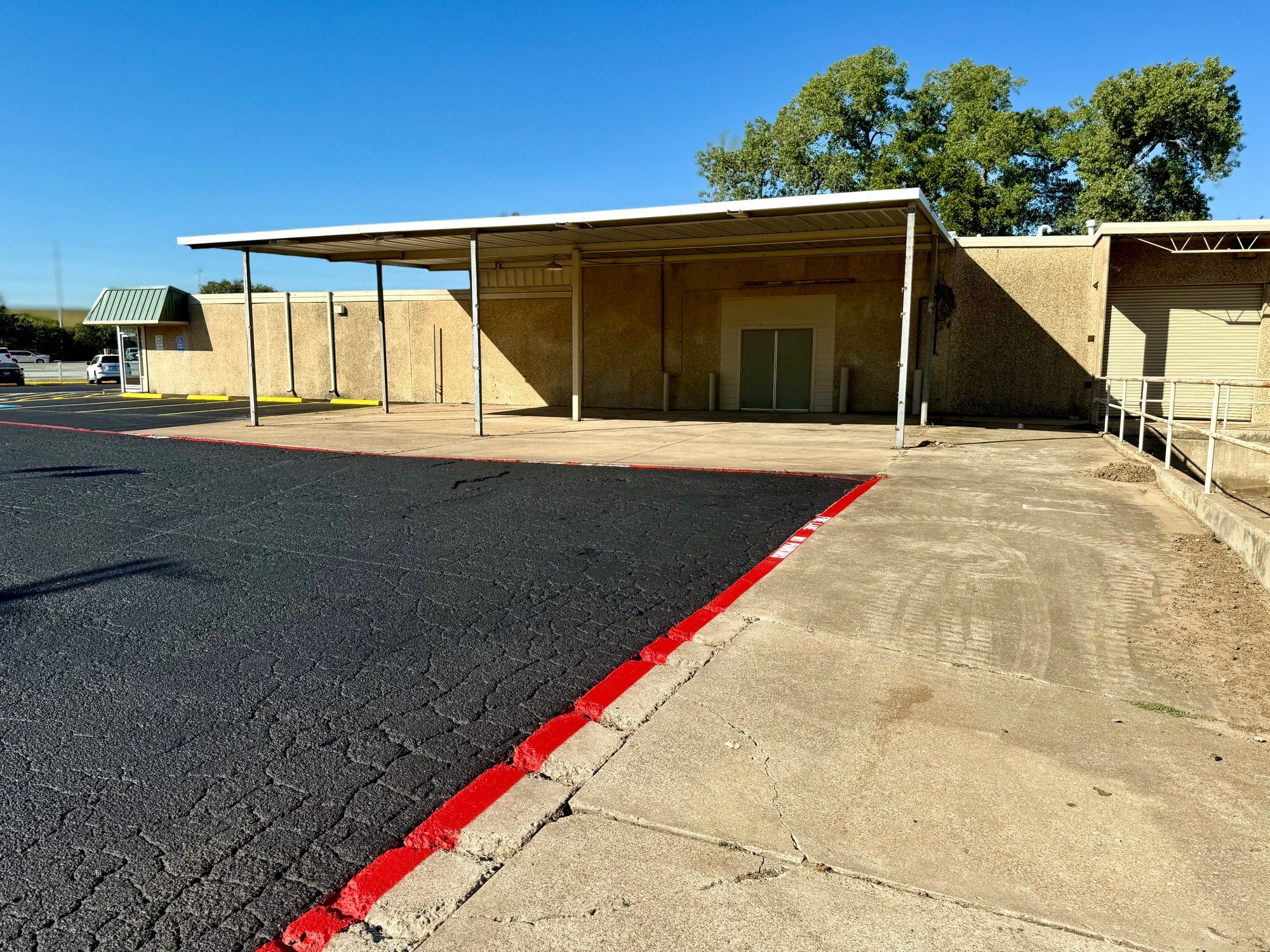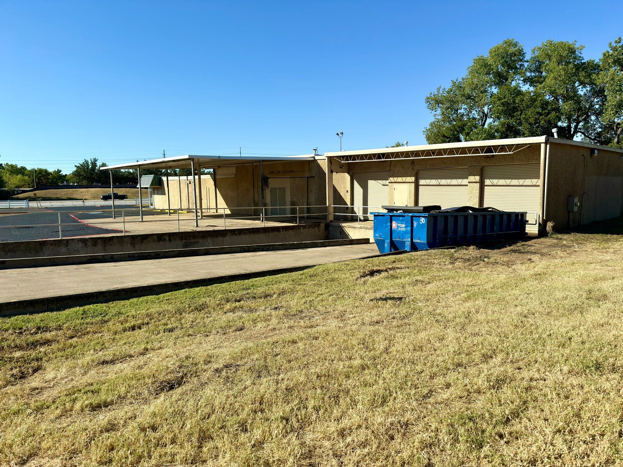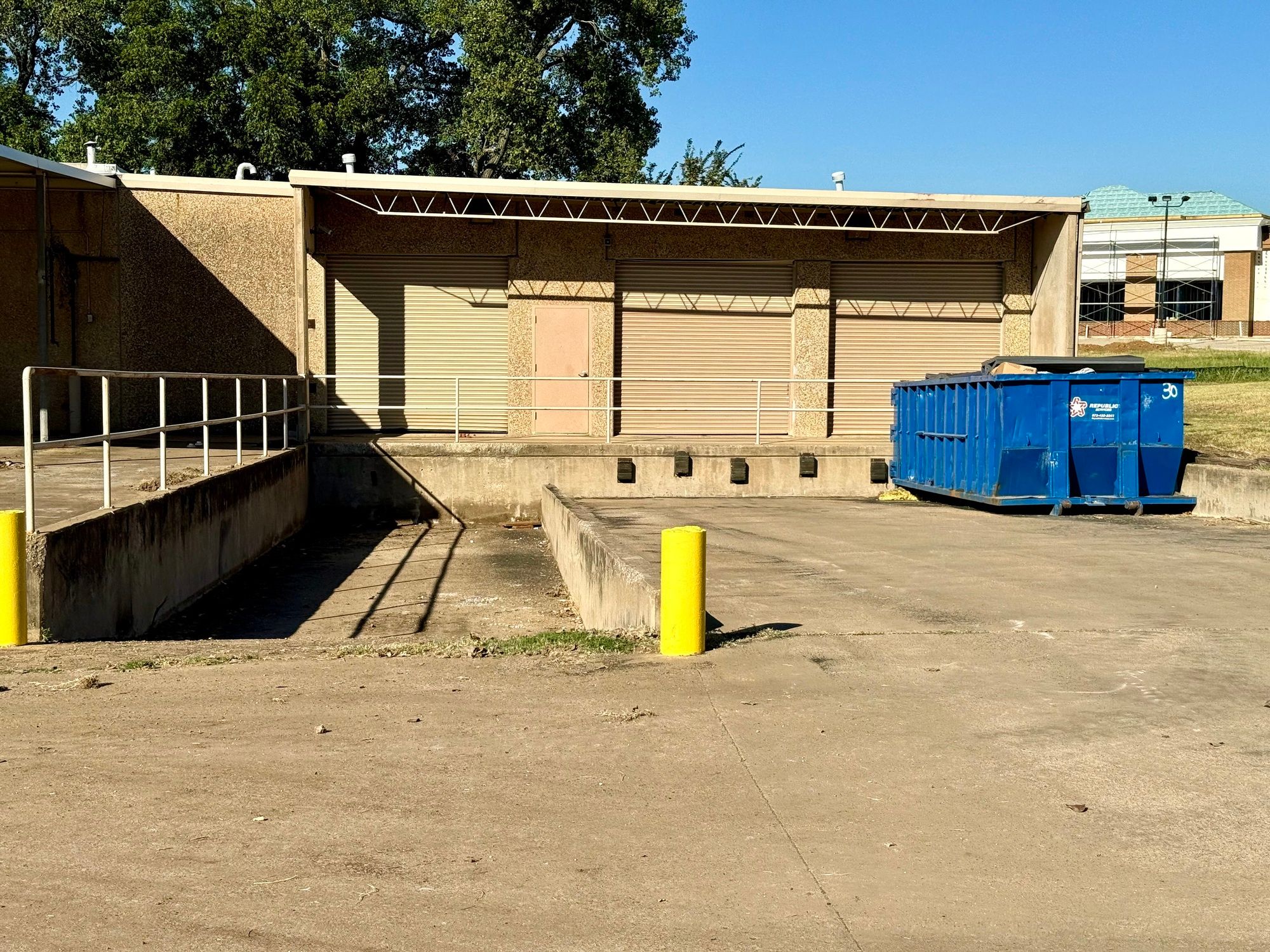 Flex office warehouse with dock doors and gated parking.