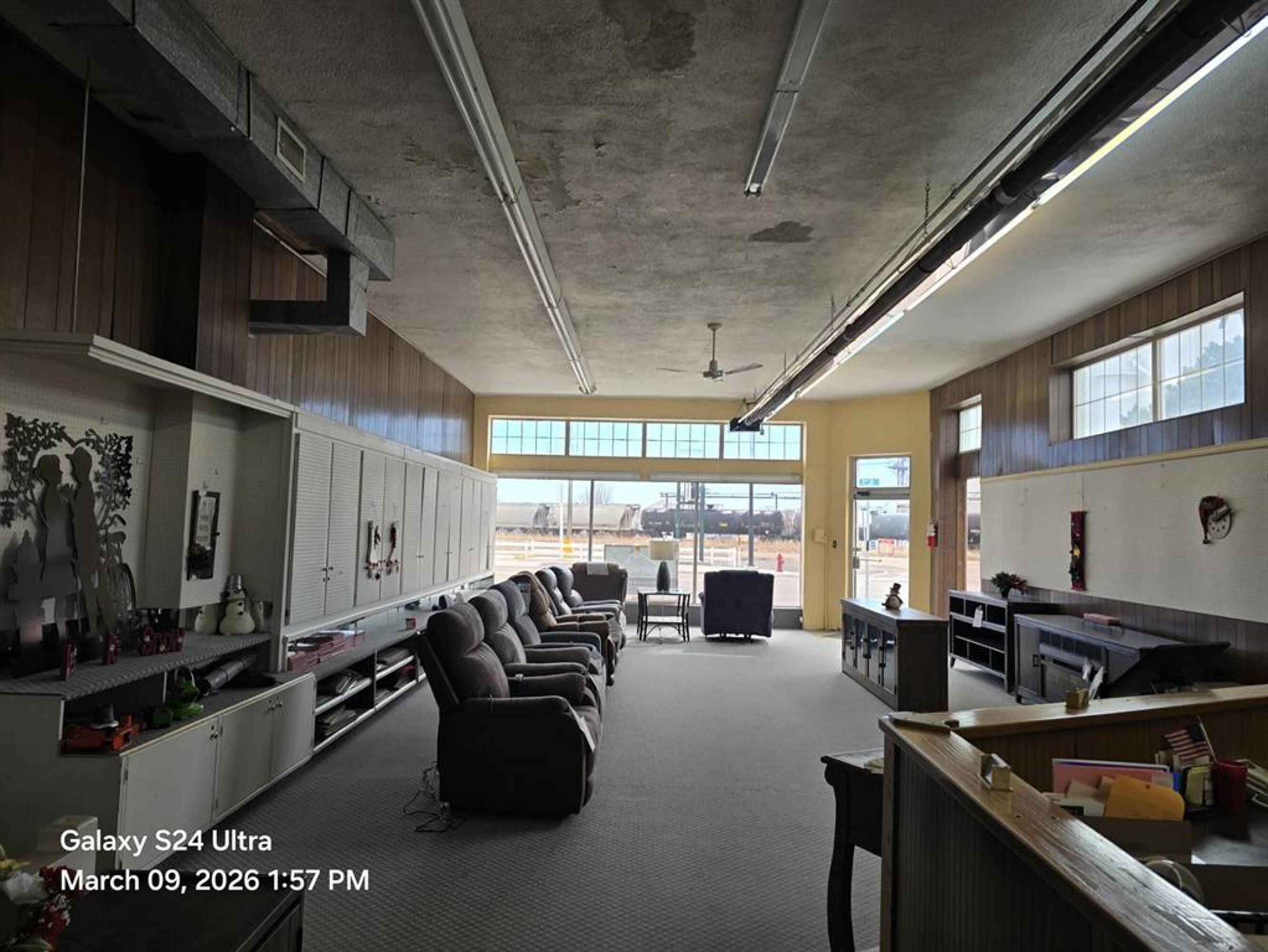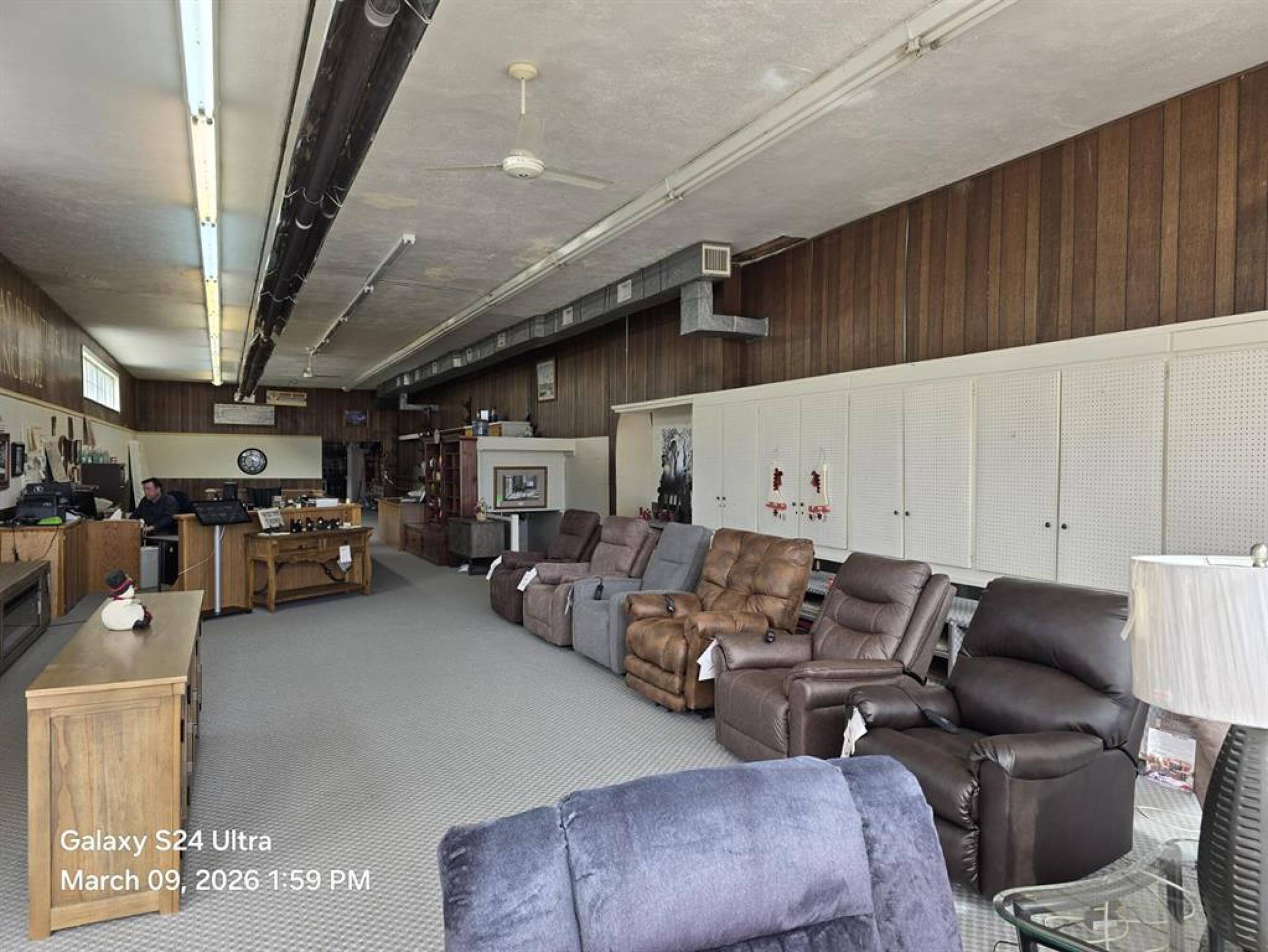 Commercial property with showrooms, storage, and warehouse space on Highway 30.