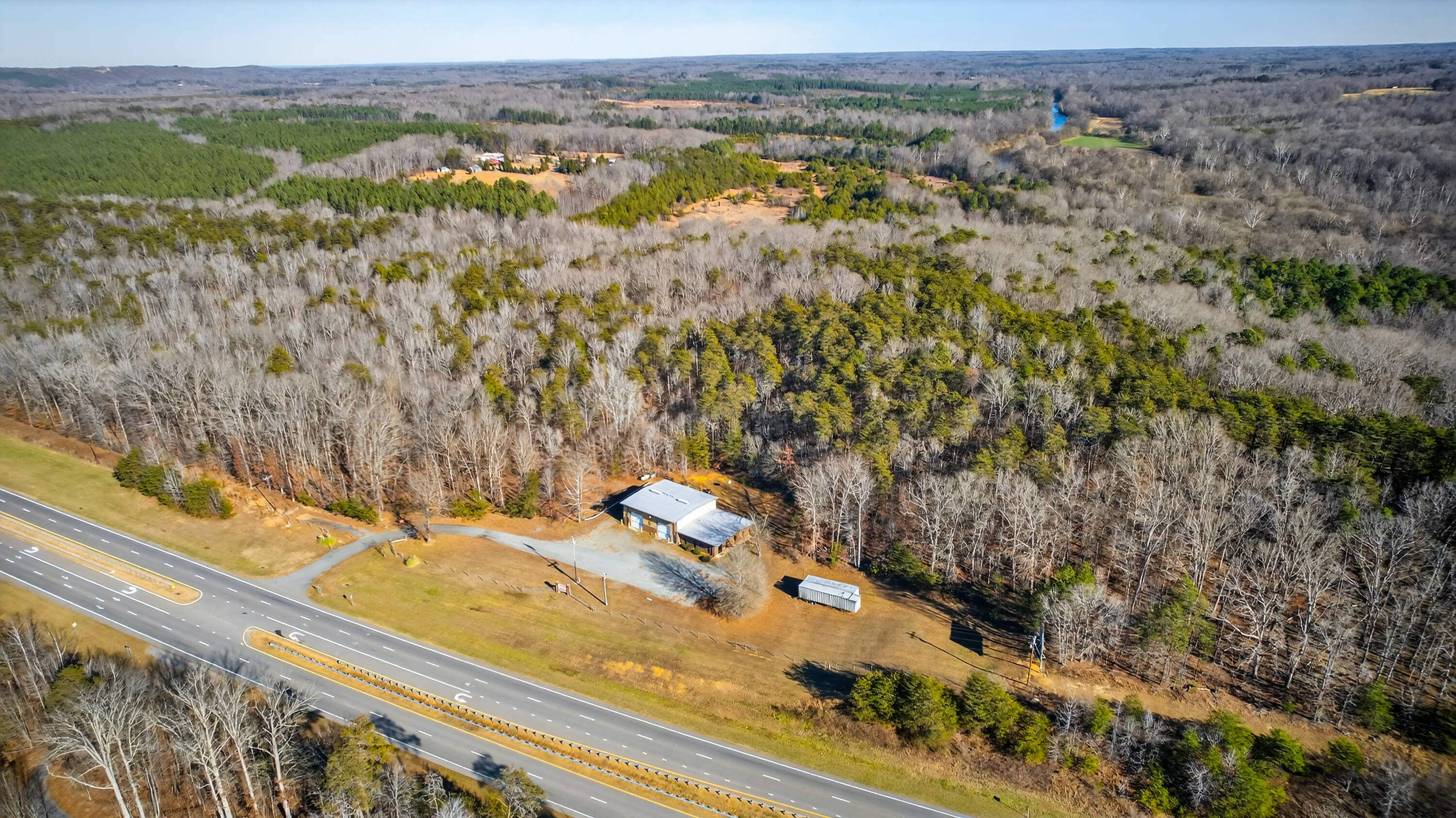 This property features approximately 122 acres with significant exposure along US-220/73, including over 5,000 feet of highway frontage and approximately 1,500 feet of direct Dan River frontage. Located 23 miles north of Piedmont Triad International Airport, the site offers convenient regional access. Existing improvements include a 4,600-square-foot multi-functional building with a combination of office and garage/workshop space. The building features five private offices, a reception area, a storage room, and two bathrooms. It also includes two oversized bay doors suitable for large vehicles, equipment, or service operations. The expansive acreage offers privacy, flexibility, and long-term development potential, supporting various commercial, industrial, agricultural, or investment uses. The Dan River frontage enhances the property’s scenic appeal and value. The property presents a compelling opportunity for owner-users or investors seeking scale and versatility.