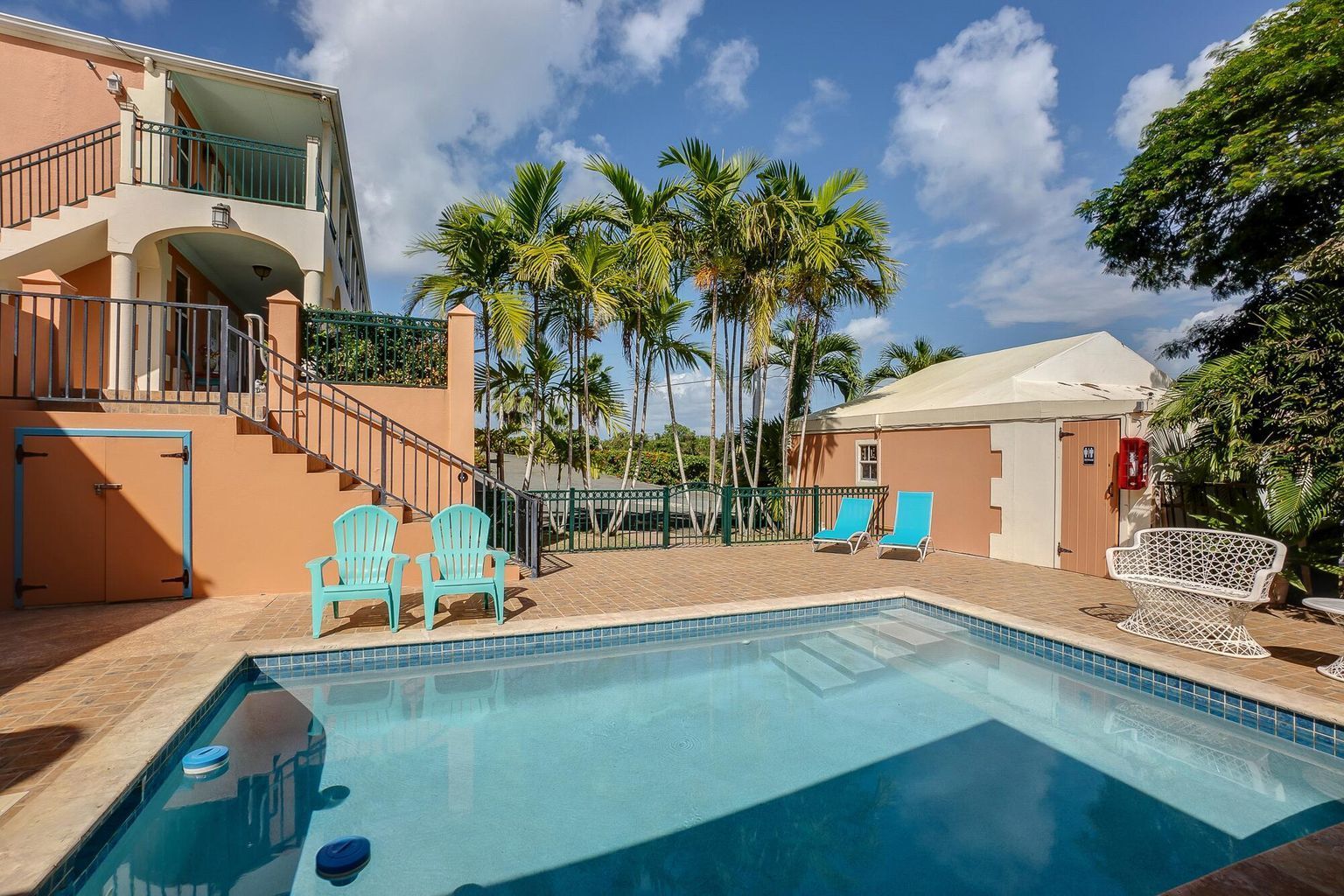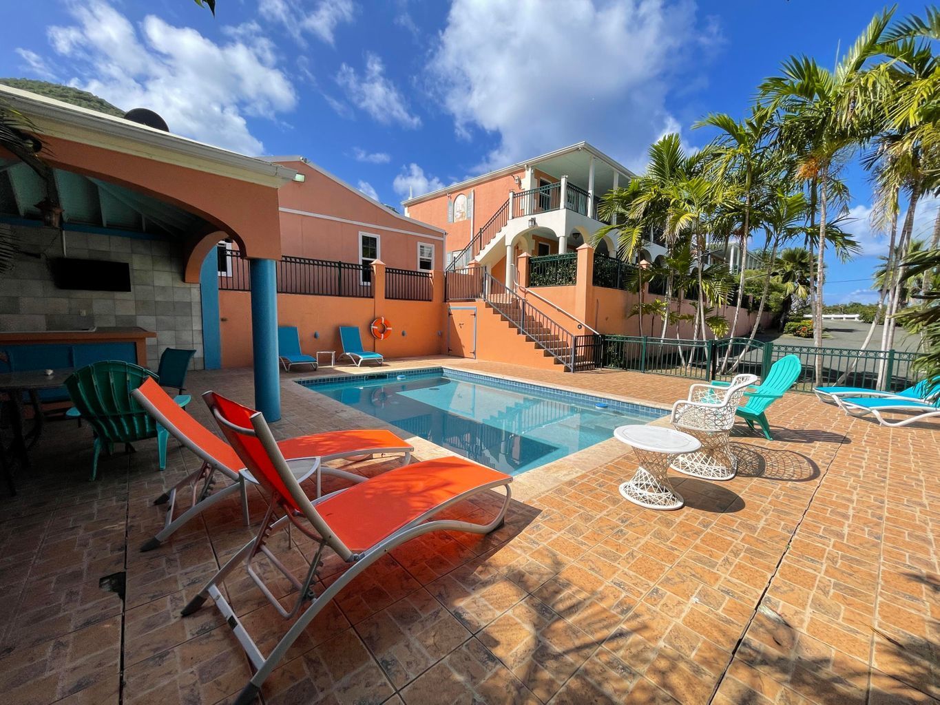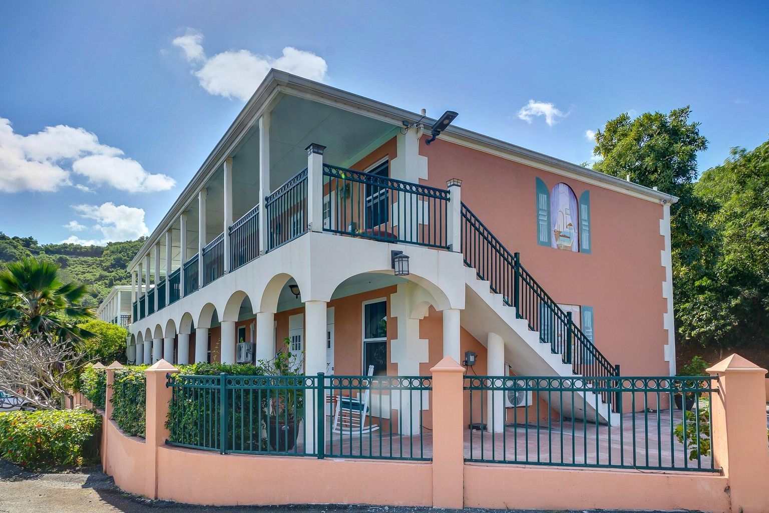 Arawak Bay: The Inn at Salt River, built in 2007, is a charming 15-room boutique hotel located on St. Croix's North Shore. Constructed to high standards, the property features poured concrete, impact glass, and solar net metering. Each room offers both interior and exterior access, keyless entry locks, split A/C units, and Cat6 access points for high-speed internet. Guests are welcomed into a lobby with a sitting room and a dining room with a full kitchen. A swimming pool with a covered poolside bar and grill area is surrounded by a spacious pool deck. The property includes professional tropical landscaping and ample parking. Each of the 15 rooms has its own unique style, with some offering enough space for a kitchenette or additional seating. Verandas provide views of the Caribbean Sea and neighboring islands. The inn features a separate conference room with a full kitchen, suitable for meetings, weddings, or retreats. A backup generator ensures uninterrupted electricity. The property is located minutes from Cane Bay, known for its restaurants, beaches, and diving and snorkeling spots. The meeting space and pool can be used as a classroom. It is a 15-minute drive to Christiansted and offers easy access to the highway for trips to the airport or Frederiksted. Amenities include over 100 solar panels with net metering, cloud-based reservation software, security cameras with cloud-based monitoring, impact glass, a 30 KW backup generator with transfer switch, two 30-gallon cisterns, a concrete pool with a new pump, a drip irrigation system, a private conference room with a full kitchen, a dining room with a full kitchen, and Dish Network satellite TV. The property size is 11,040 square feet.
