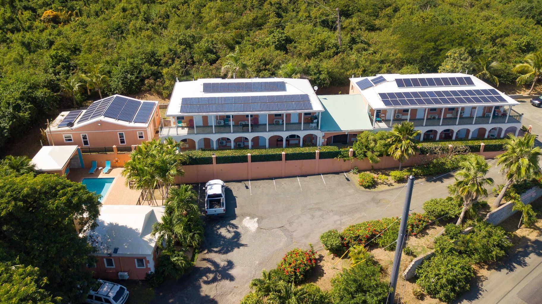 This property features: Established Boutique Hotel: Turn‑key, 15‑room bed and breakfast with a proven business model.; Prime Location: Minutes from Cane Bay's attractions on St. Croix's North Shore, and a short drive to Christiansted and the airport.; Sustainable and Resilient: Features solar net metering, impact glass, and a backup generator.