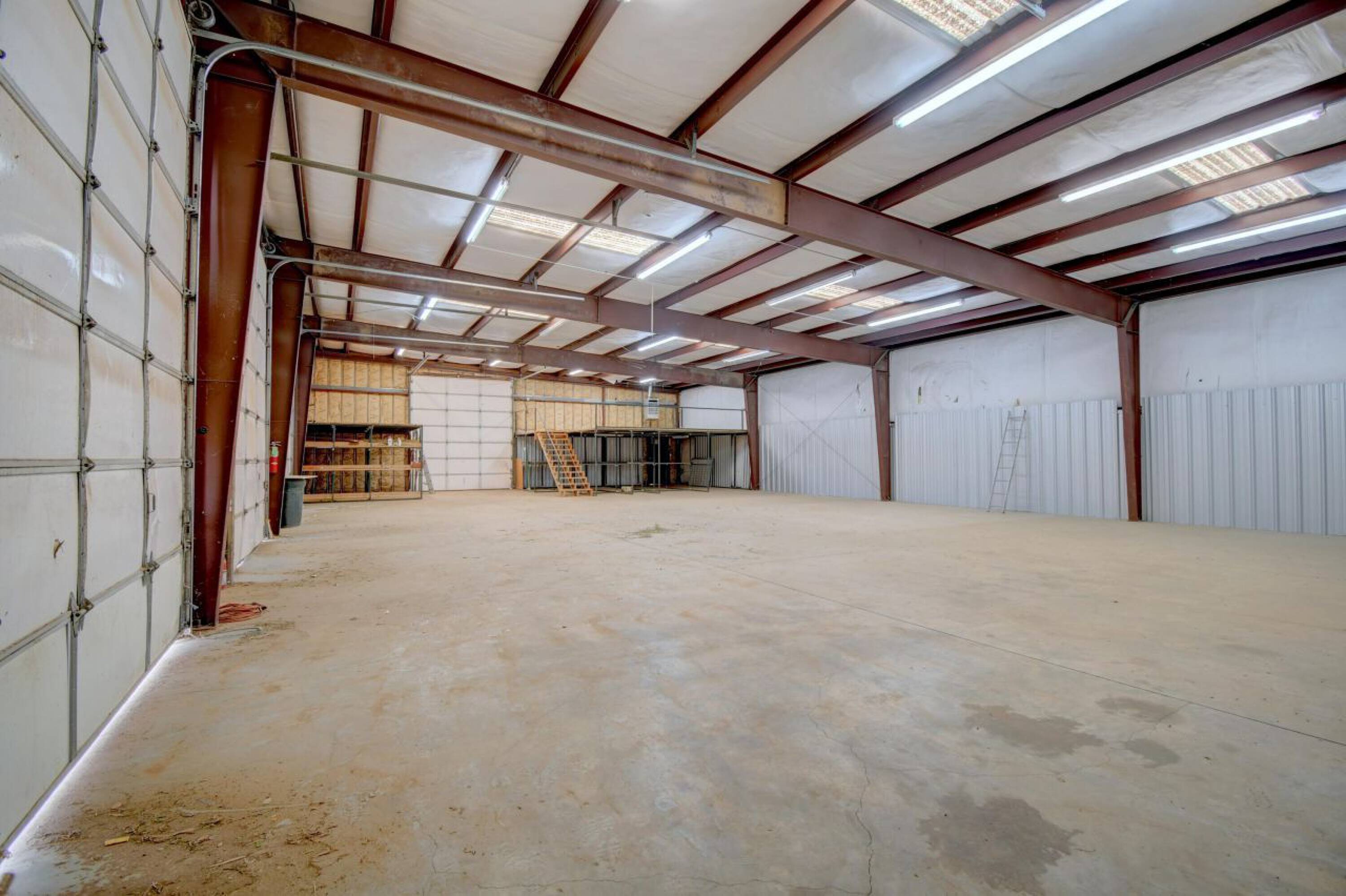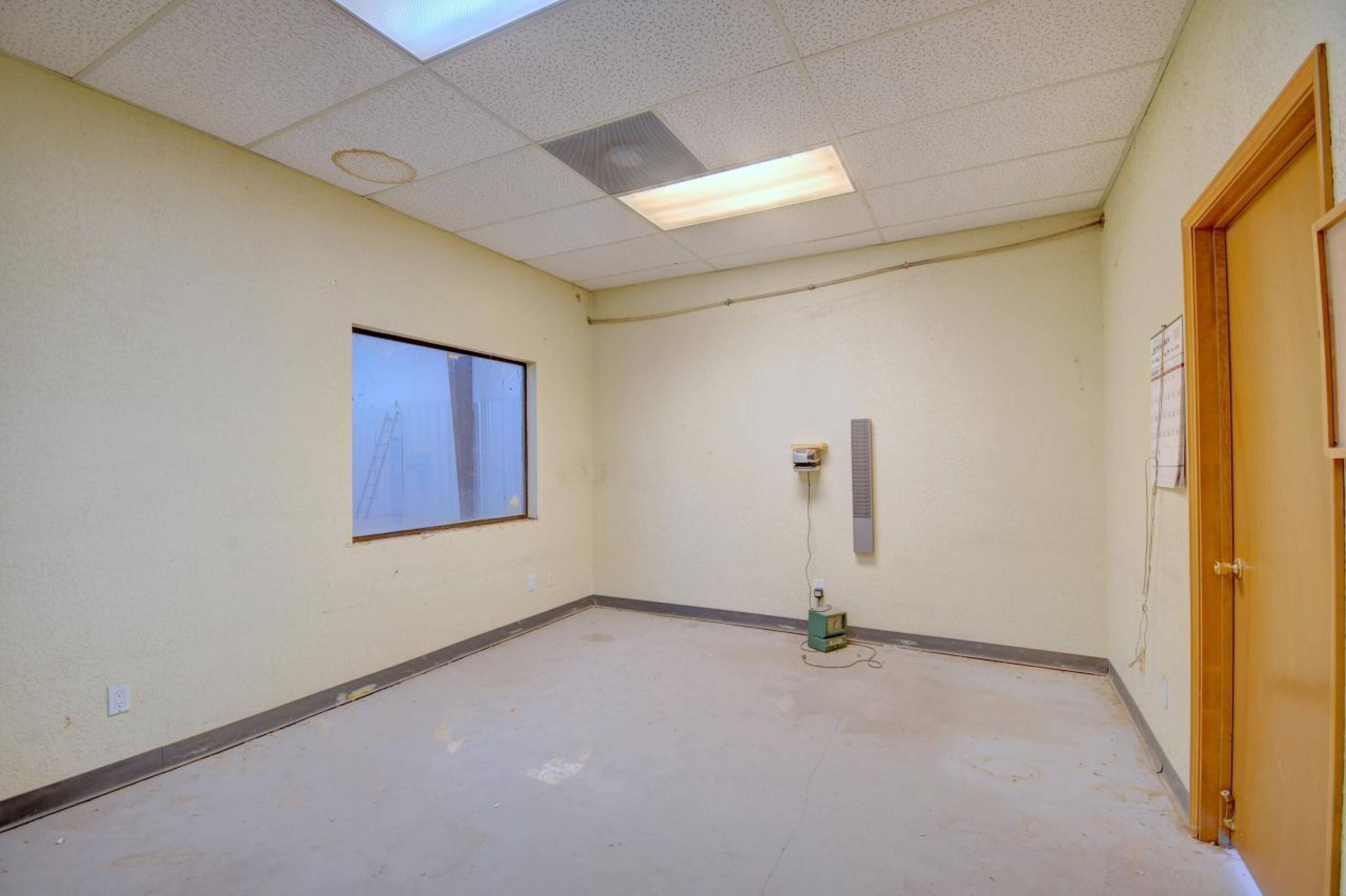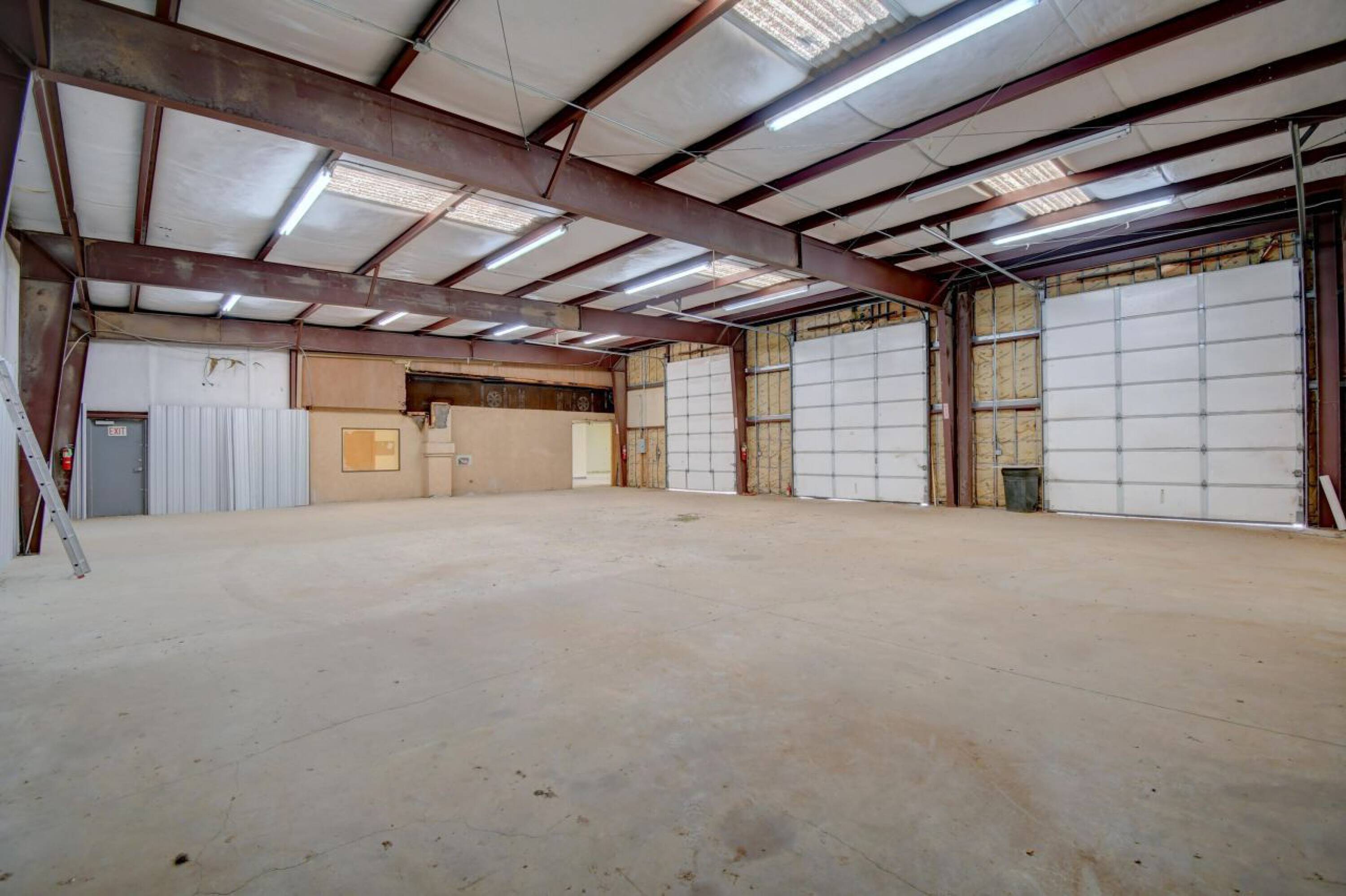 Secure warehouse building with office space, bay doors, and baths.