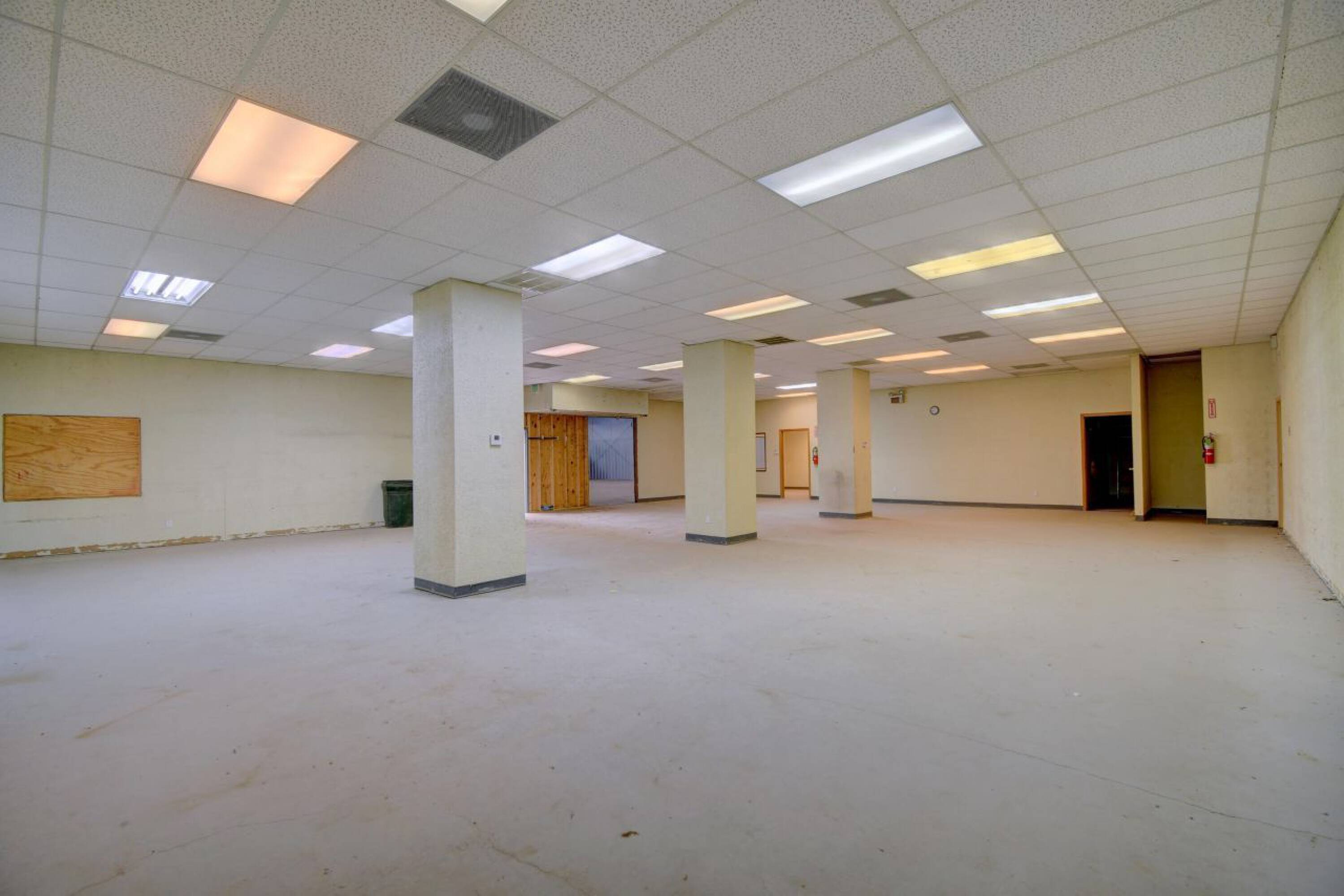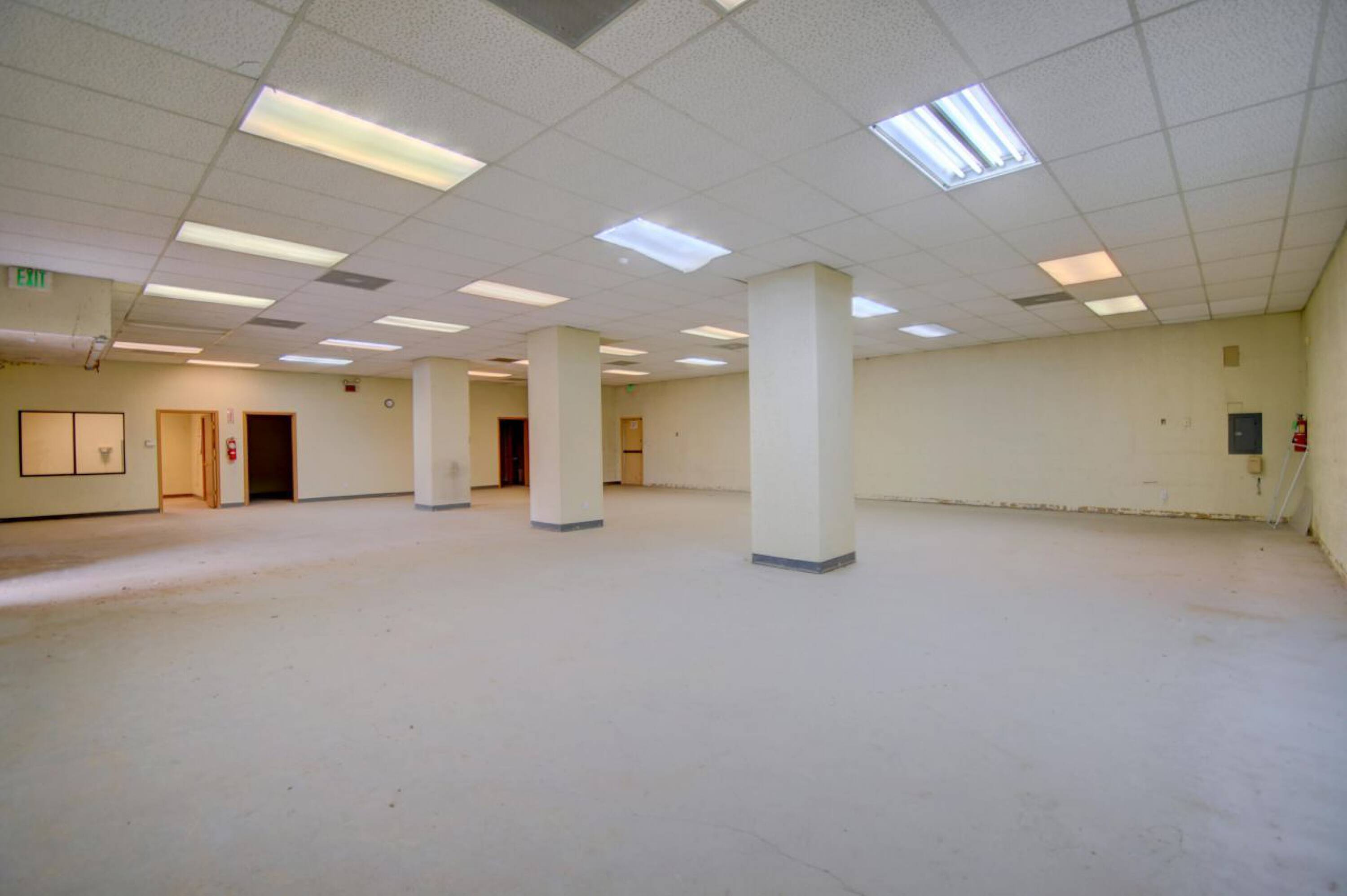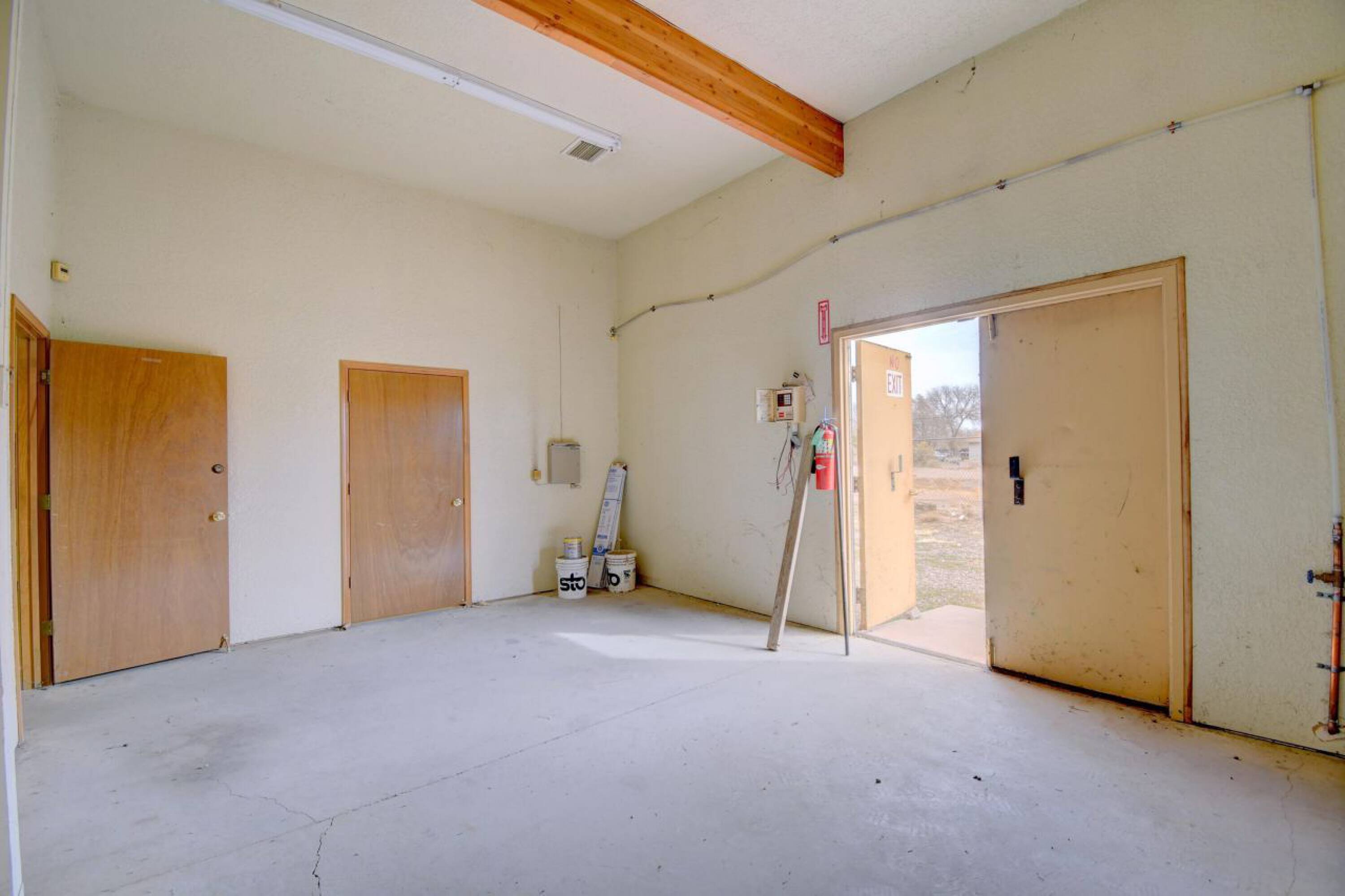 Secure warehouse building with office space, bay doors, and baths.