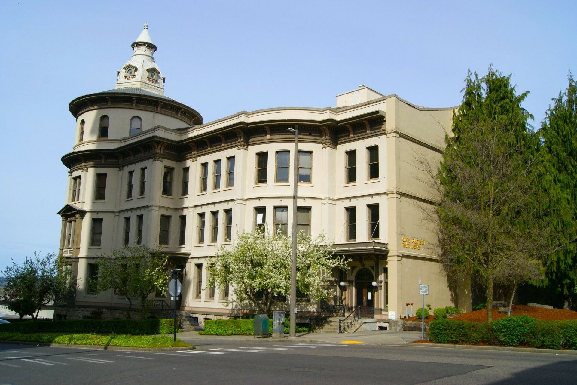 One Pacific building, a Tacoma landmark originally built in 1889 as the Northern Pacific Railroad headquarters, was renovated in 1984, preserving its art-deco design. Under new ownership and management, this property is situated in the north historic corridor of downtown Tacoma. It offers office spaces ranging from 499 to 6,560 square feet, featuring natural light, large hallways, and high ceilings. Water and mountain views are available. The building provides secured access and on-site parking. Retail amenities are located just outside the building. Immediate freeway access is available. The property is adjacent to Firefighters Park. Upscale executive suites and a top-floor penthouse are available. The office spaces are move-in ready.