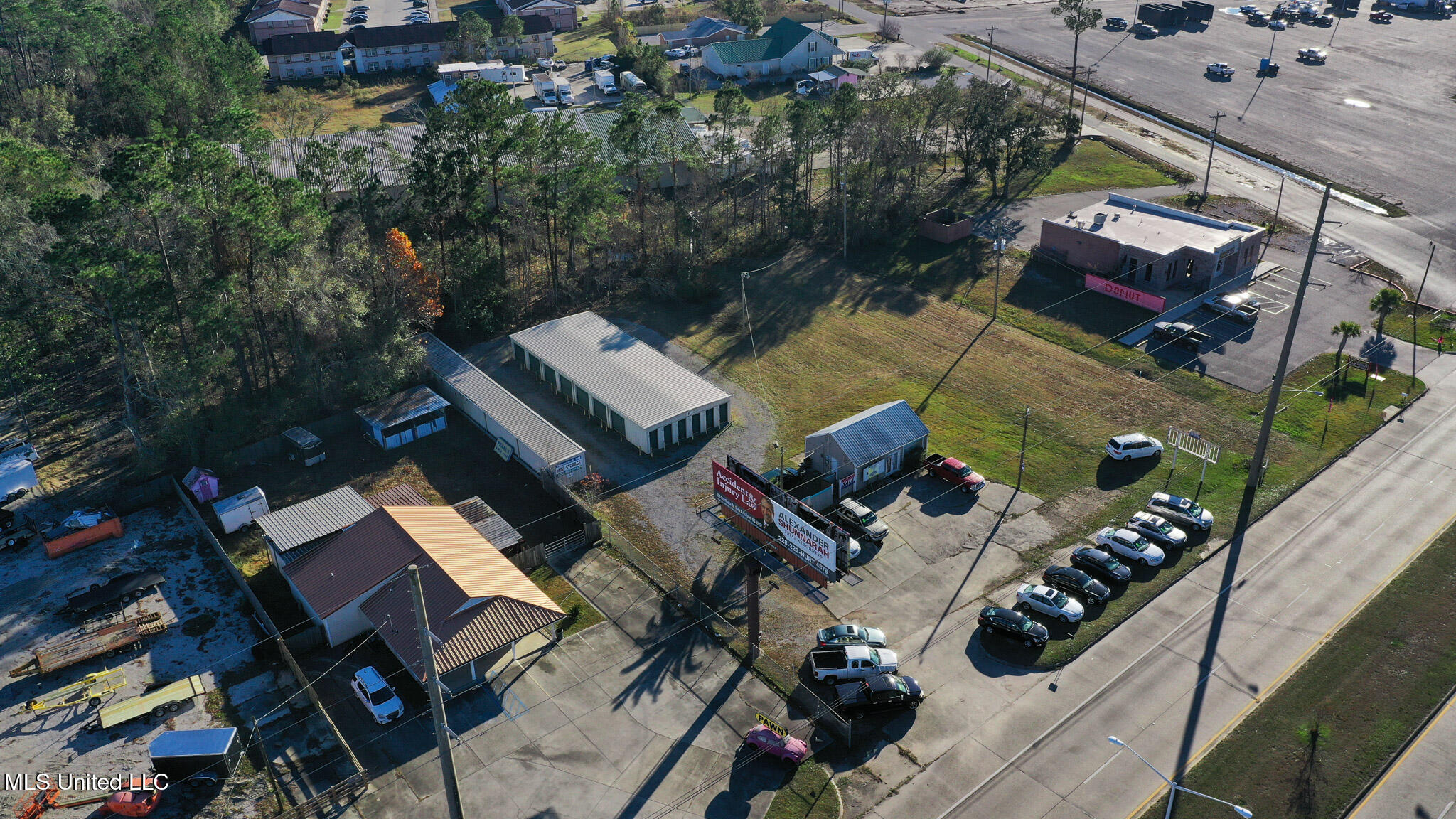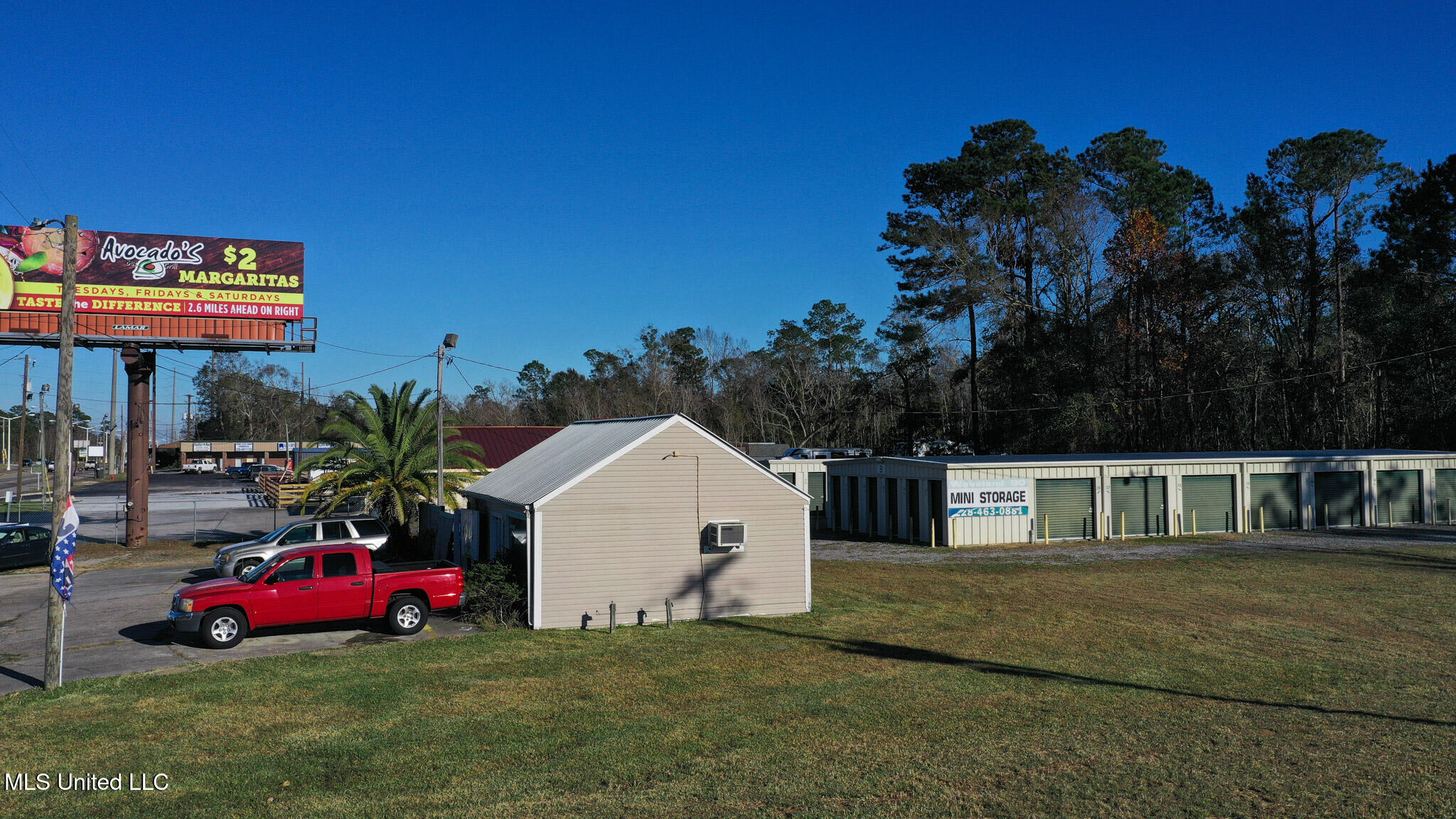 Office building with mini storage units on Highway 90.