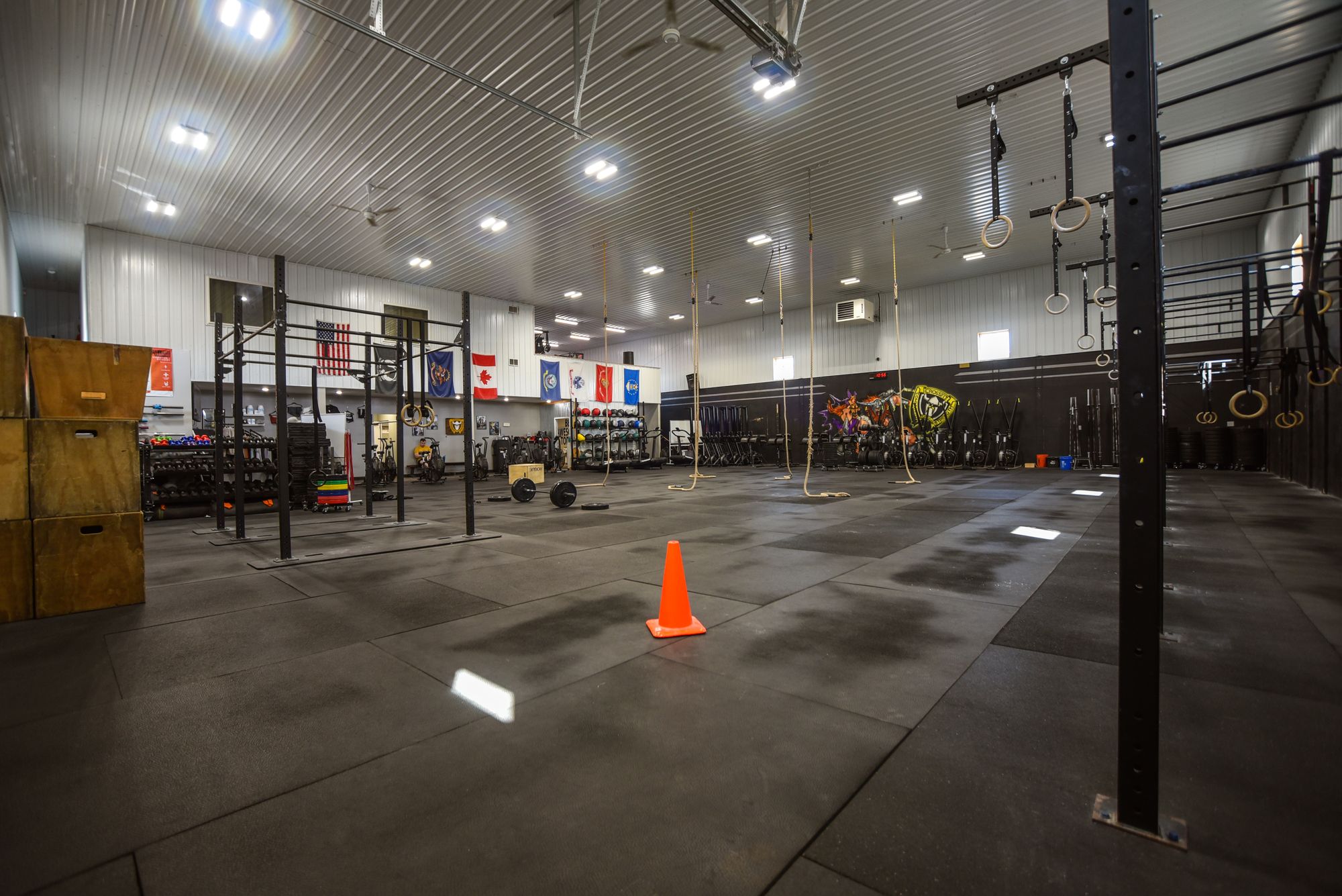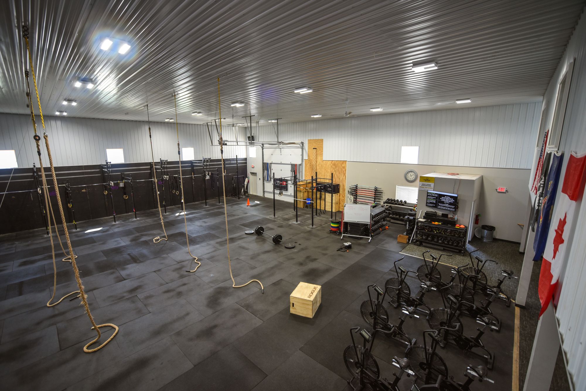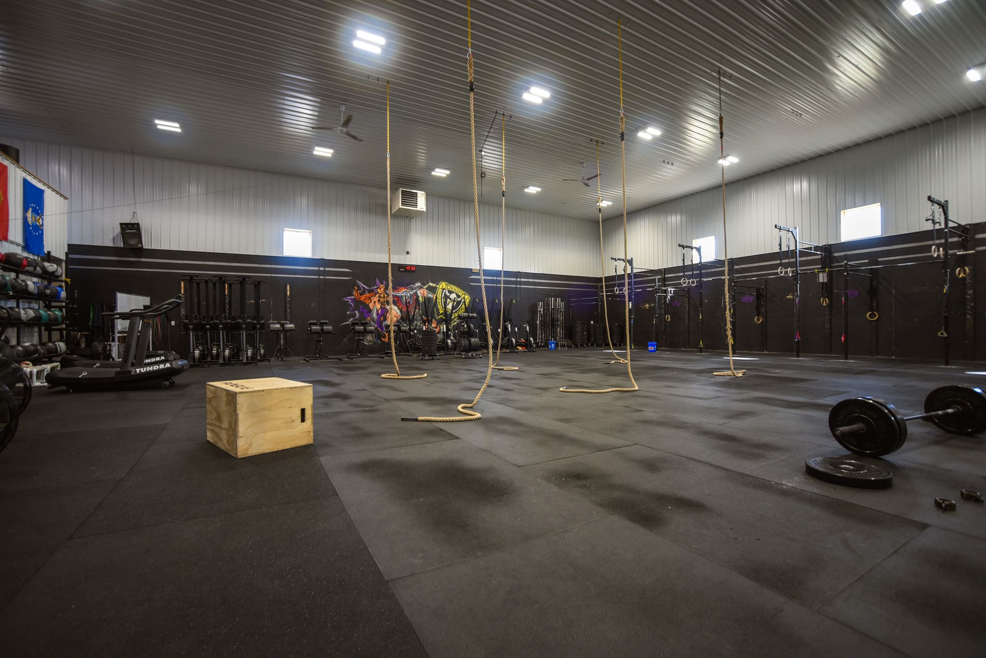 This 6300 square foot end bay is located in a busy industrial park. The space features two bathrooms, a mezzanine, and office space. Currently operating as a CrossFit gym, the property is suitable for conversion into a warehouse, auto service center, or sales hub. The property is situated within a busy industrial corridor and includes large bathrooms, office space, a retail area, and a mezzanine with improvements.