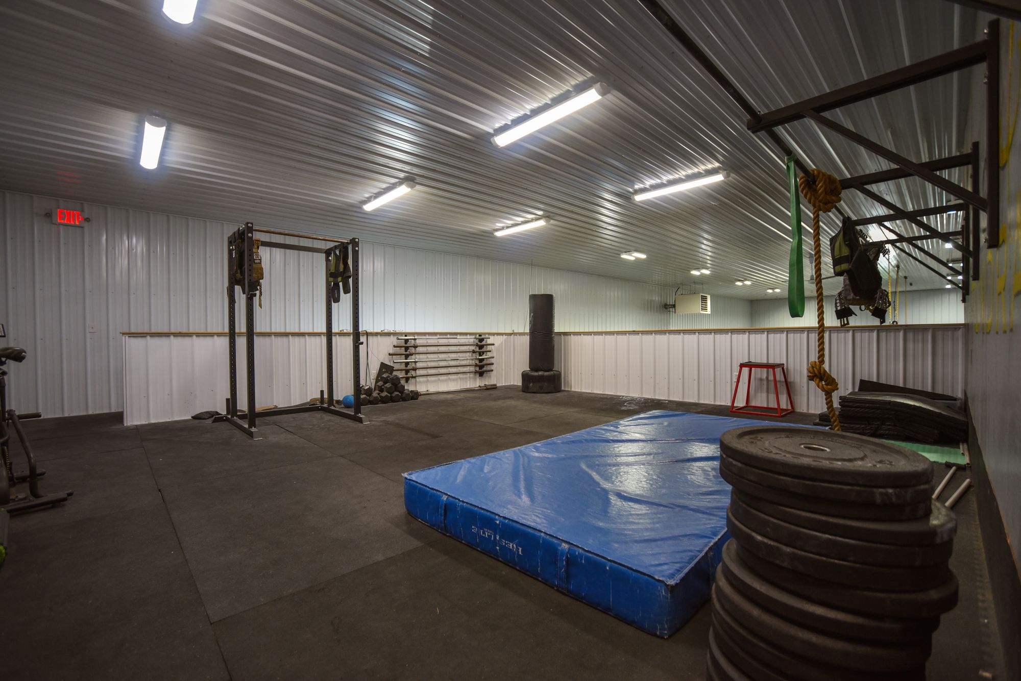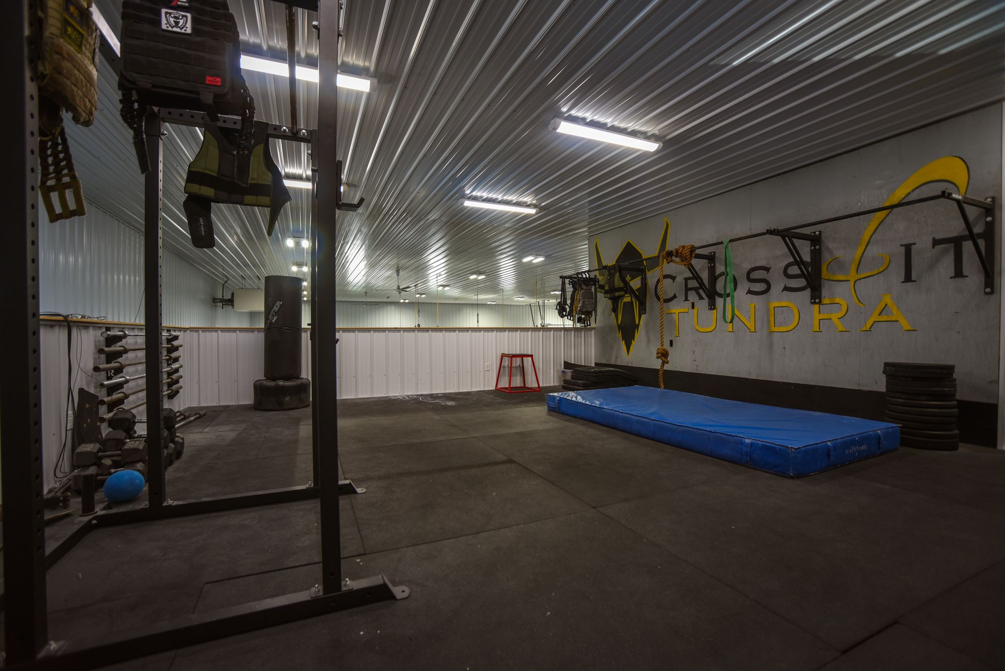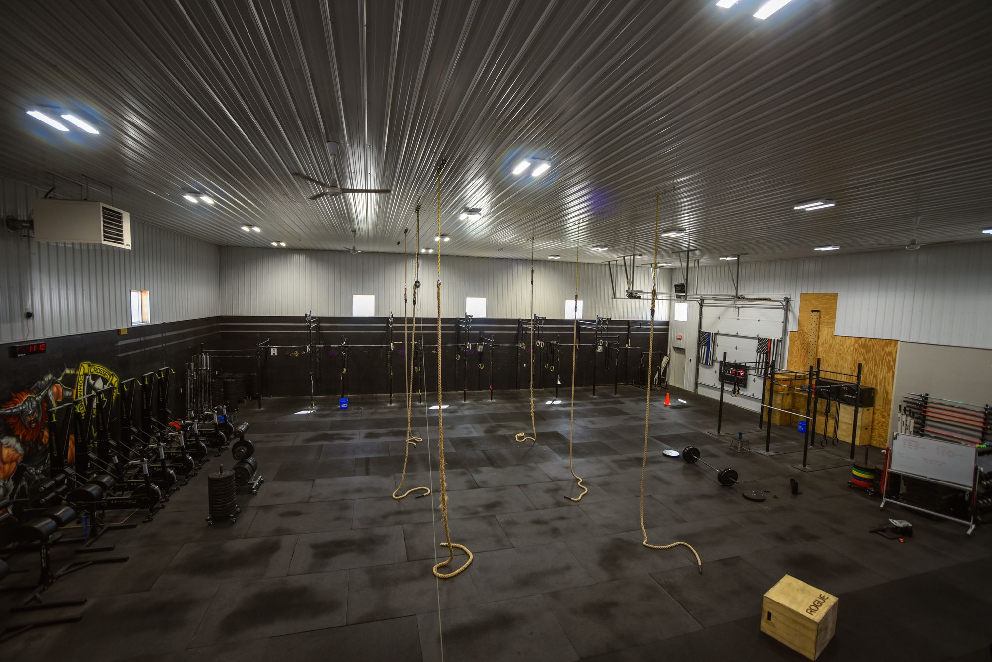 This 6300 square foot end bay is located in a busy industrial park. The space features two bathrooms, a mezzanine, and office space. Currently operating as a CrossFit gym, the property is suitable for conversion into a warehouse, auto service center, or sales hub. The property is situated within a busy industrial corridor and includes large bathrooms, office space, a retail area, and a mezzanine with improvements.