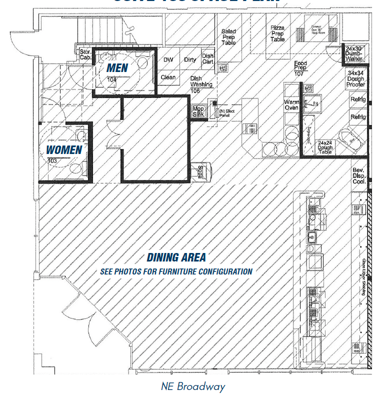 Restaurant spaces available for lease in the Lloyd District.