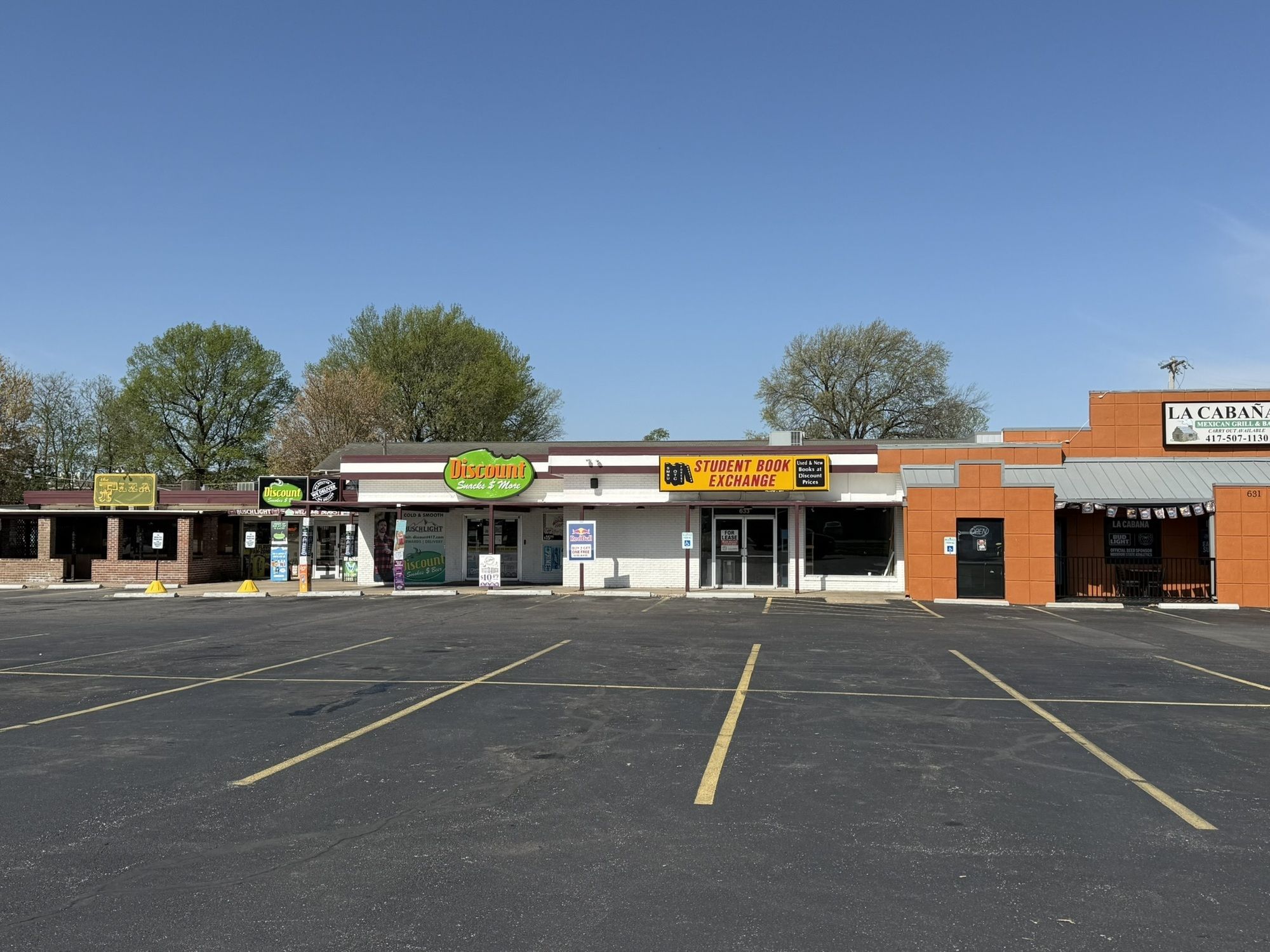 Wide open retail spaces near Missouri State University.