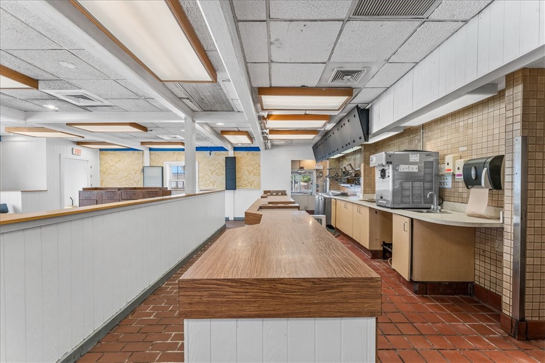 Turn-key restaurant with drive-through and ample parking for sale.