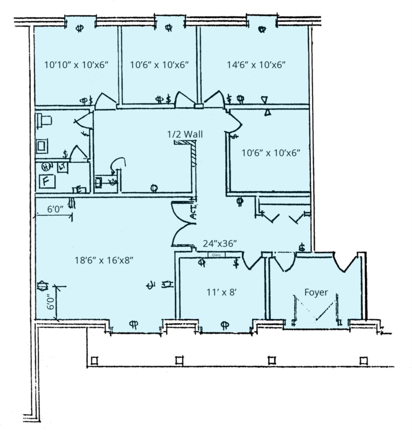 Move-in ready office spaces with main road signage and convenient parking.