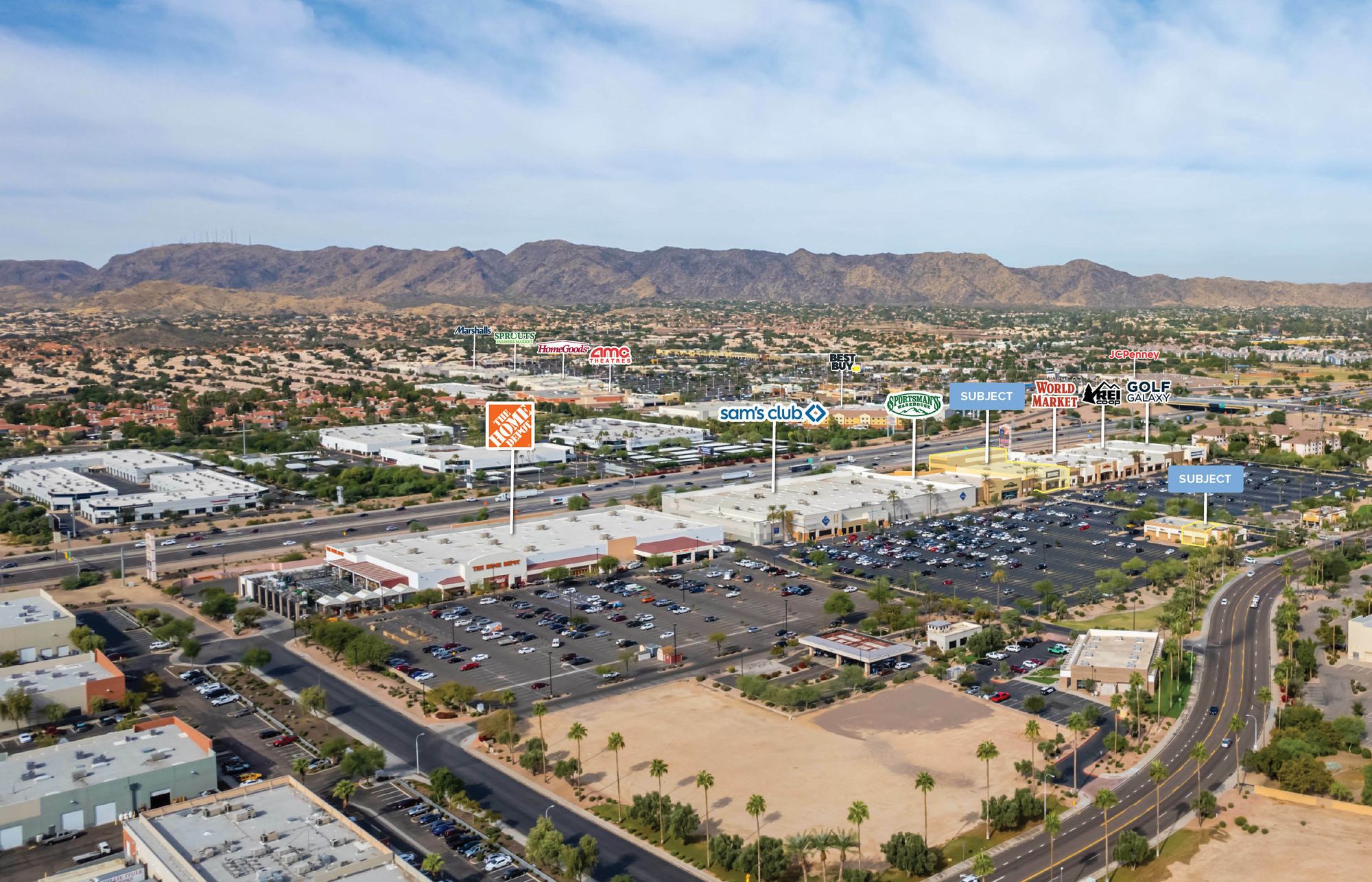 Regional power center with national big box co-tenants.