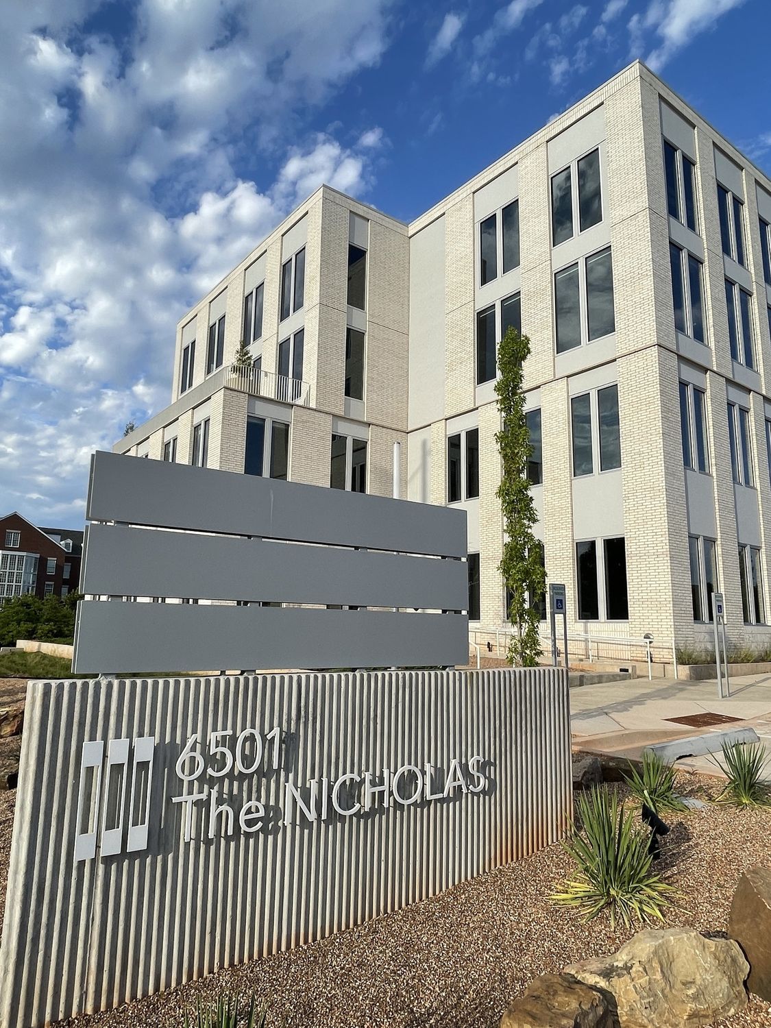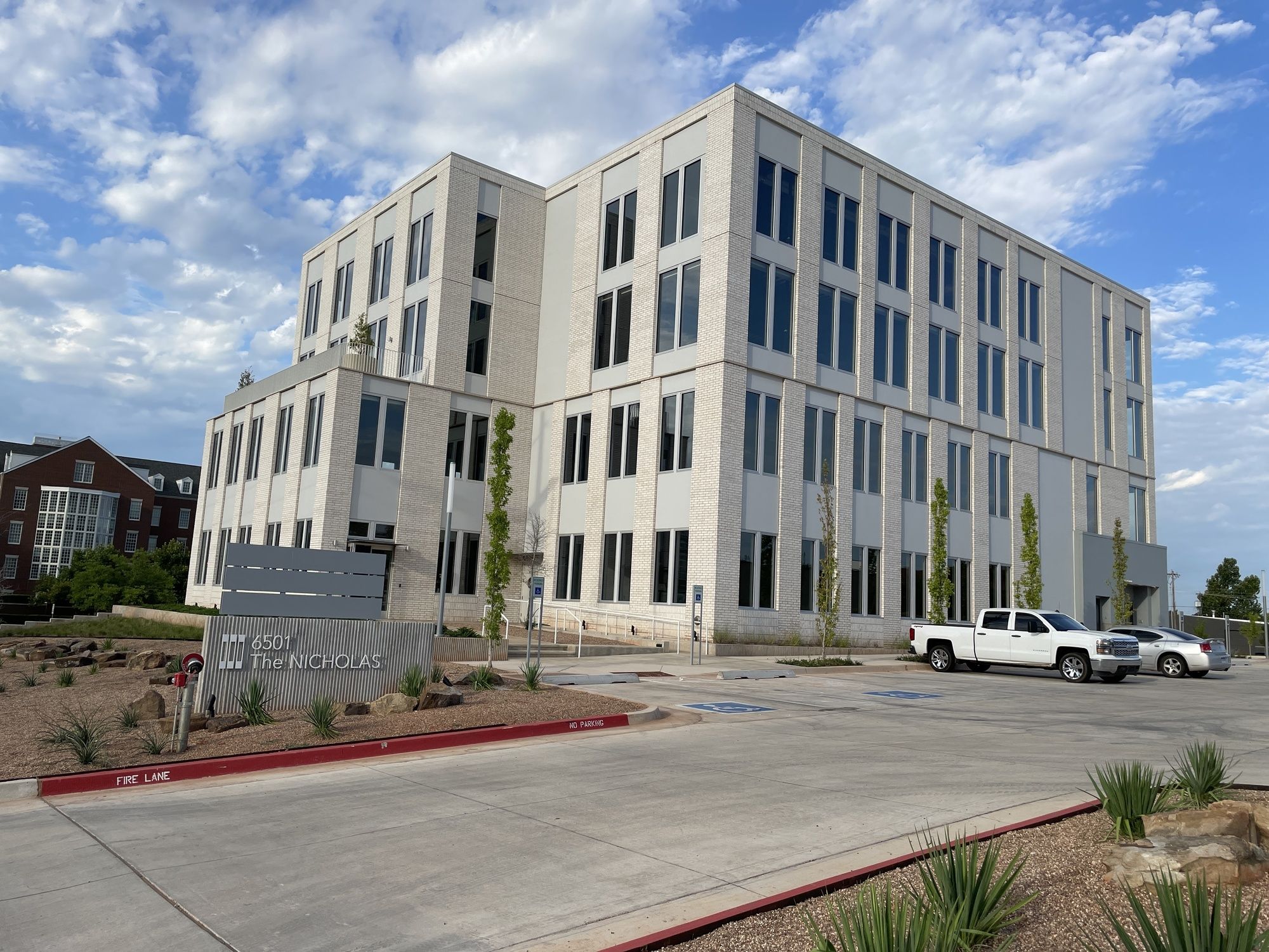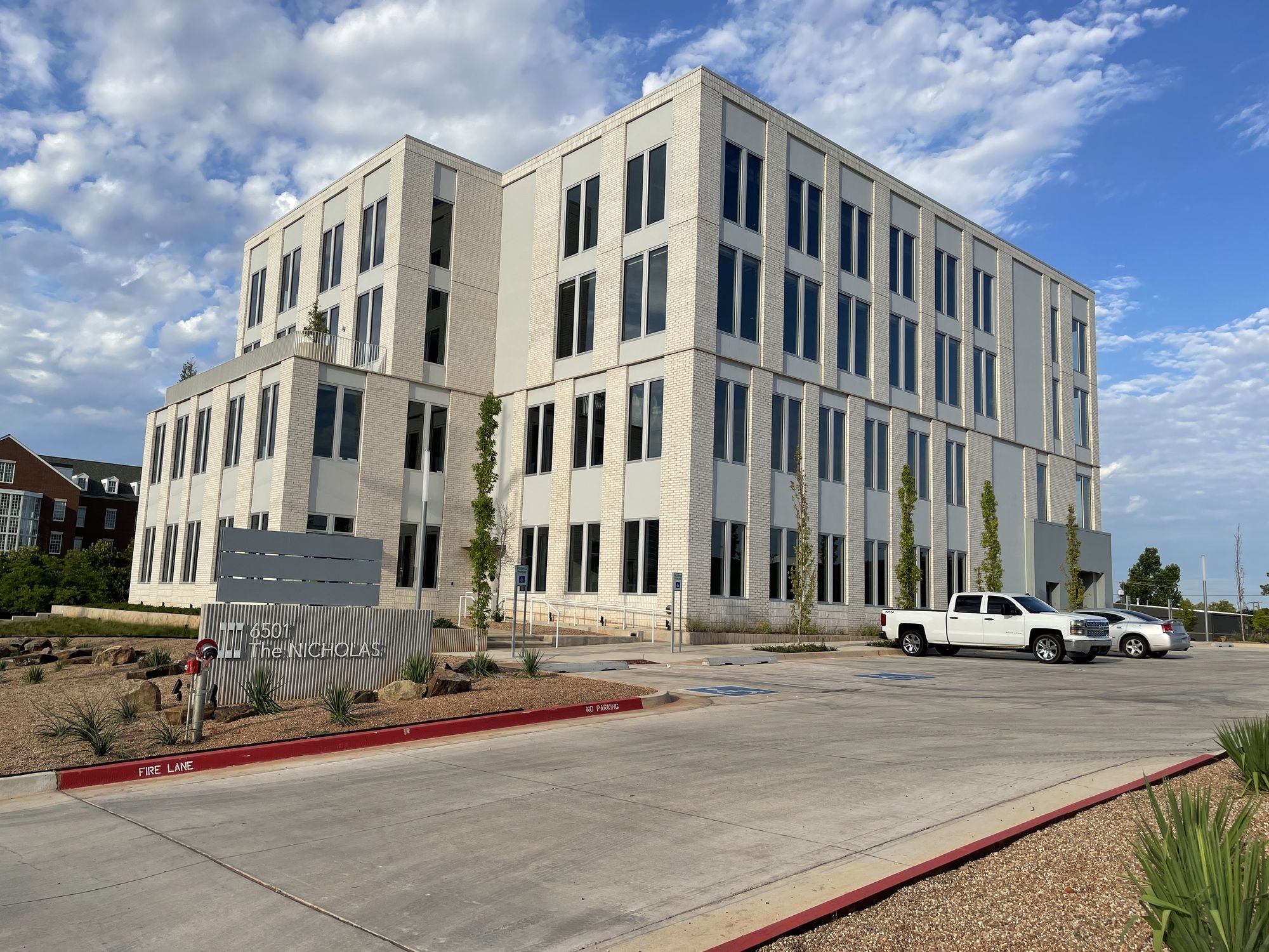Four-story office building near Nichols Hills Plaza with ample parking.