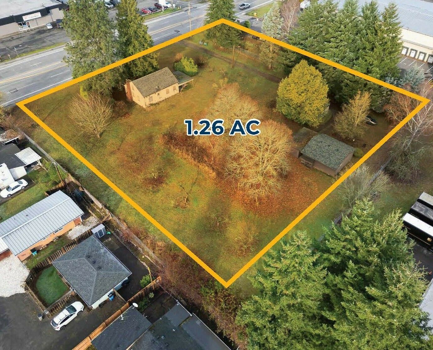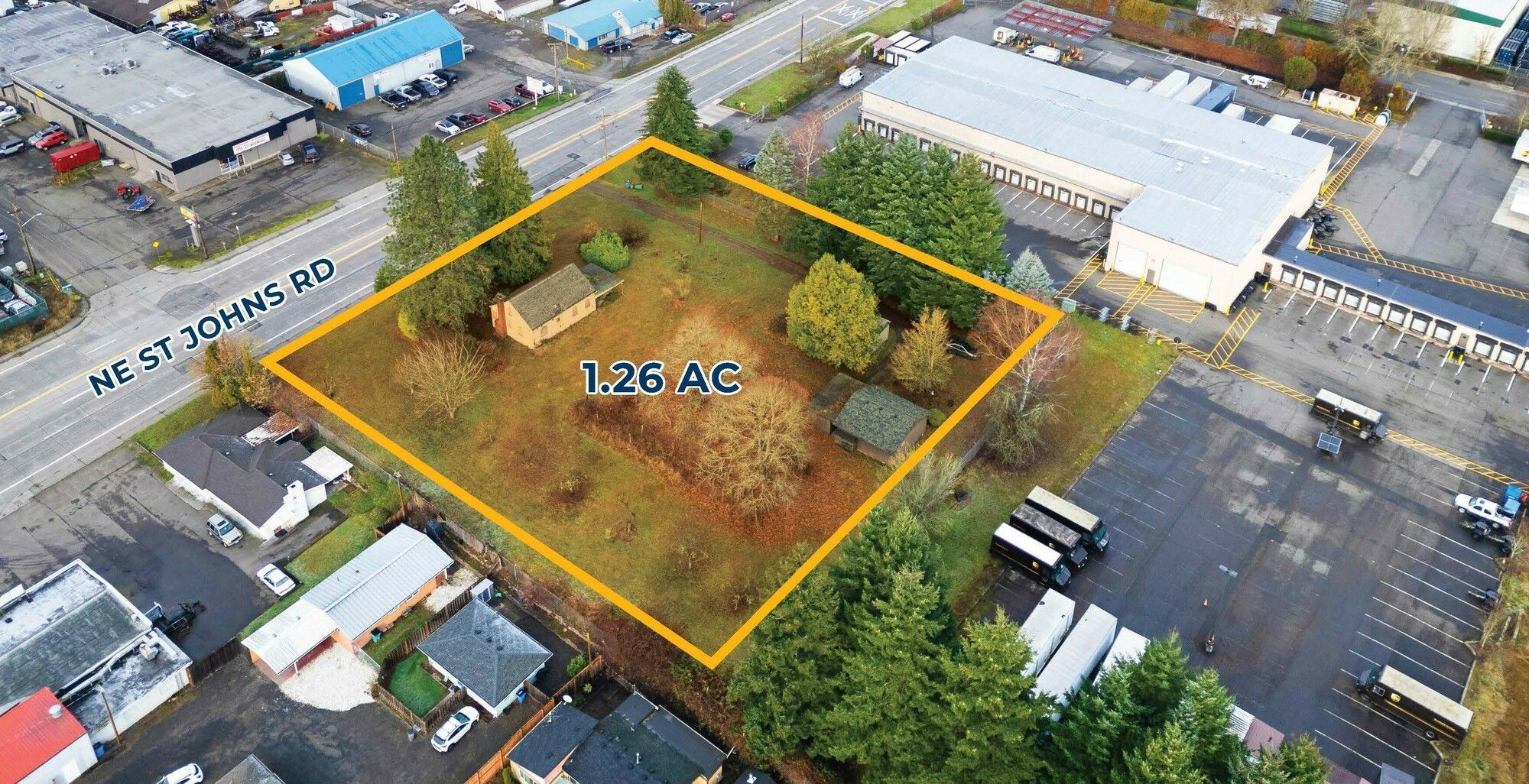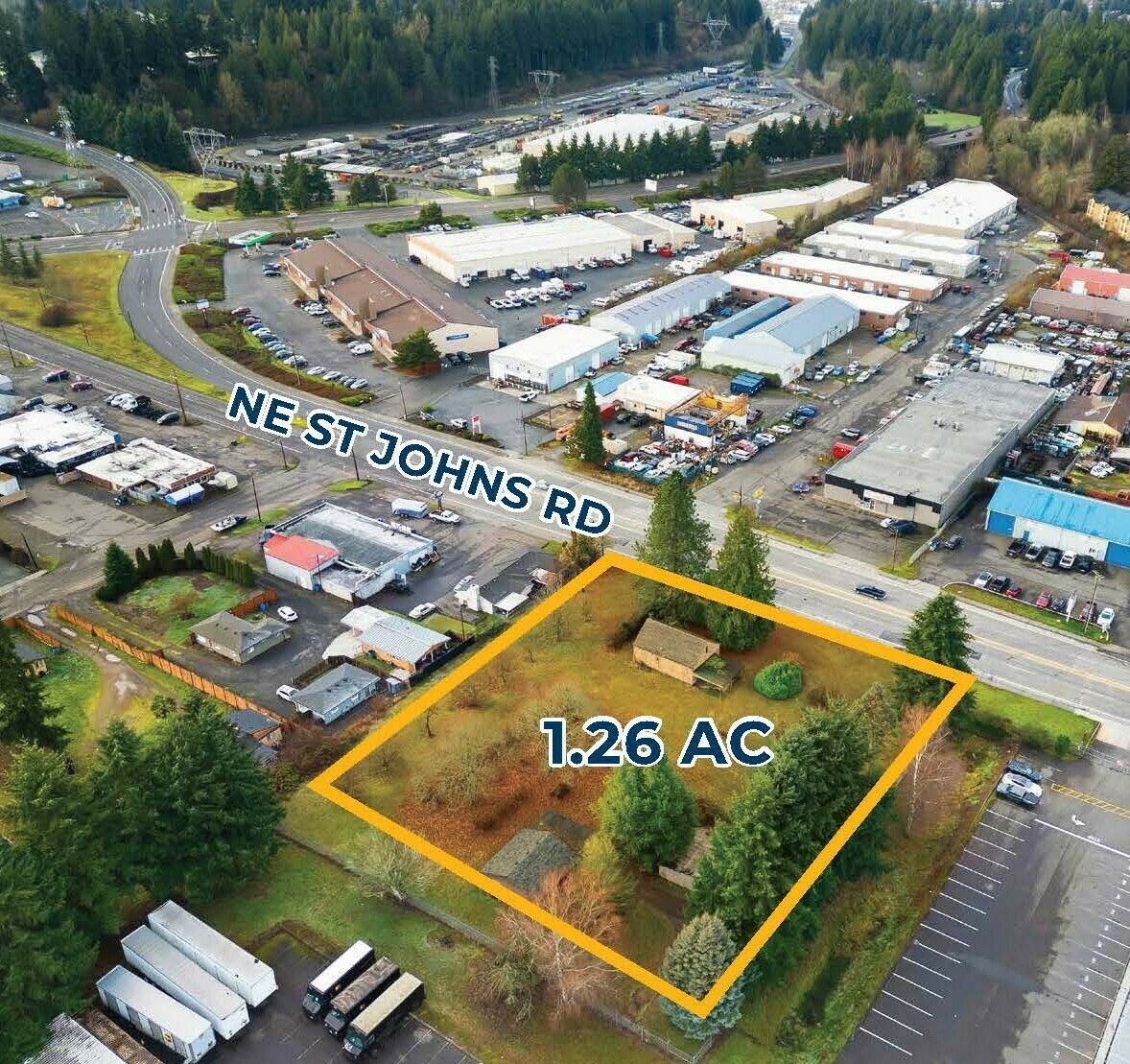 1.26 acres of industrial land with a 900 SF house/office.