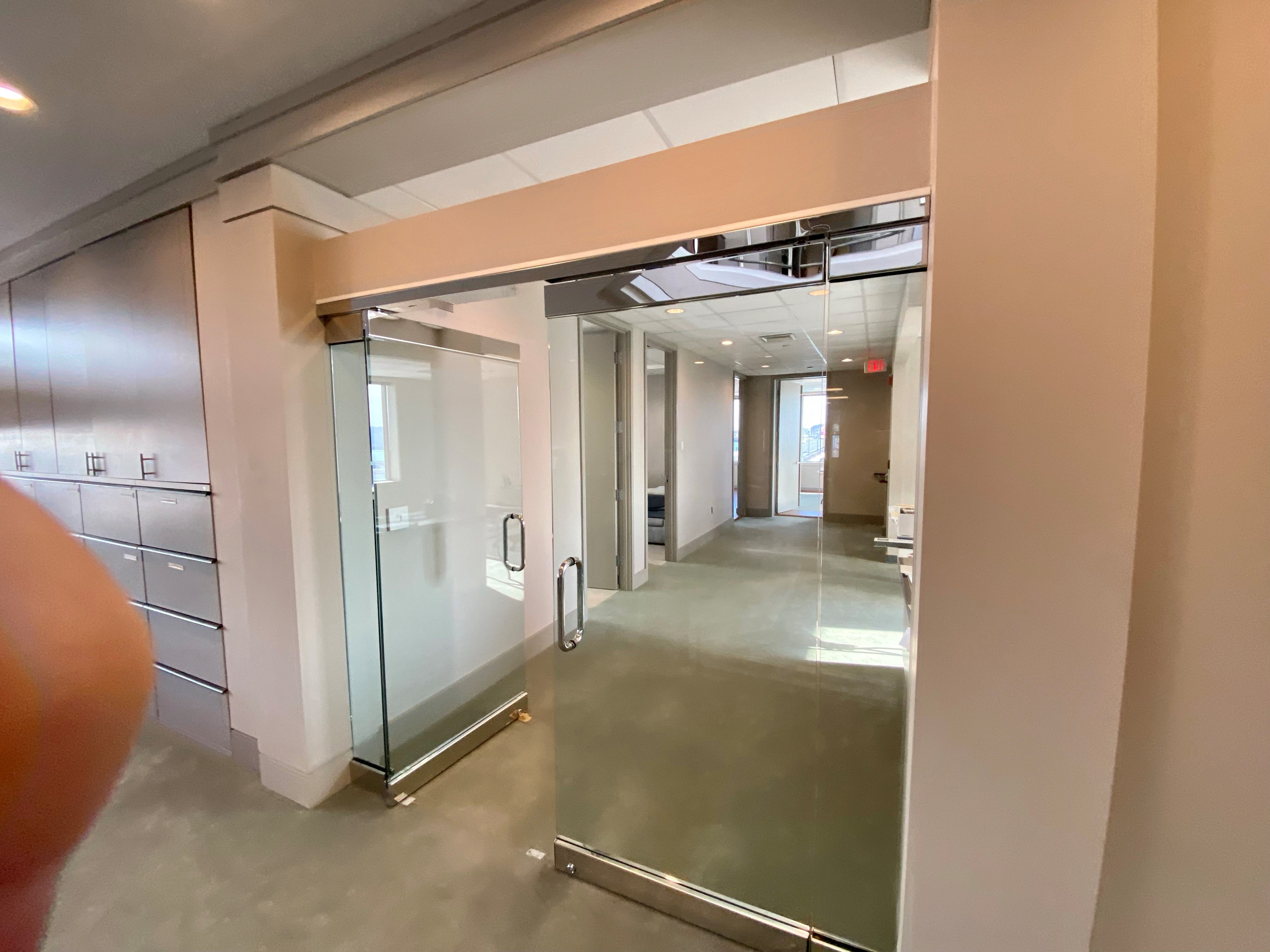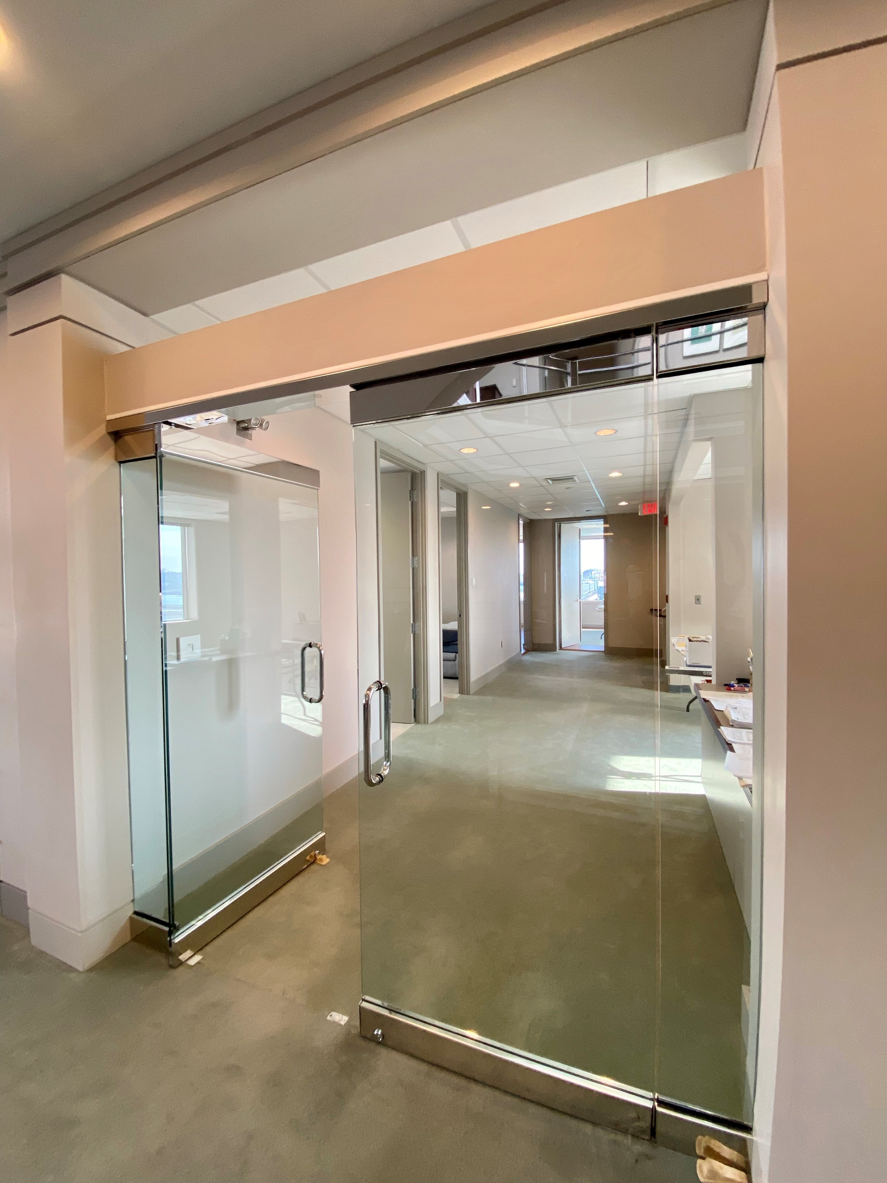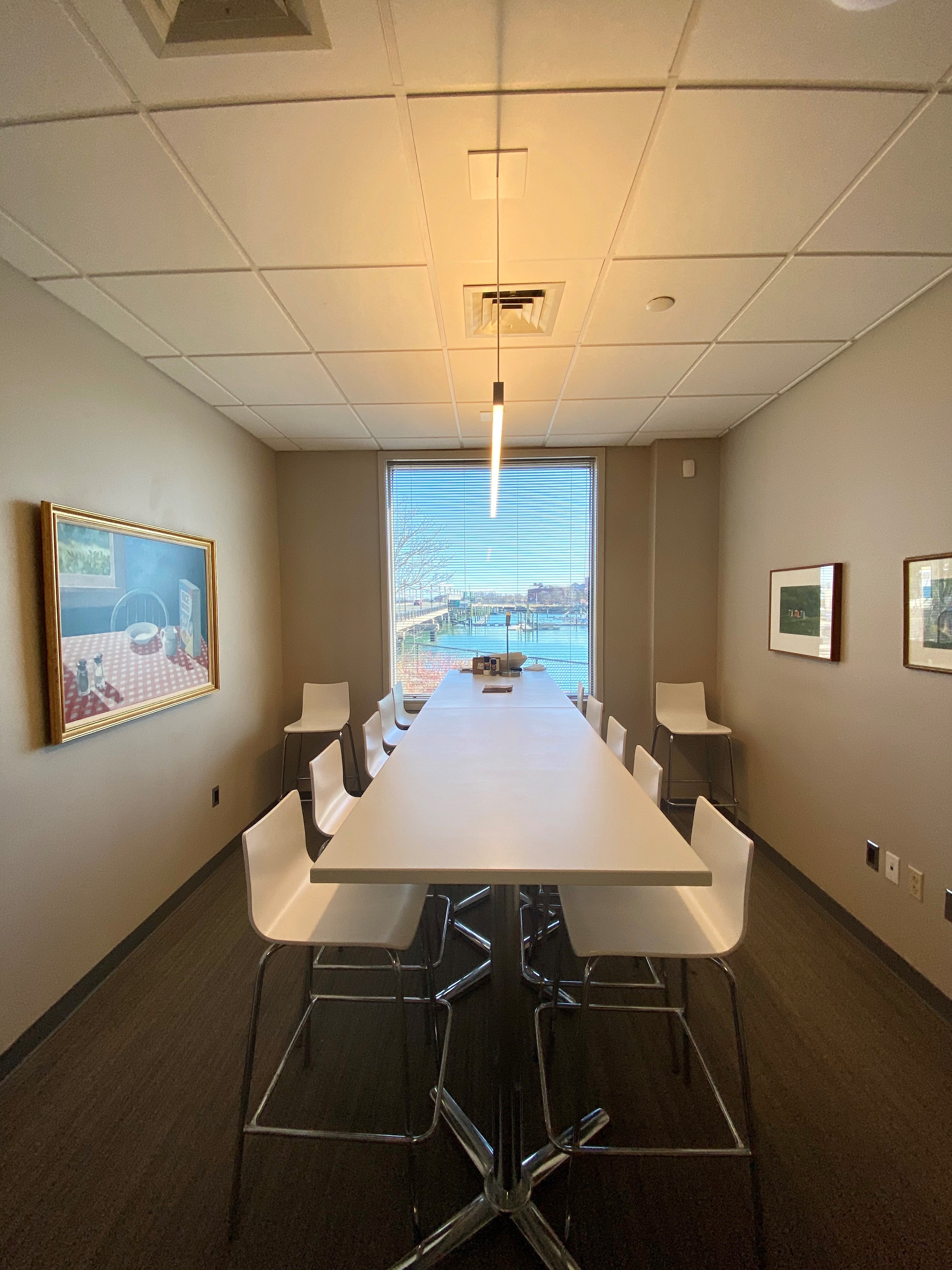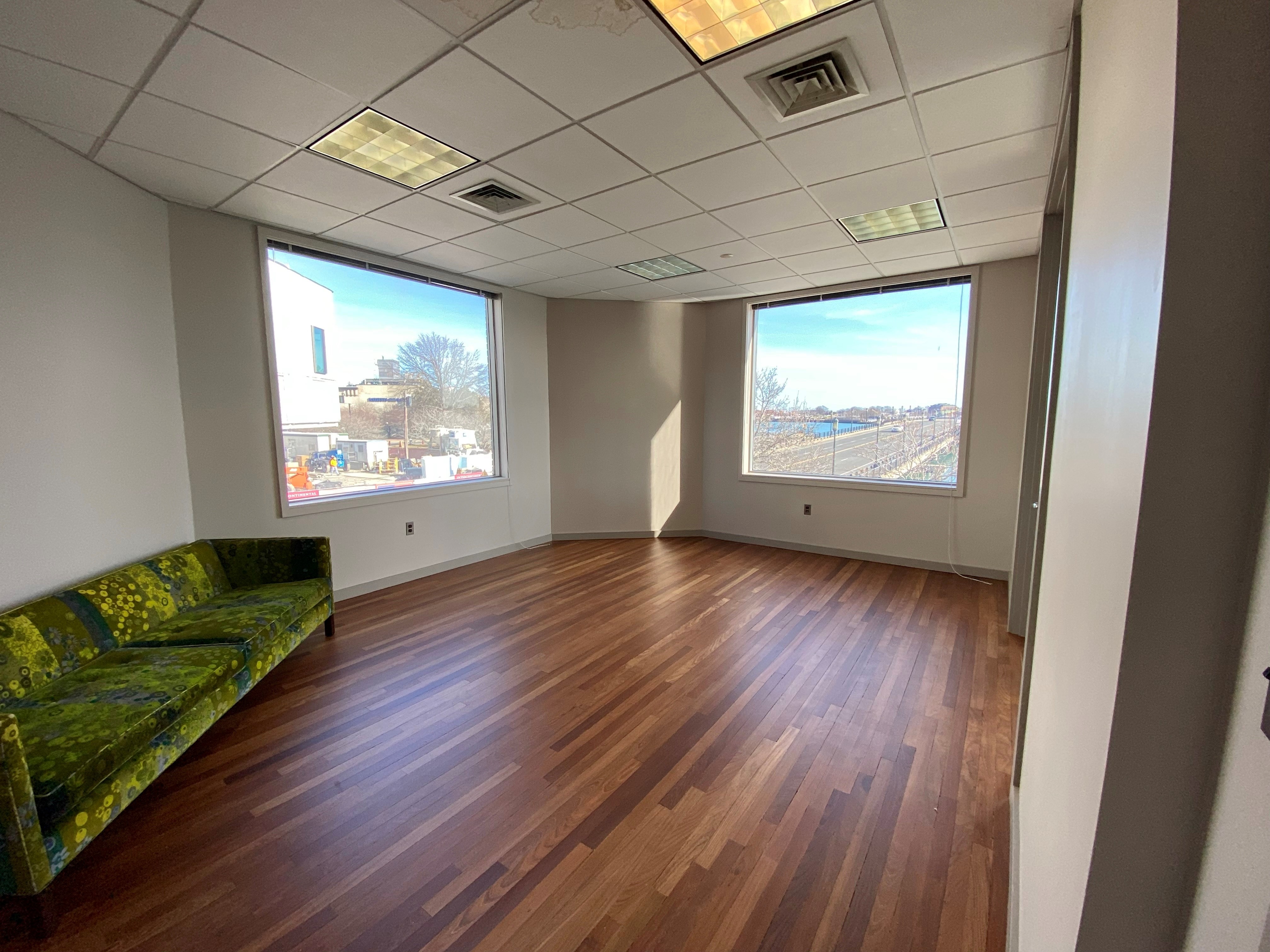 Bright office space available for lease with water views.