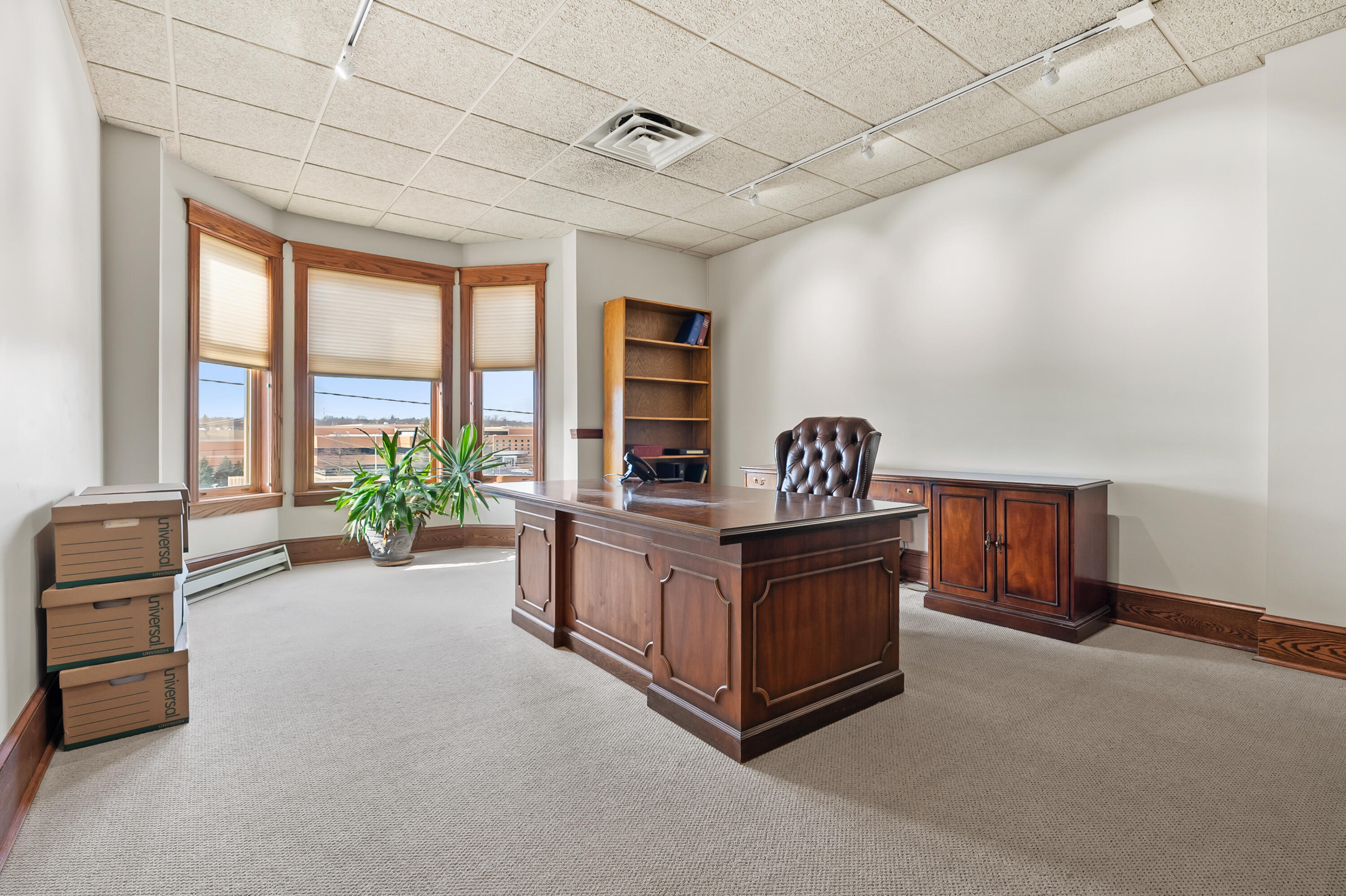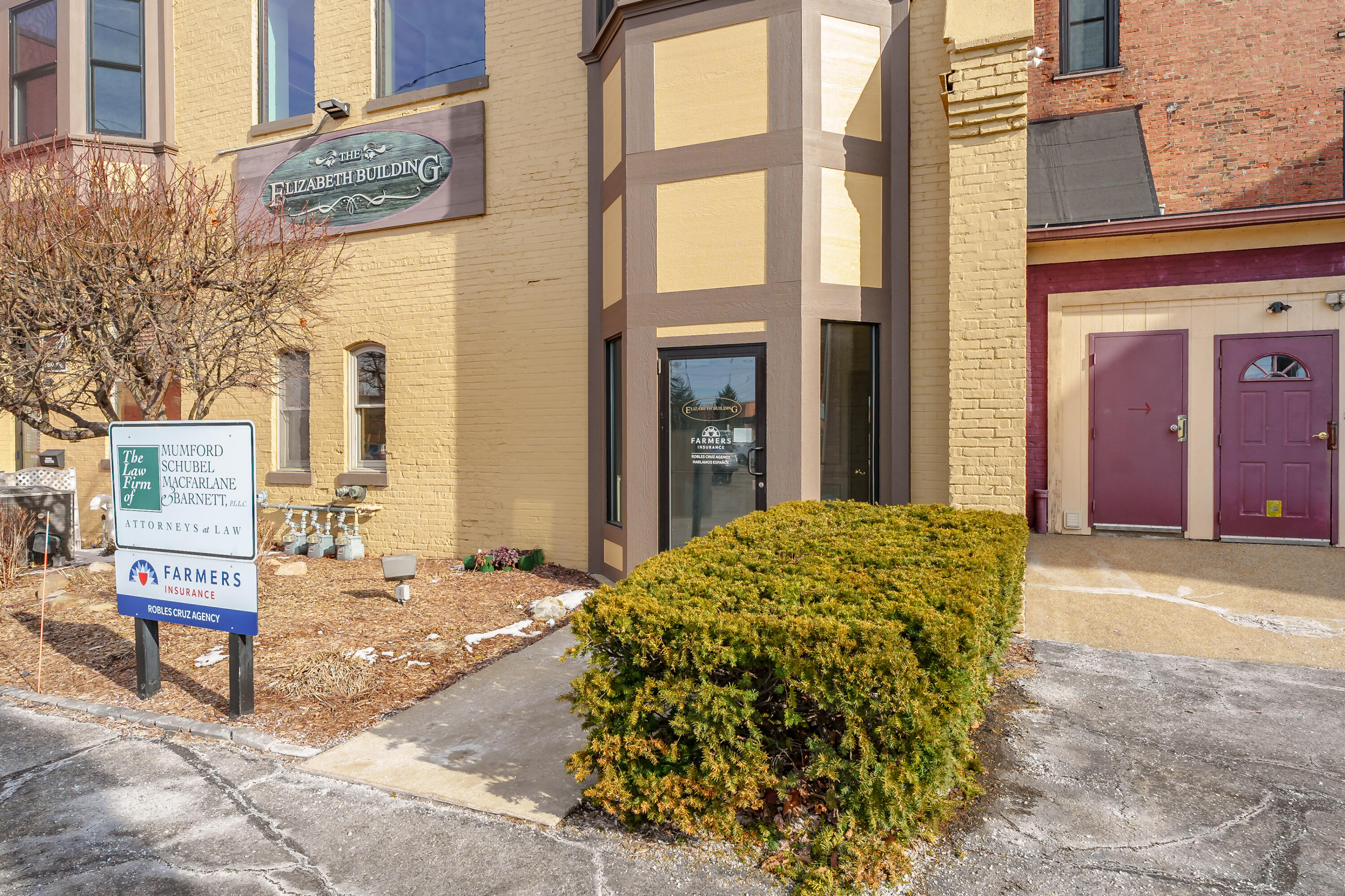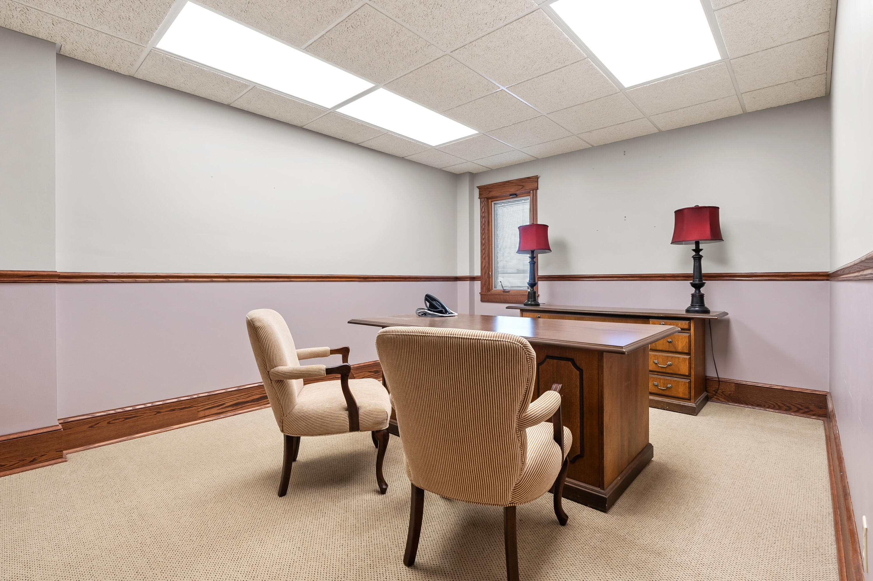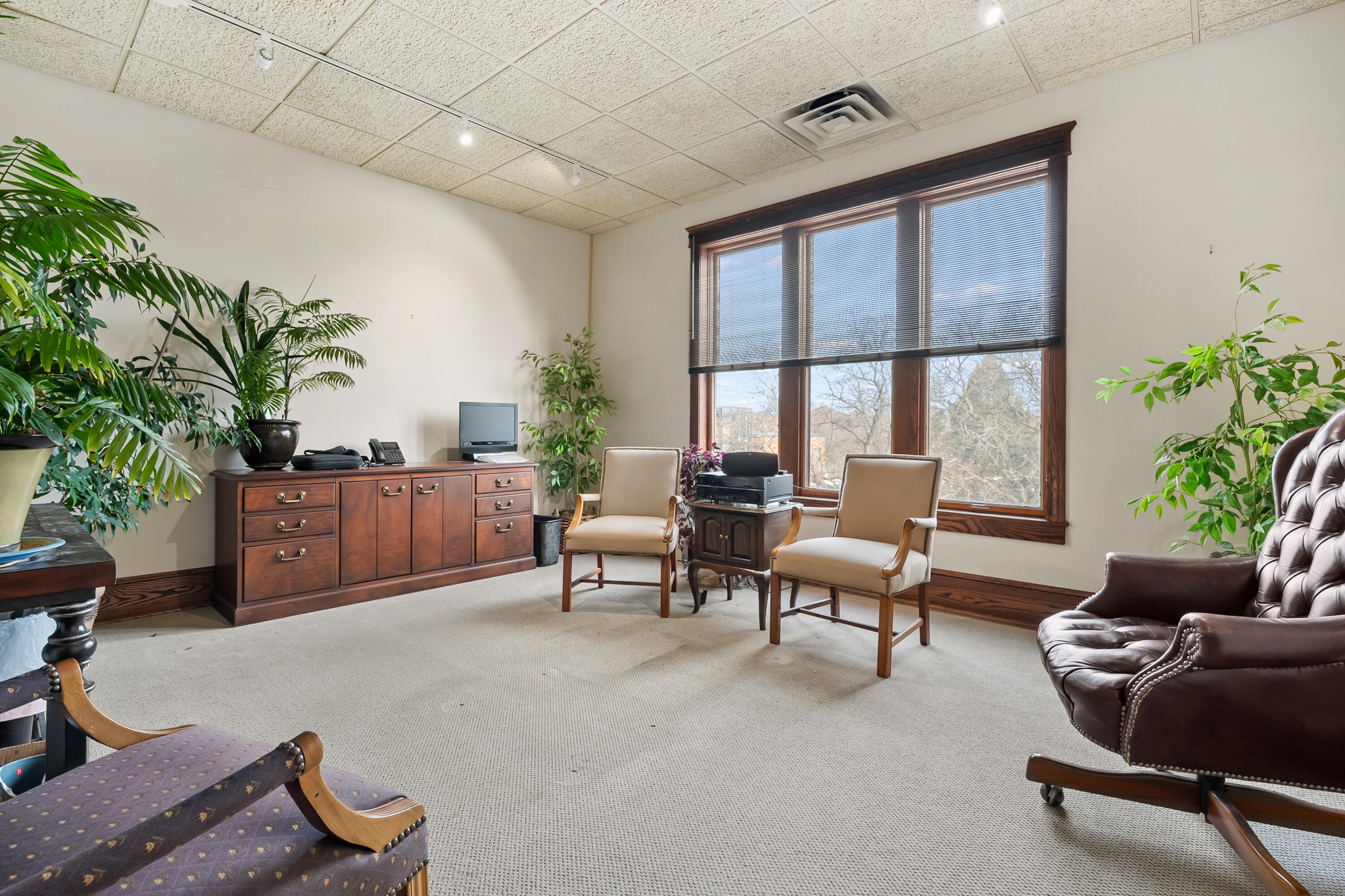 Remodeled office building with multiple tenants and vacant suite.
