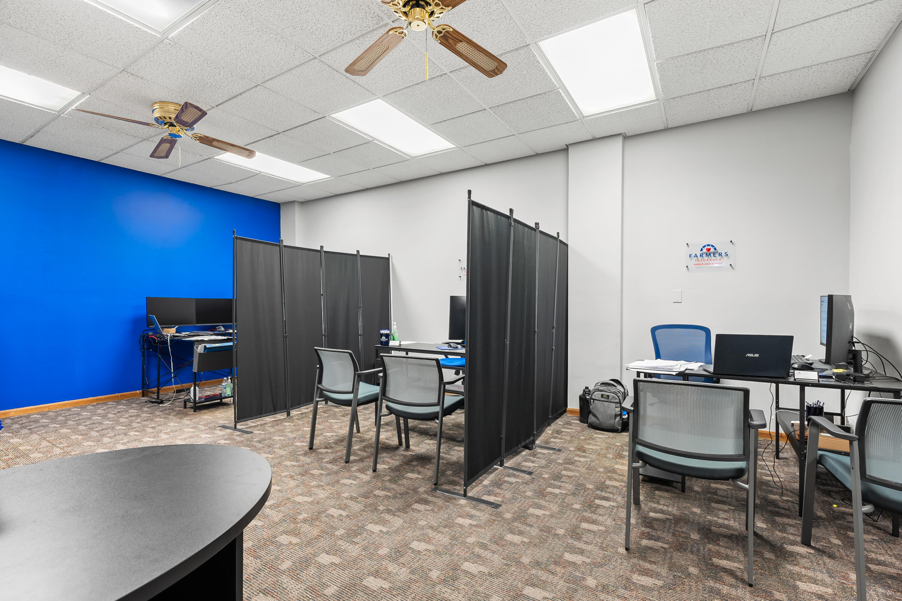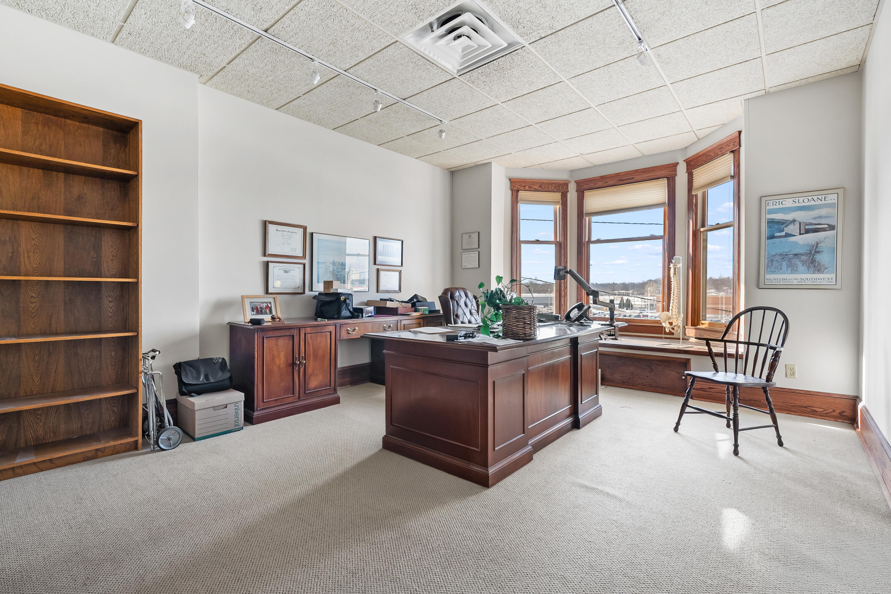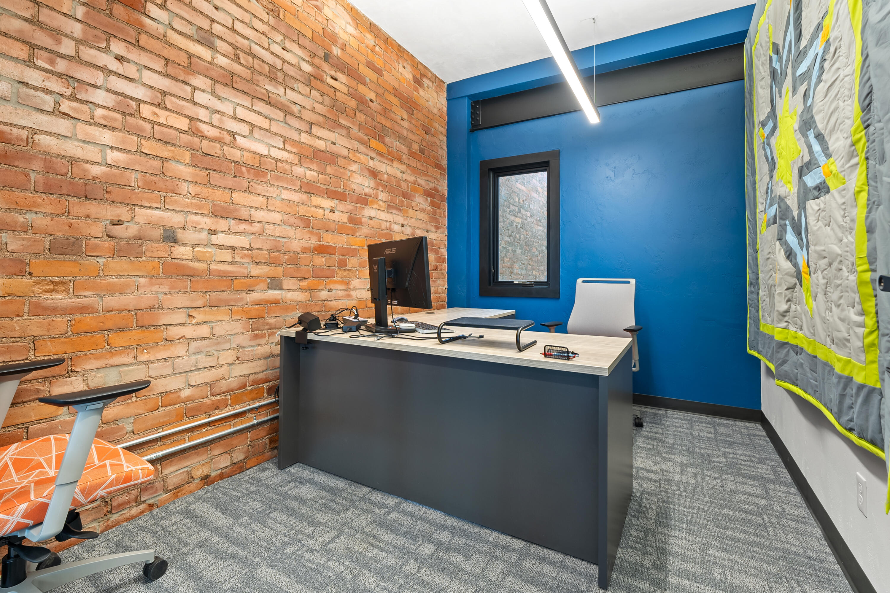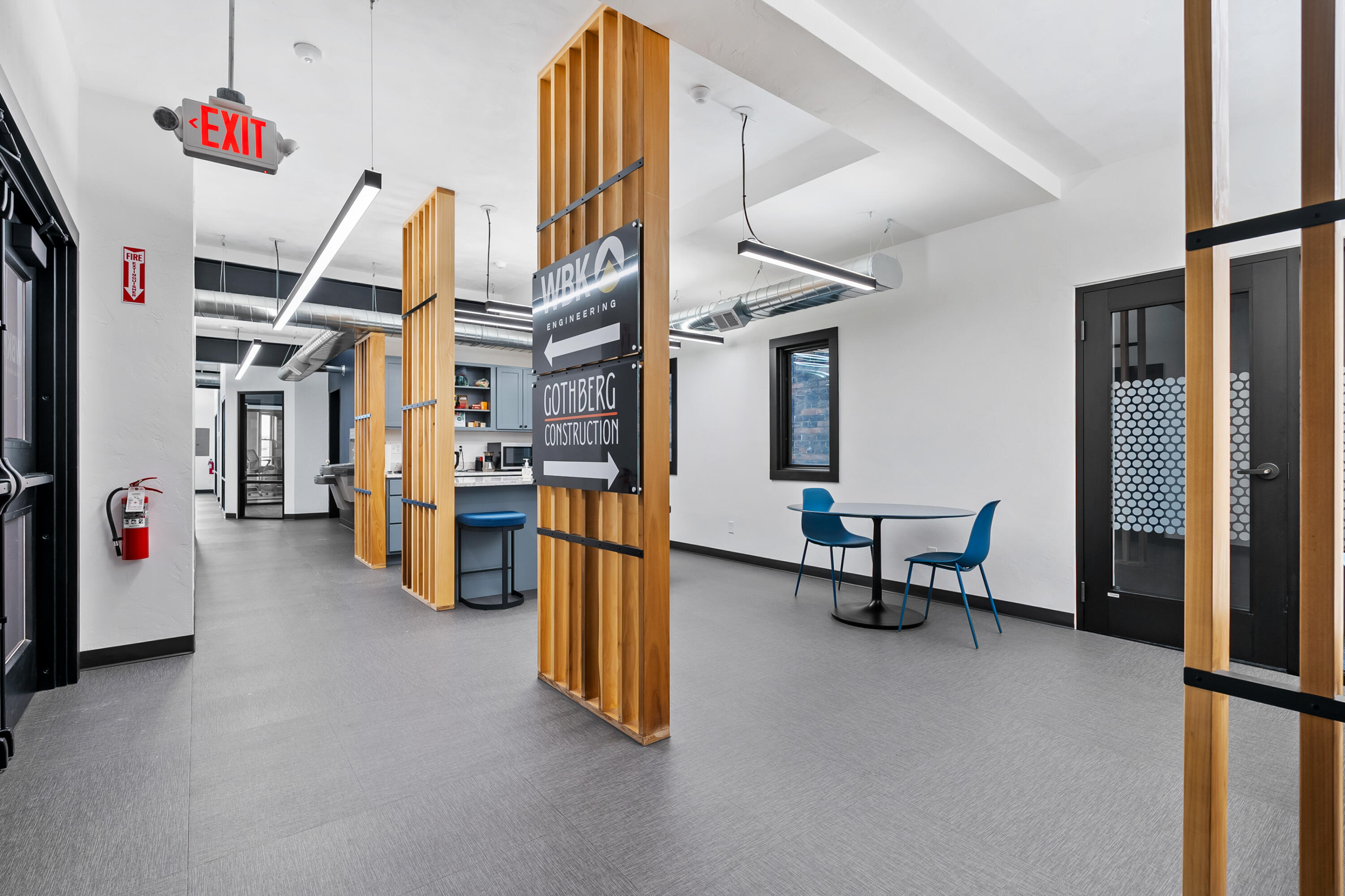 Remodeled office building with multiple tenants and vacant suite.