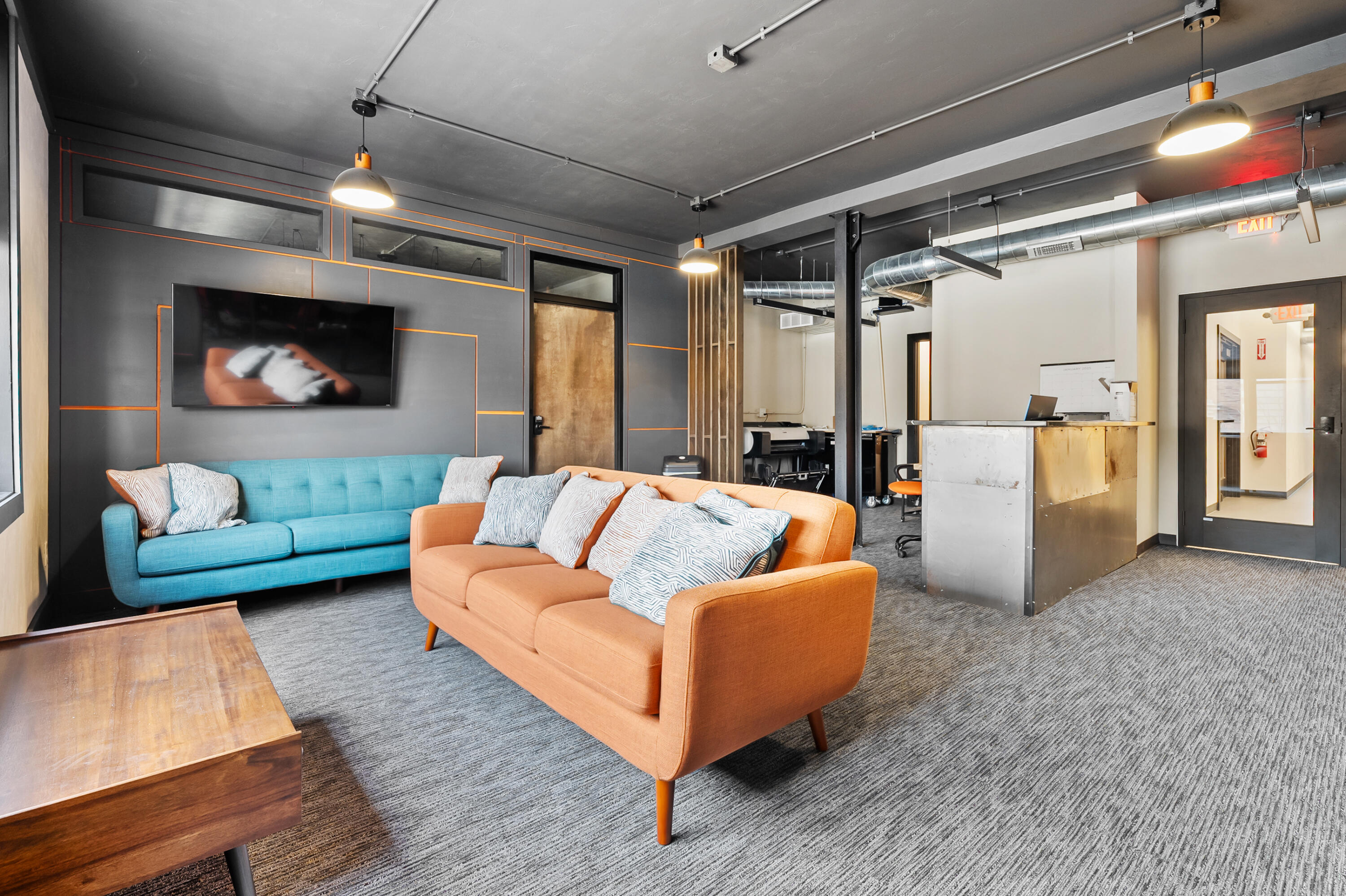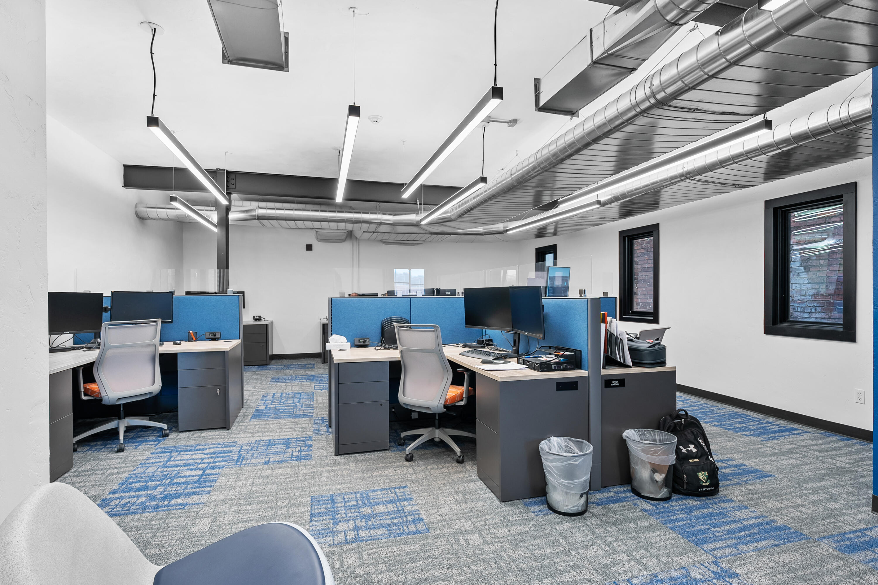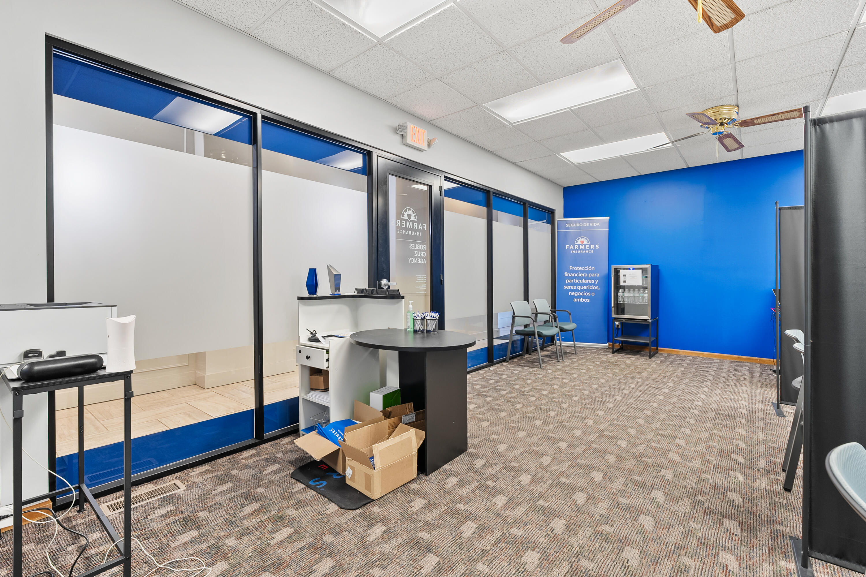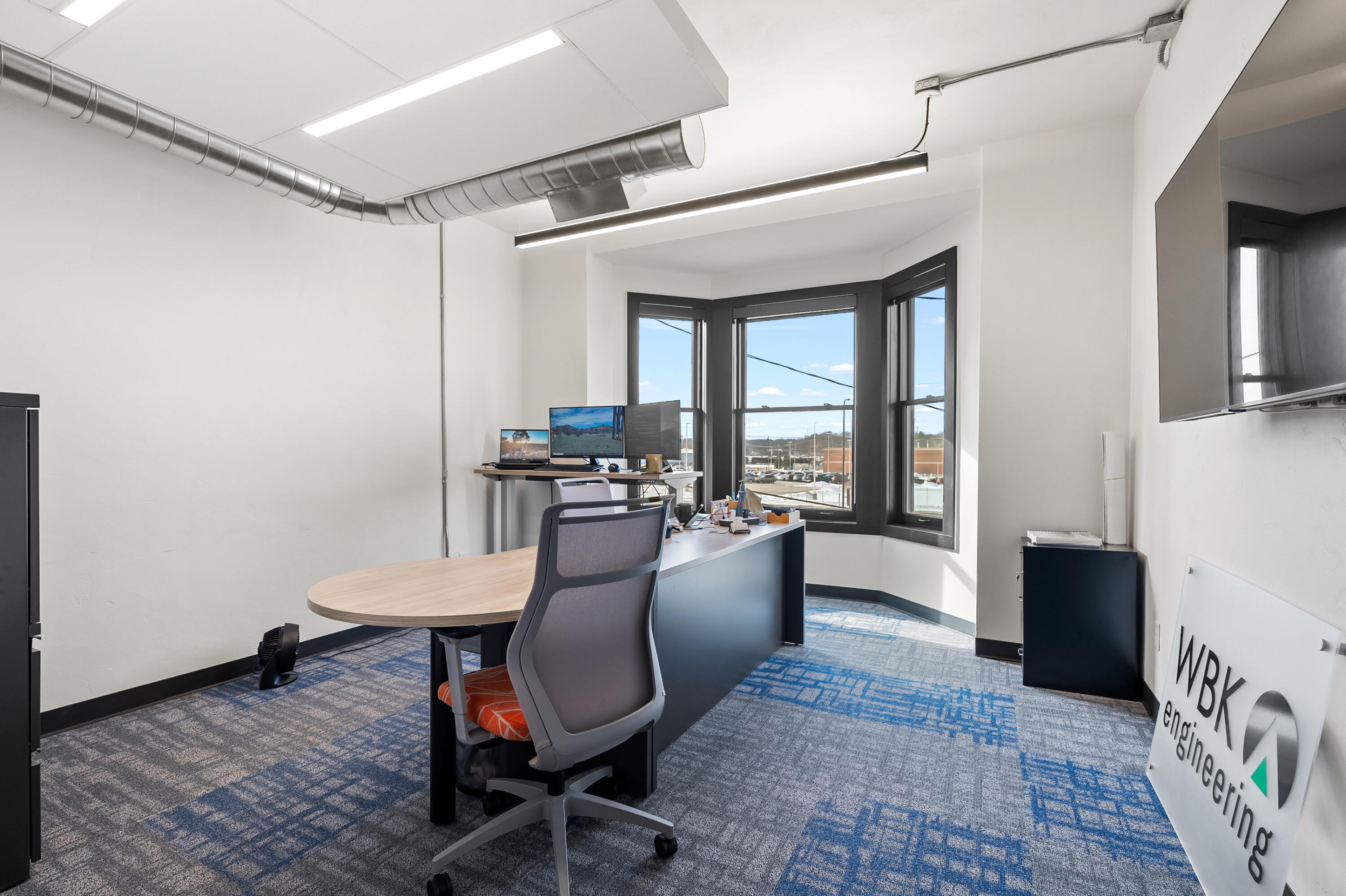 Remodeled office building with multiple tenants and vacant suite.