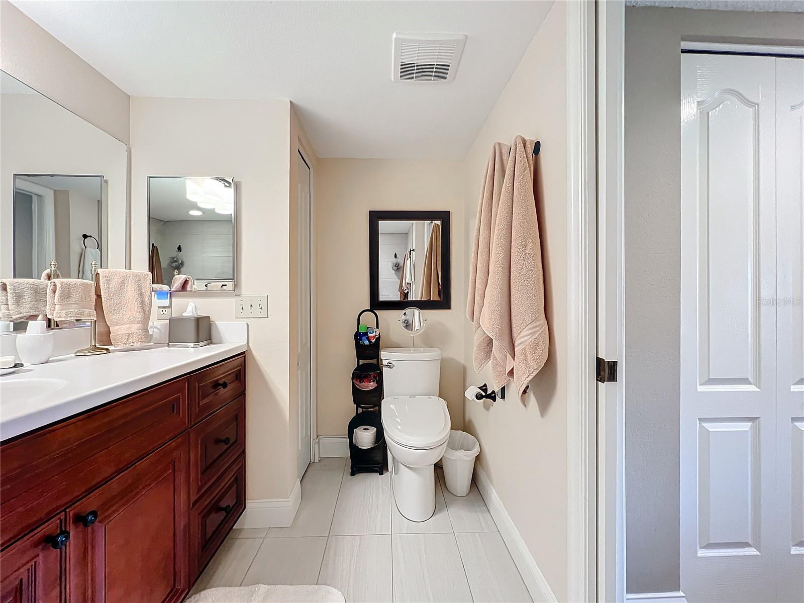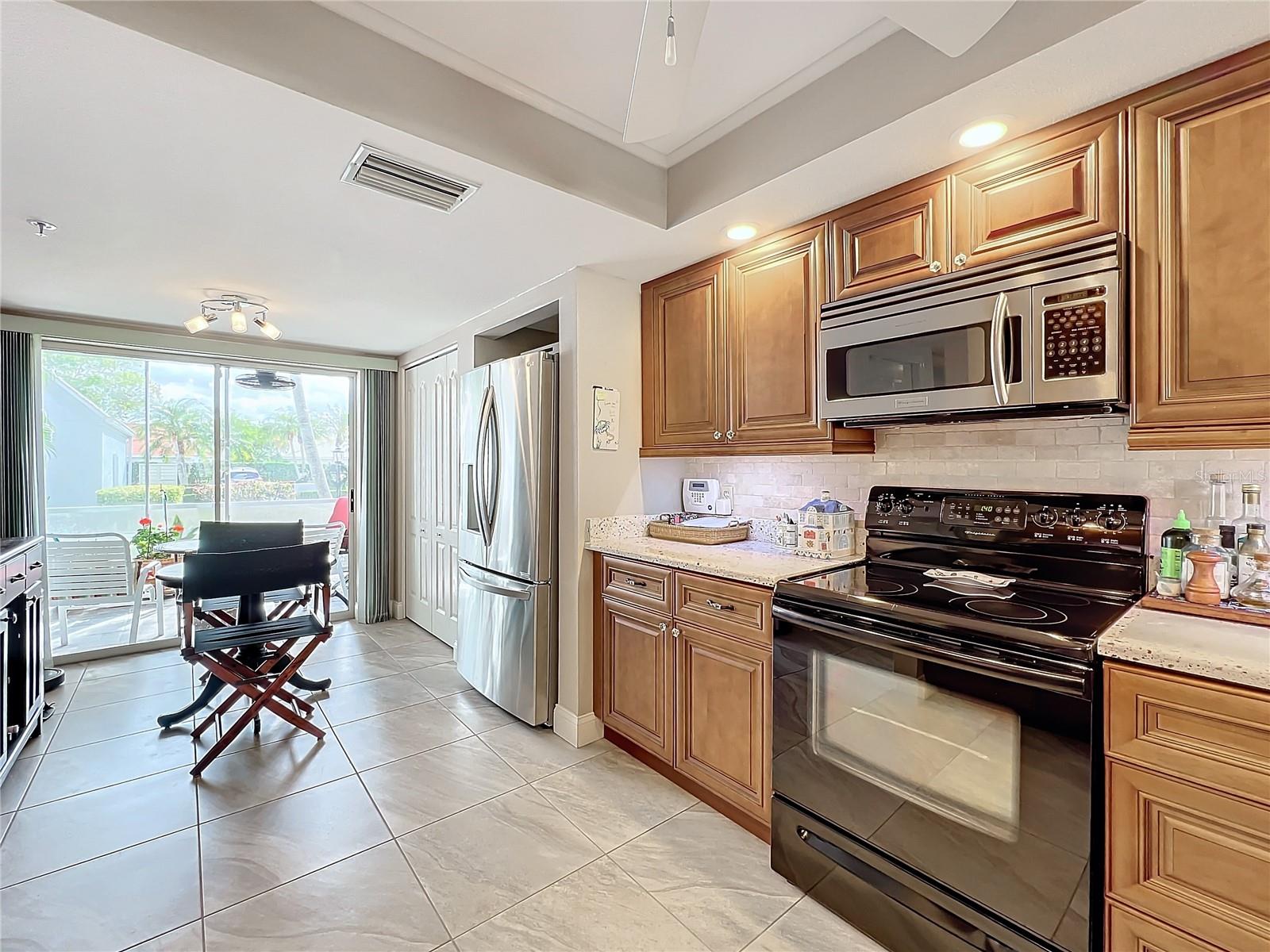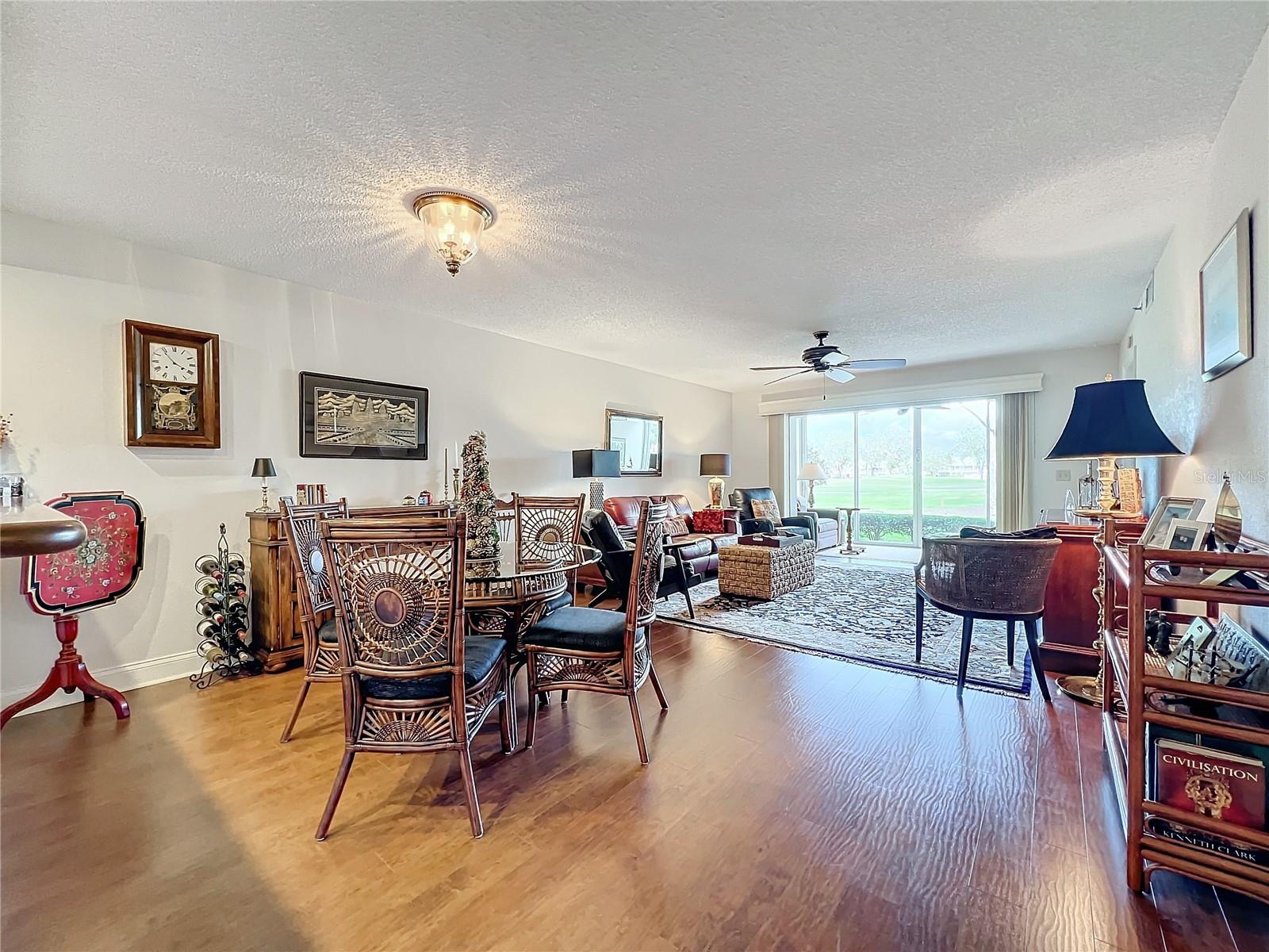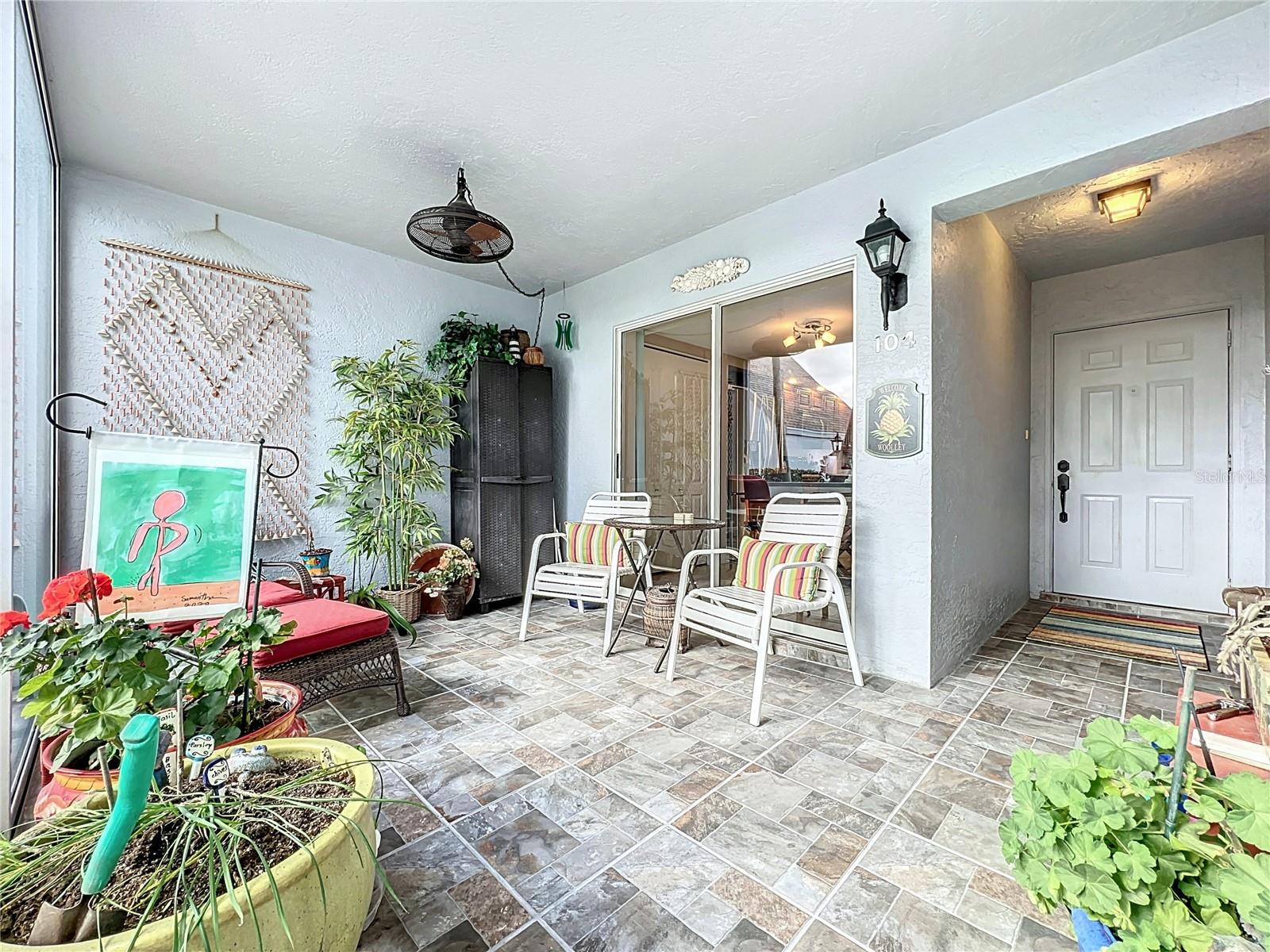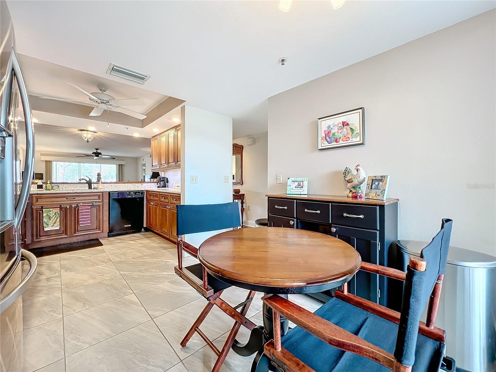 This updated, partially furnished first-floor condo is located in the Tara Golf and Country Club. The property includes a deeded Class 'A' equity golf membership. Situated on the sixth fairway, the condo features a large, open main living area and two enclosed, screened lanais, adding 258 square feet of living space. The condo includes 2 bedrooms, a den, 2 bathrooms, and a 1-car garage with attic storage and a pull-down ladder. Updates include luxury laminate floors in the main living areas, carpet in the second bedroom, wood cabinets, and Silestone counters in the kitchen. The HVAC system includes a UV light, electrostatic filter, and humidity control. The south-facing entry lanai is enclosed with glass sliders and screened. The back lanai offers views of the golf course, spanning the 4th, 5th, and 6th fairways. The Verandas, consisting of 60 condos, features a new roof installed in 2021, exterior paint from 2019, and repaved driveways planned for 2024. The community is not in a flood zone. Tara Golf and Country Club amenities include an 18-hole Championship Golf Course renovated in the summer of 2023, Har-Tru tennis and bocce courts, pickleball, a fitness center, hot tub, sauna, firepit, and screened patio. A new pickleball center with five courts is under construction and expected to be completed in 2025. Additional amenities include a clubhouse with dining options, a concession stand at the main pool, a driving range, a short game practice area, a putting green, and a pro shop. The Tara Master Association fee includes Comcast premium bundle for internet and cable TV, HBO and MAX, common area landscaping, and perimeter maintenance. The property offers easy access to I-75, airports, shopping at UTC mall, arts, theater, entertainment, dining, and beaches.