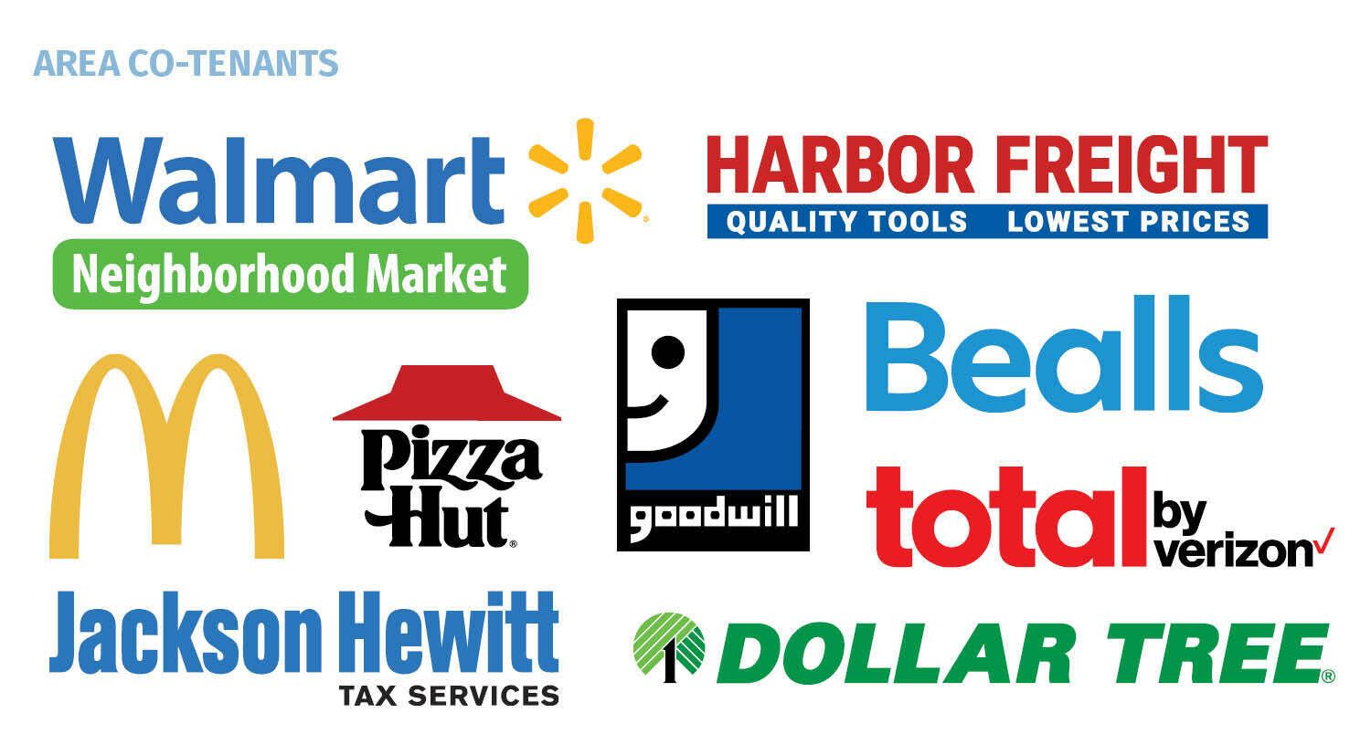Retail spaces available for lease, anchored by Goodwill, Dollar Tree.