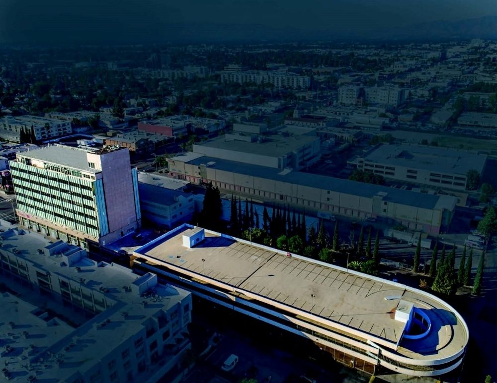 Office building in central San Fernando Valley with expansive balcony.