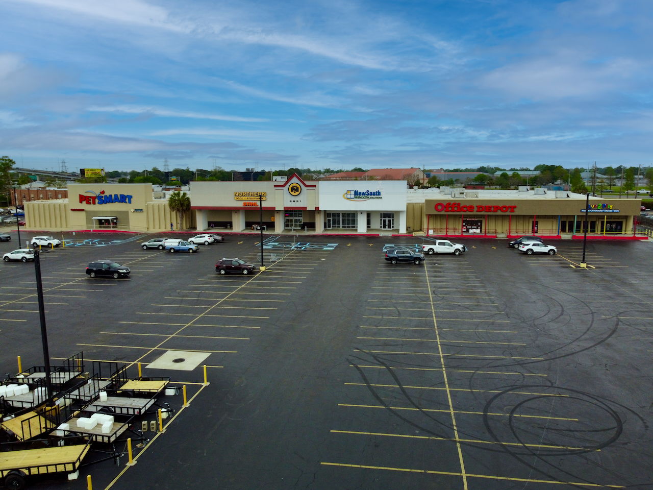 Multi-tenant retail center with showroom, office, and warehouse space.