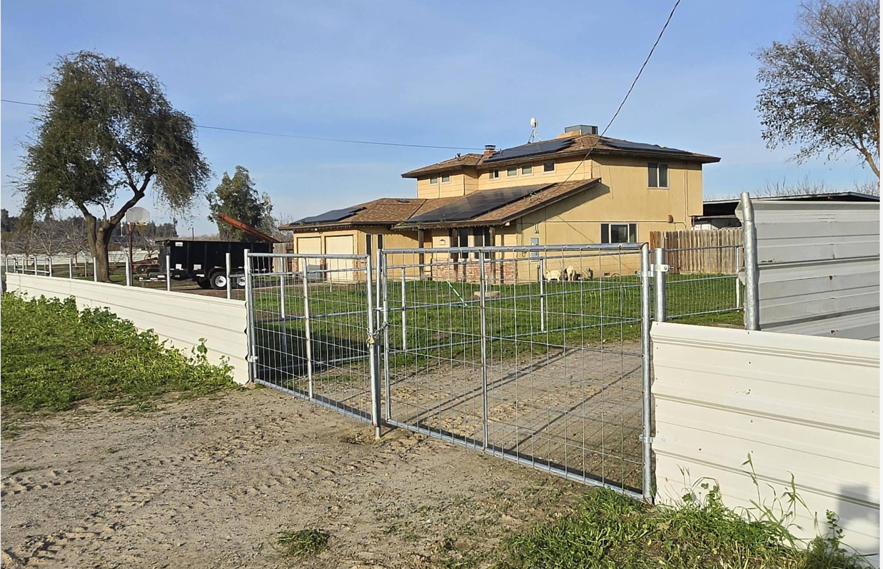 Bethel Farm LLC is a fully developed, income-producing agricultural estate spanning 28 acres. This turnkey operation combines advanced Dorper sheep production, natural walnut cultivation, poultry egg revenue, and residential properties. The property is engineered for efficiency, sustainability, and long-term scalability, supported by modern infrastructure, irrigation rights, and professional-grade equipment. The livestock operations specialize in high-quality Dorper sheep production, growing approximately 450–500 ewes annually. Livestock facilities include 48 professional birthing stations, each equipped with automatic fresh water systems, individual electric heating lamps, a dedicated lamb nursery area with capacity for up to 300 lambs, an automated bottle-feeding system, and a custom-built sheep catch system. The property features a rotational grazing system divided into four large grazing sections, each with independent automatic watering systems, individual irrigation control valves, and direct connectivity to the main barn. The poultry operation includes 300–400 laying hens with professionally designed nesting facilities and automatic watering systems. The farm produces approximately 50,000–55,000 walnuts annually, naturally grown with no chemical treatments. Individual flood irrigation valves serve each orchard row, supported by Laguna Irrigation District rights. The main barn, spanning 3,100 square feet, includes a brand-new galvanized roof, daylight windows, full insulation, commercial circulation fans, and interior and exterior LED lighting. The property includes three separate homes, each individually addressed, fully fenced with private front gates, secure, and independently positioned with separate utility systems. The primary owner residence is a custom-built, two-story home with a solar energy system and a two-car garage. The second home has been extensively upgraded with a new roof, siding, windows, plumbing, electrical systems, a 3-ton central air conditioning system, drywall, insulation, tile flooring, 4 bedrooms, and 3.5 bathrooms. An attached 10,000 square foot open-air metal structure provides extensive covered space for livestock protection and equipment storage. The entire property benefits from Laguna District irrigation rights, providing reliable Kings River water access.