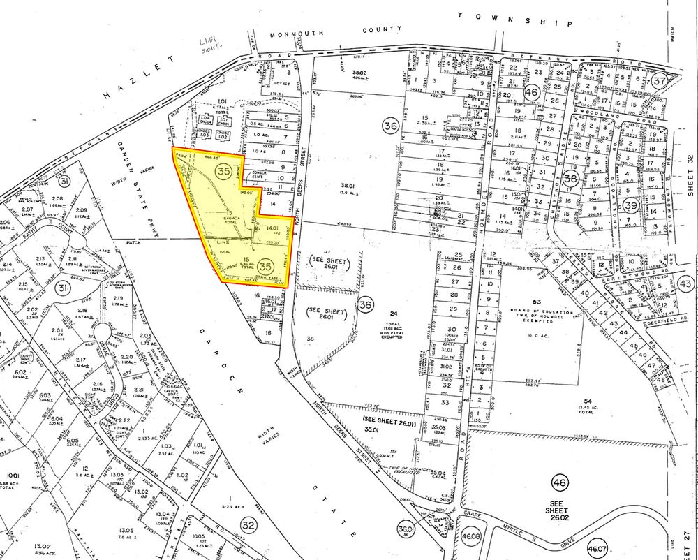 This 10+ acre commercial development site is located in Holmdel, across from Monmouth County's Bayshore Hackensack Meridian Hospital. The site features approximately 950 feet of frontage with full exposure to the Garden State Parkway and 394.68 feet of frontage on North Beers Street. It offers convenient access to Routes 35 and 36. Permitted uses for the site include hospitals, office buildings, medical facilities, child care facilities, day care, senior living, nursing homes, assisted living, and continuing care retirement communities. Construction is currently underway at Bayshore Medical Center for a new $48 million, 32,000 square foot Emergency Care Center.