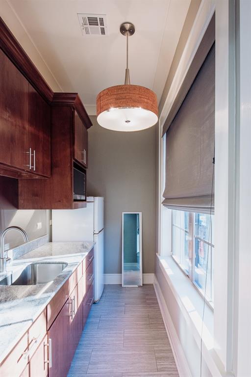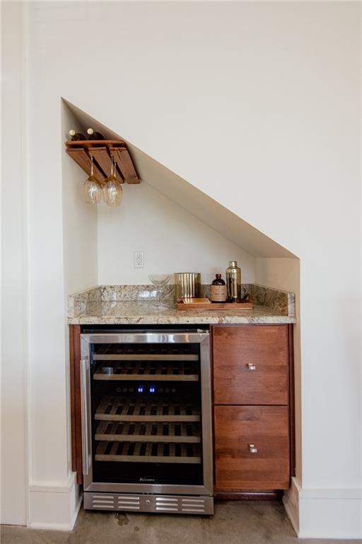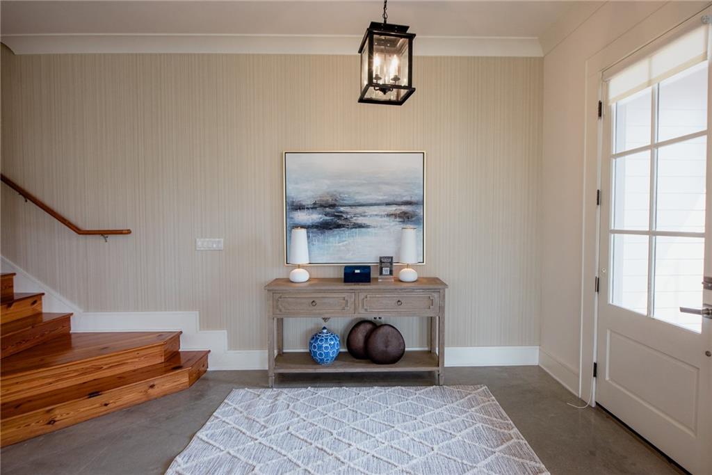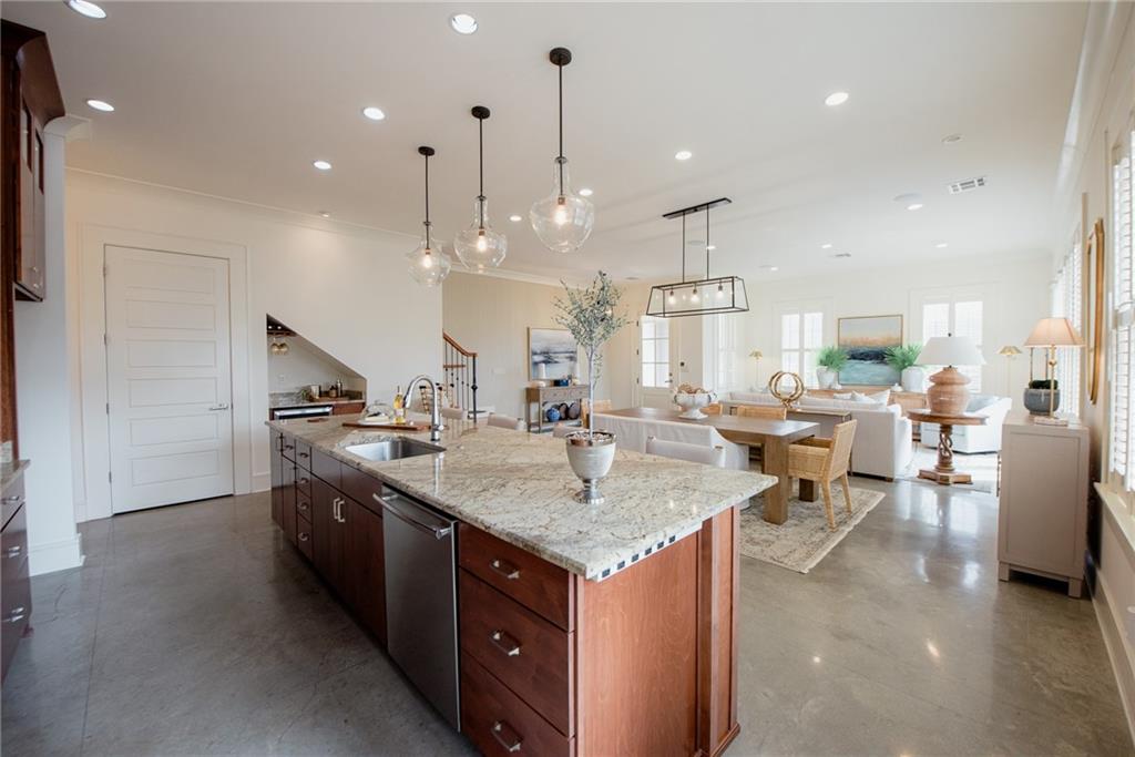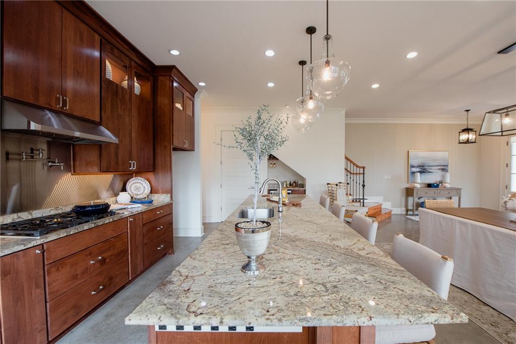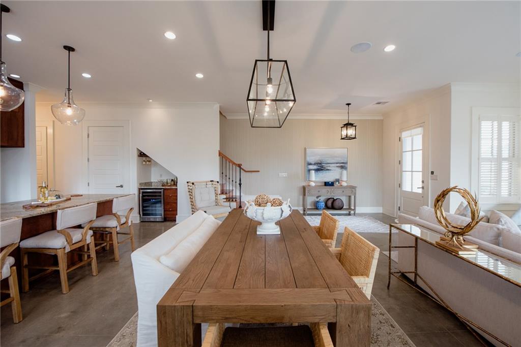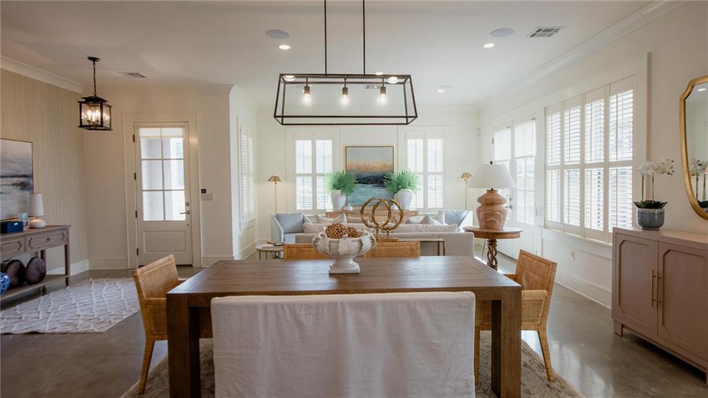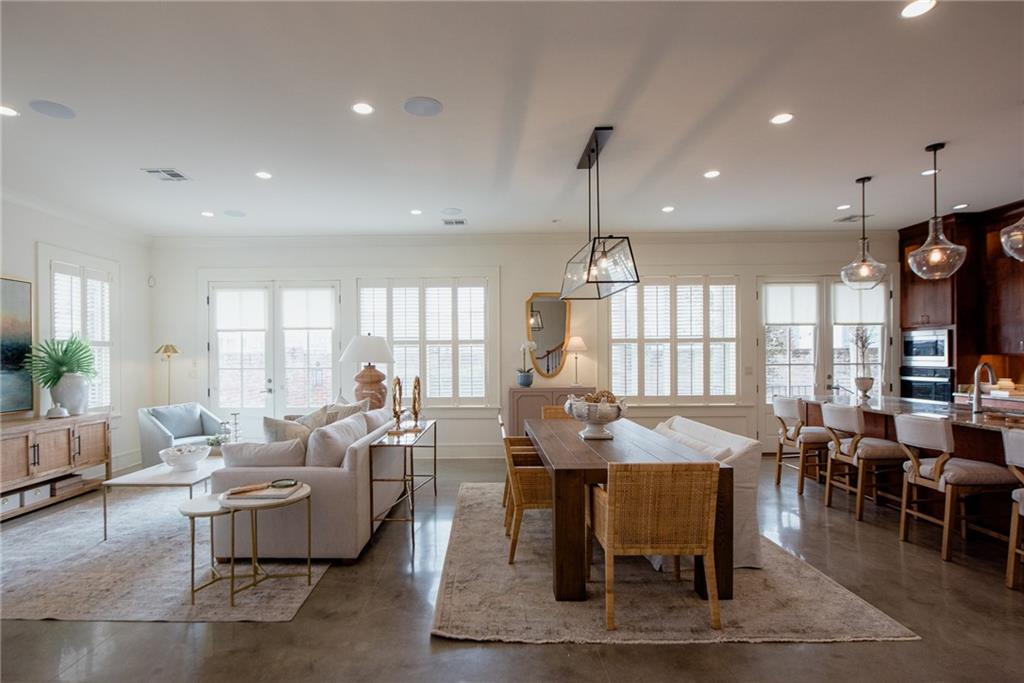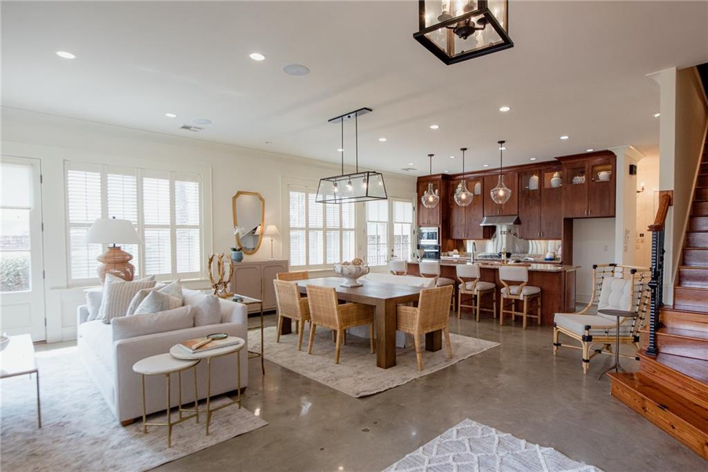 Located in Terra Bella Village, this two-story townhouse at 700 Cottage Lane overlooks the Village Square. It features an open-concept living and dining area on the main level, along with a kitchen equipped with granite countertops and stainless steel appliances. The flooring on this level is stained concrete. A powder room and utility space are also located on the main level. Upstairs, heart pine floors lead to two bedroom suites, including a primary suite with a spa-like bath. A separate guest suite, complete with its own entrance, bath, and kitchenette, provides flexible living options. The property includes landscaped outdoor spaces with a fire pit, outdoor kitchen, and sprinkler system. A double-car garage is also included. Residents have access to a neighborhood pool and playground, a nature preserve, and Village Square events. The property size is 2523 square feet.