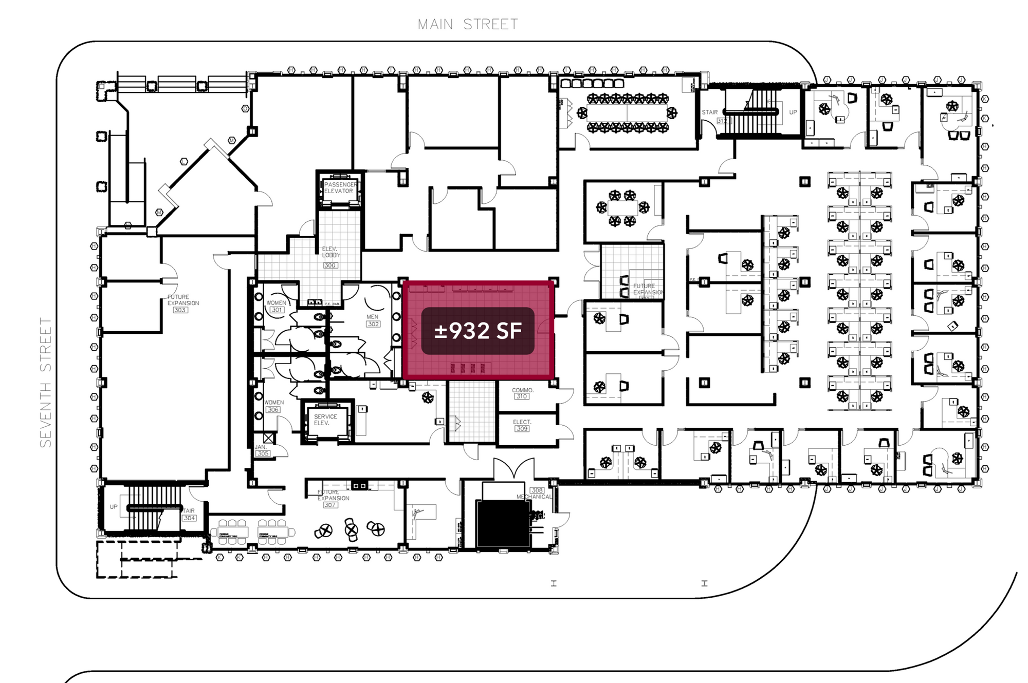 Class-A office suites with secure access, ample parking, and interstate access.