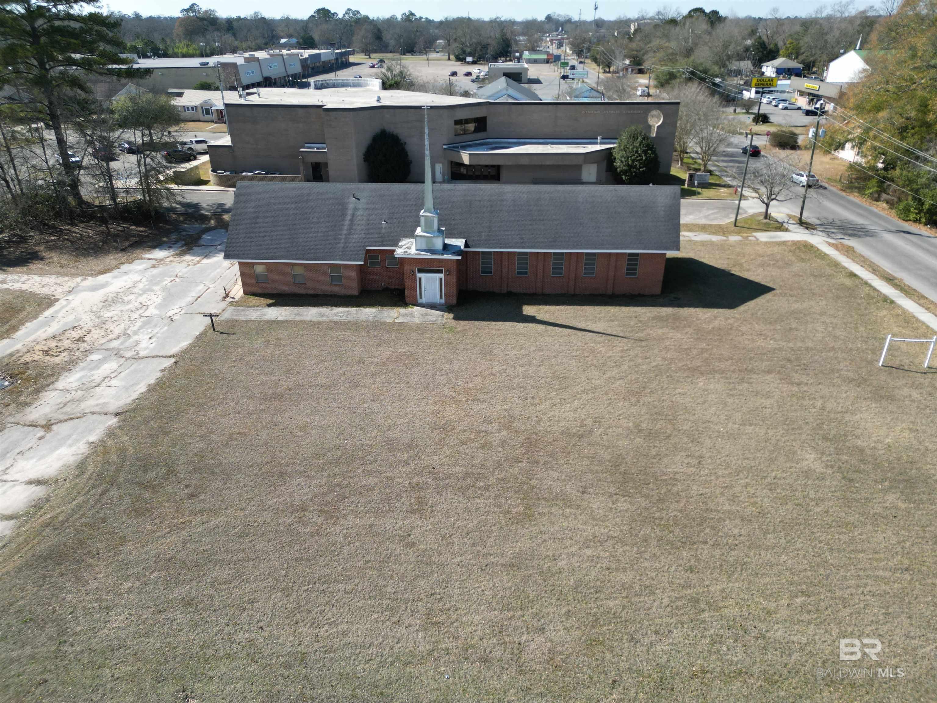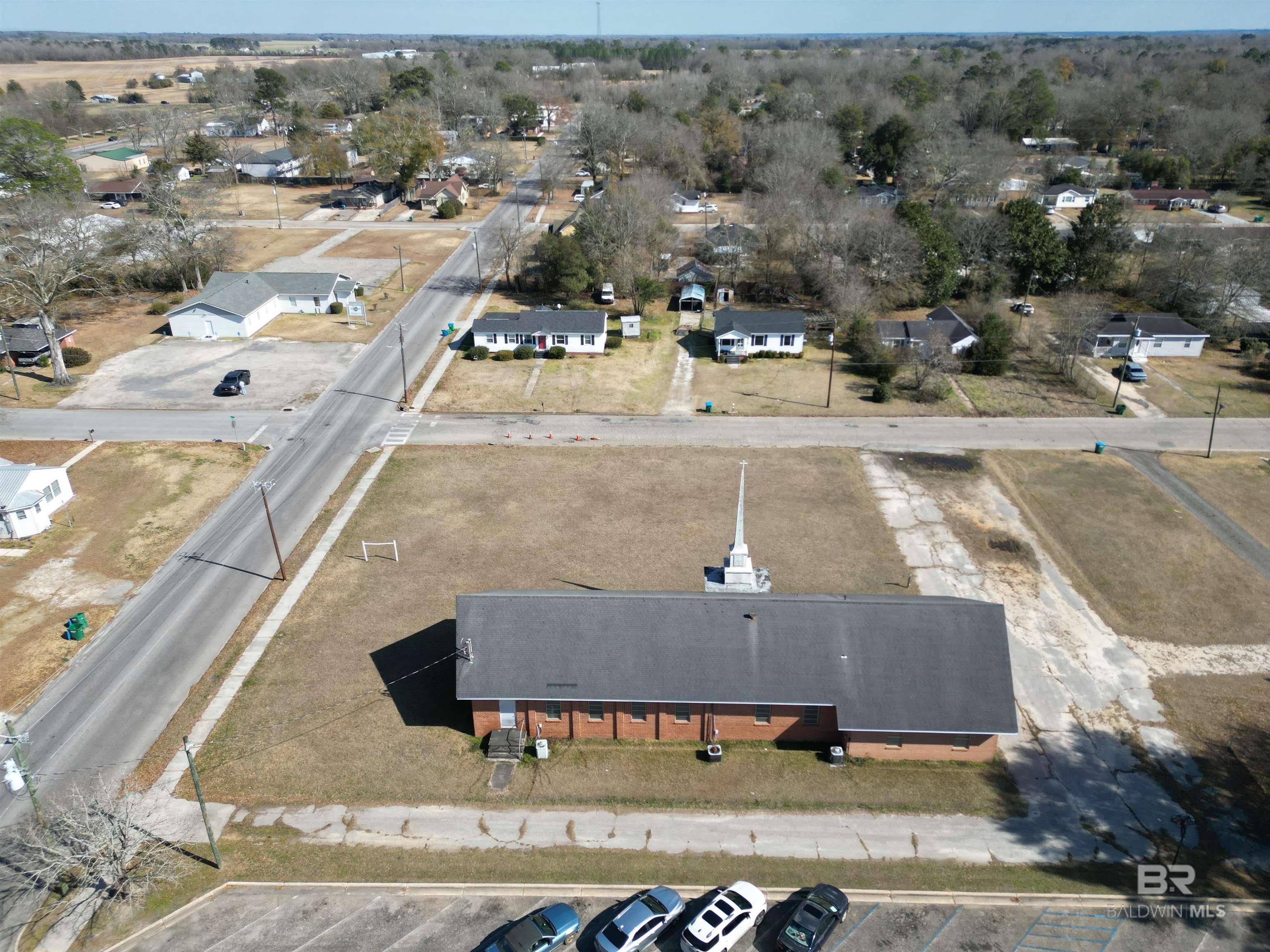 Spacious church property in Atmore, AL with commercial potential.