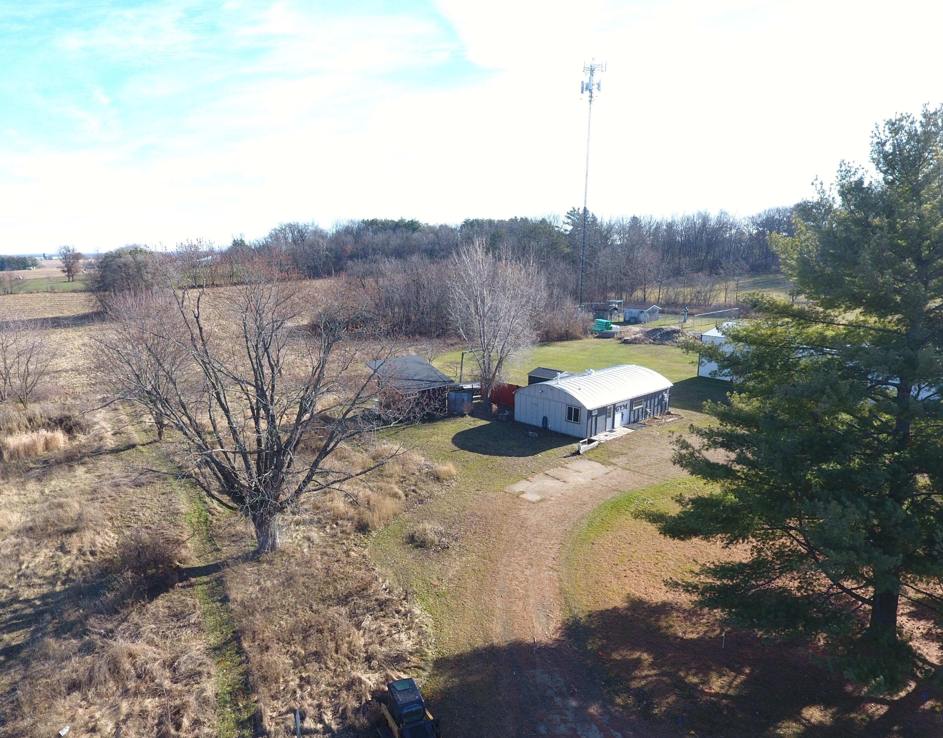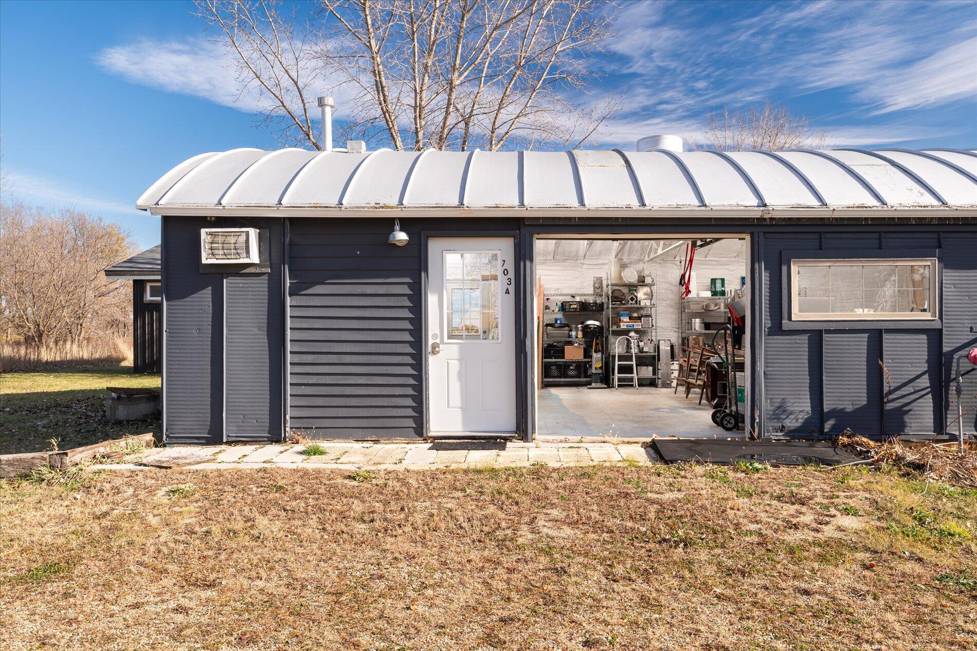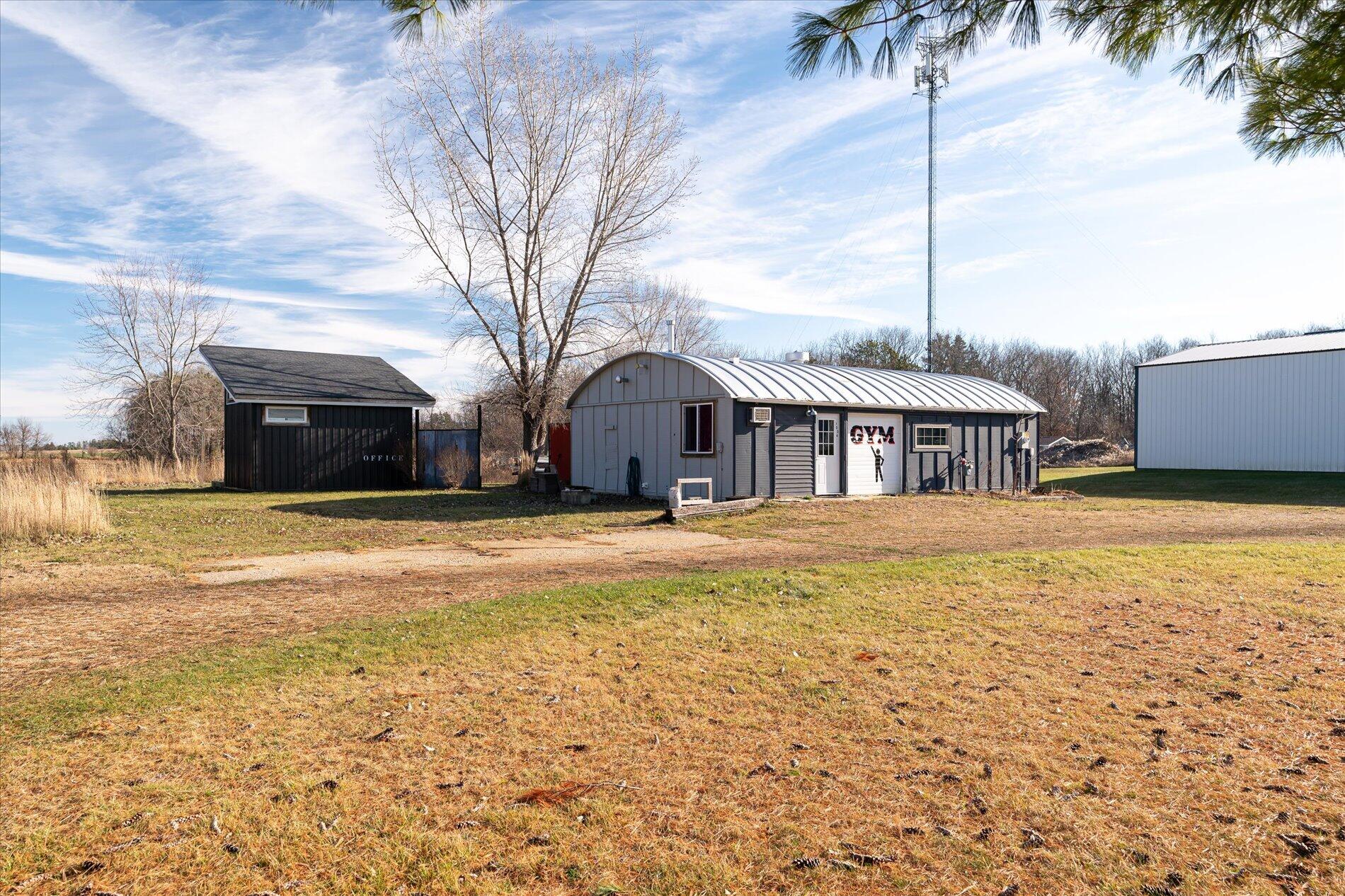 Commercial property with Quonset hut and separate office building.