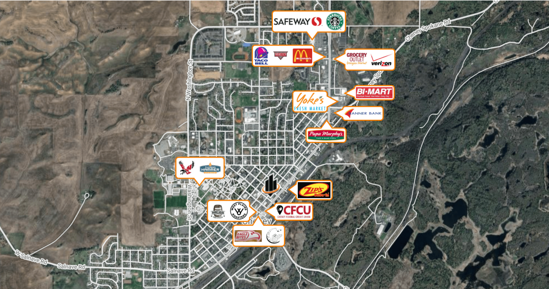 Three renovated retail/office suites in downtown Cheney, near EWU.