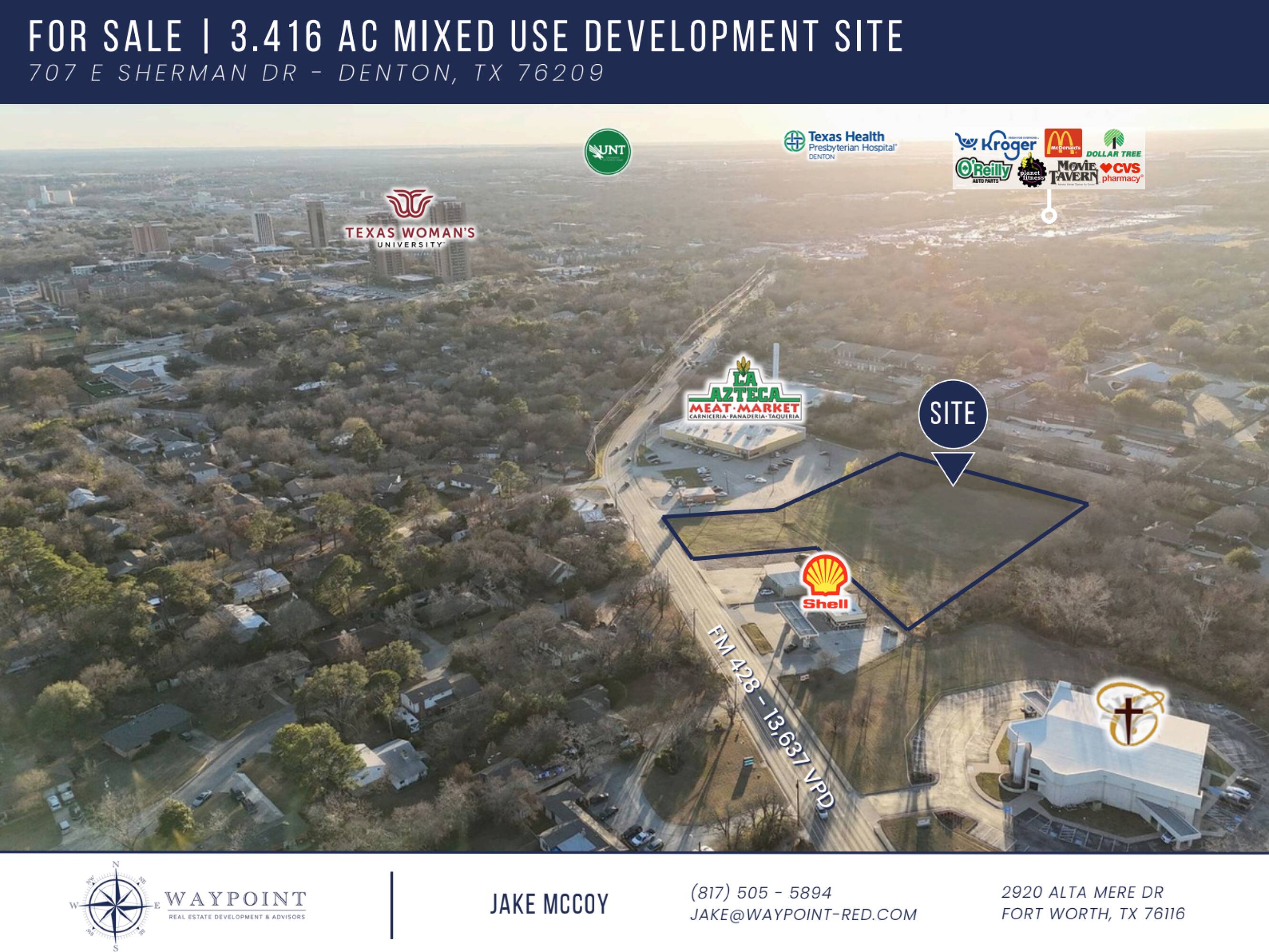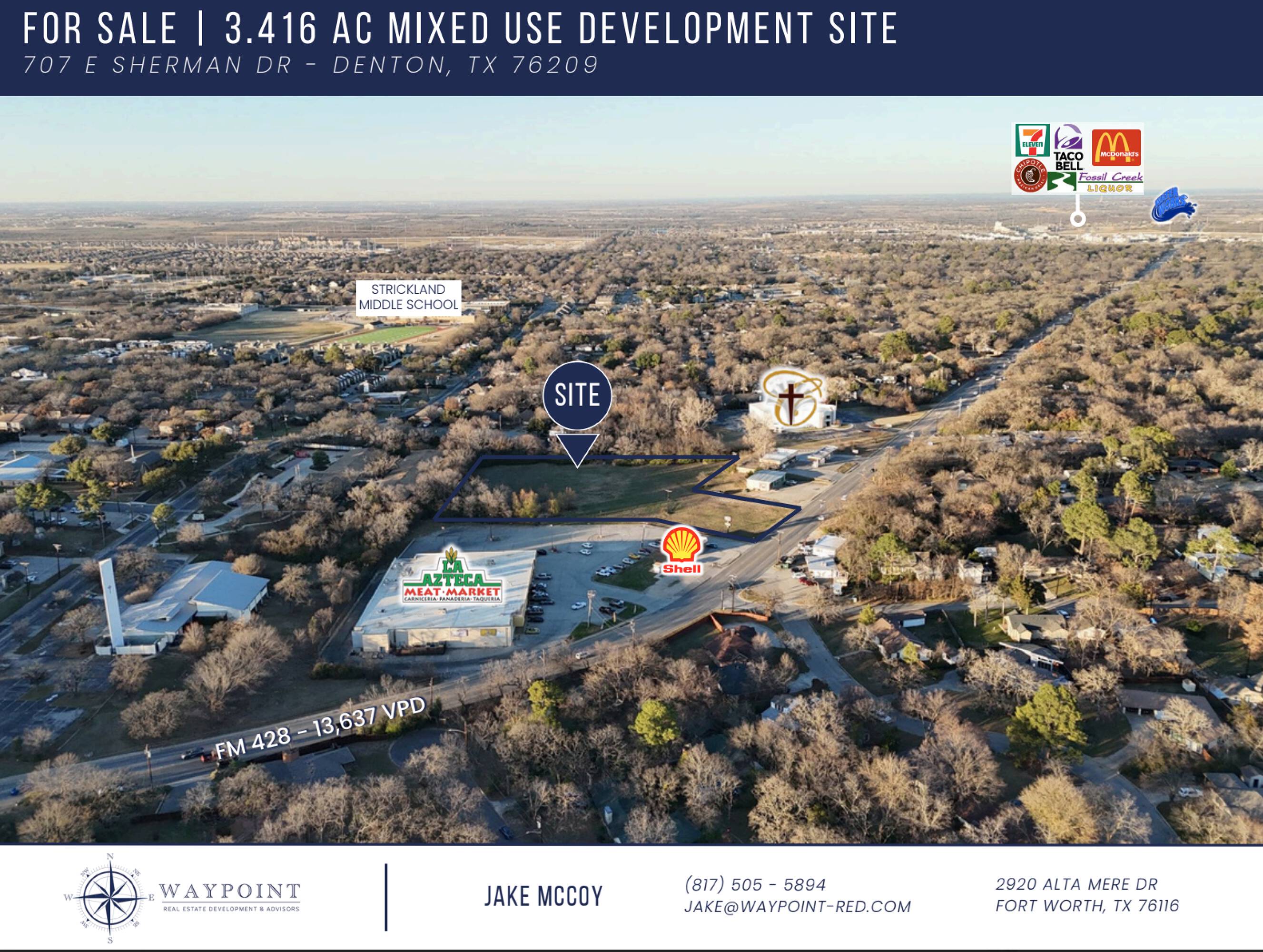 3.416-acre mixed-use development site near University Drive in Denton, TX.
