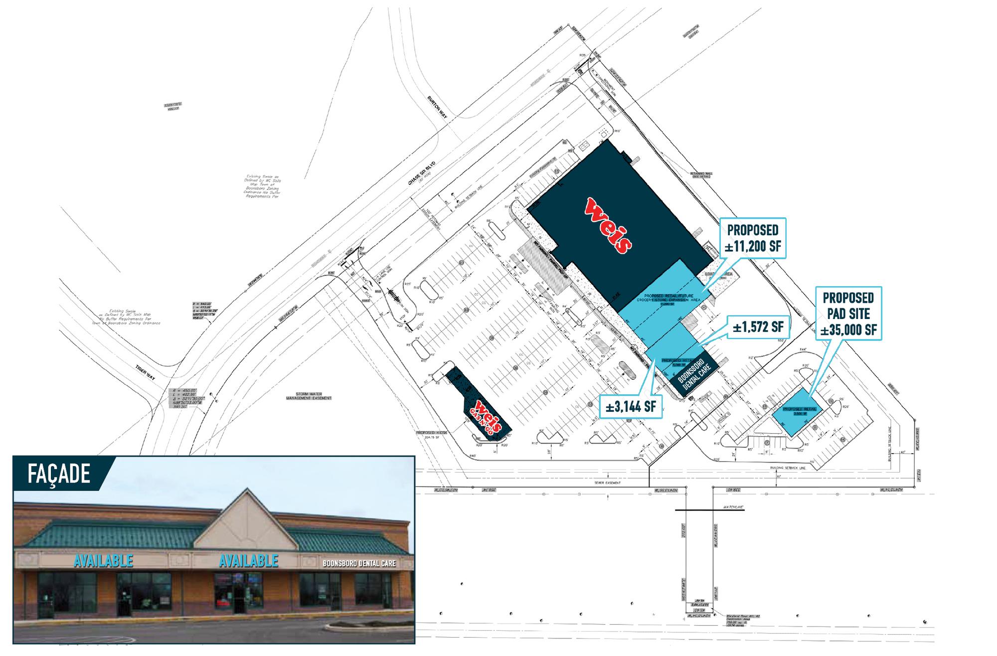 Retail space available in Boonsboro, close to downtown.