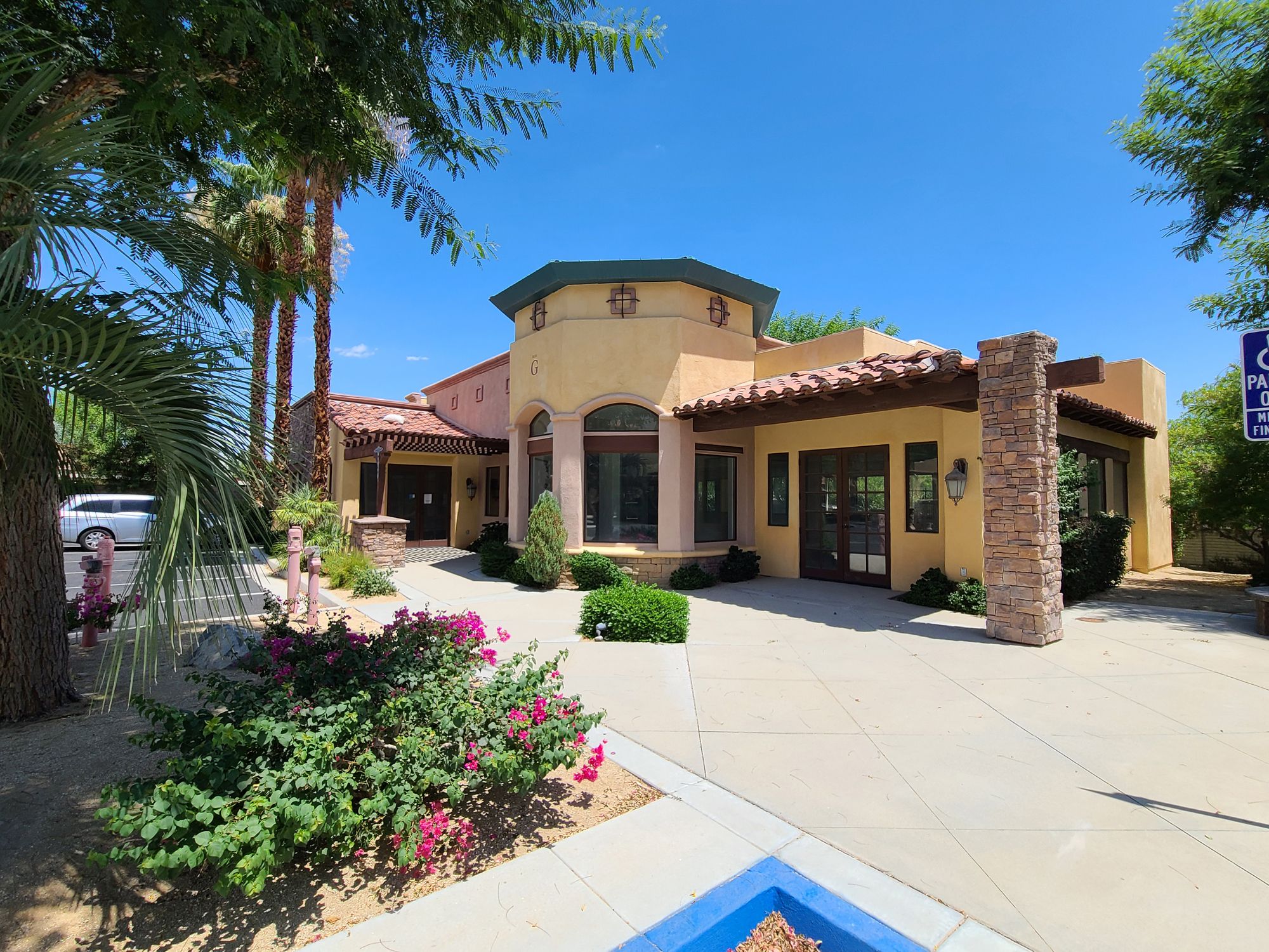 Office building in central Coachella Valley with covered parking.