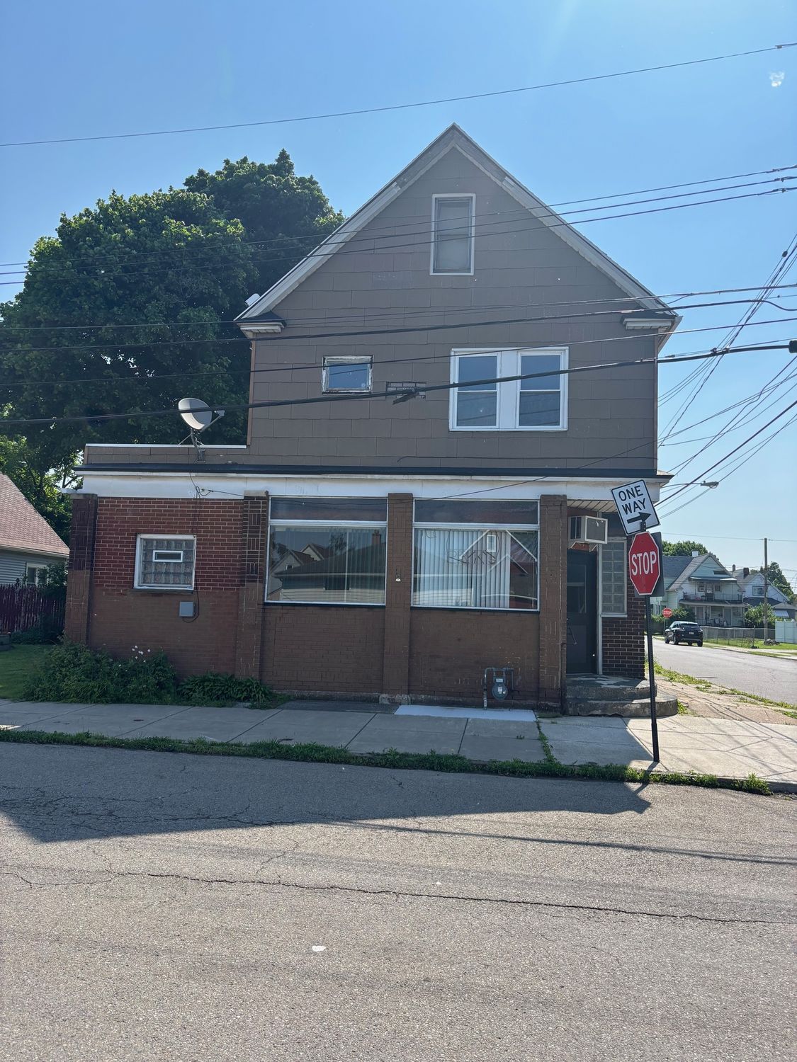 Mixed-use property with bar/restaurant, apartment, and garage.