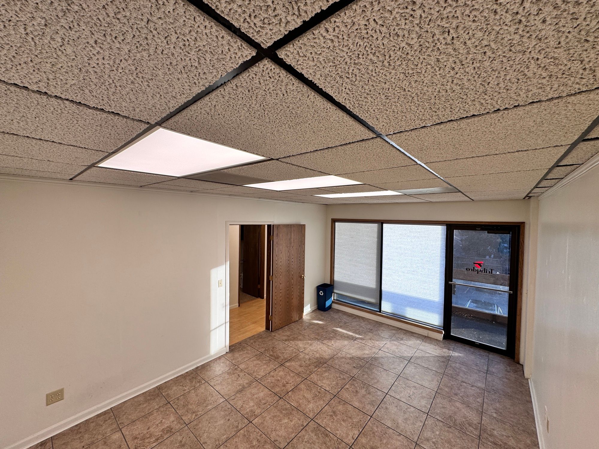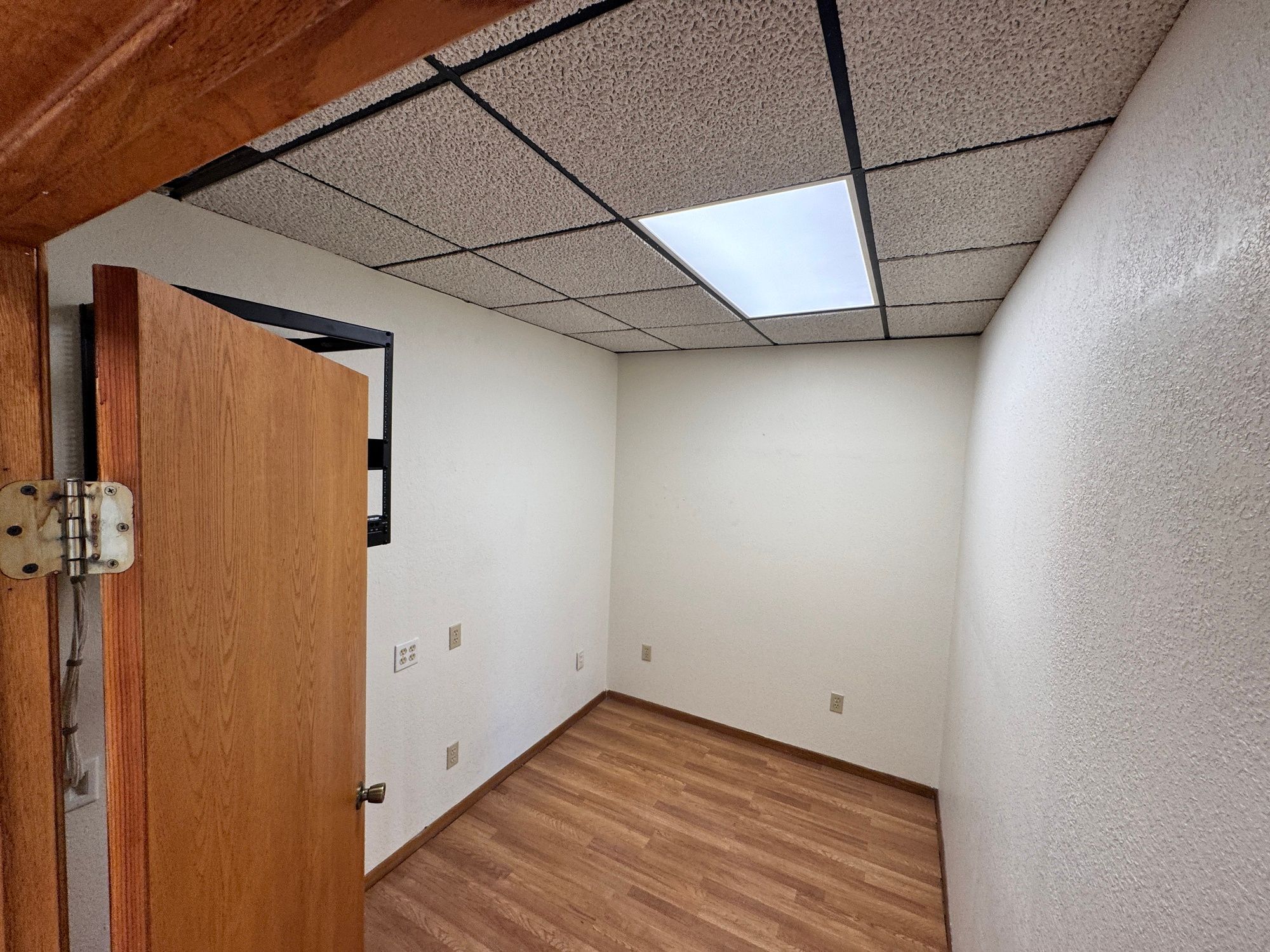 Bright, open office space with private restroom and shared parking.