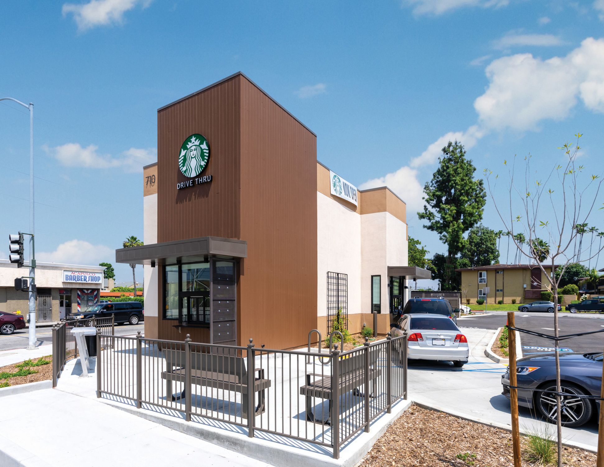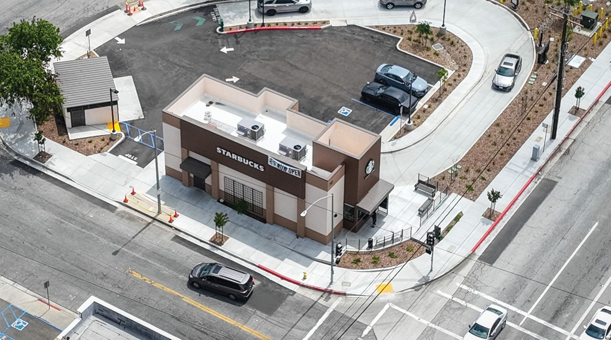 New construction Starbucks with drive-thru in San Gabriel Valley.
