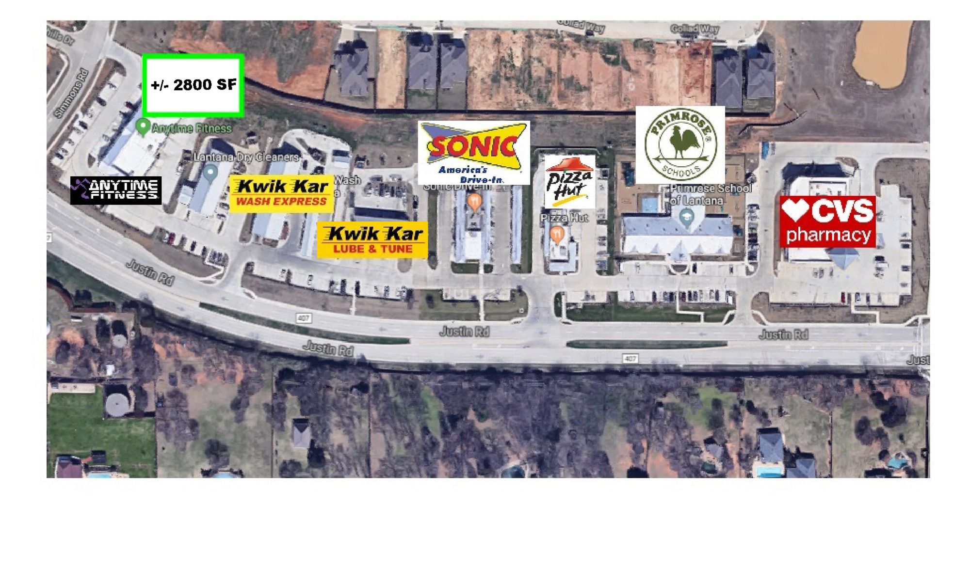 Highly visible retail space with drive-thru in Lantana, Texas.