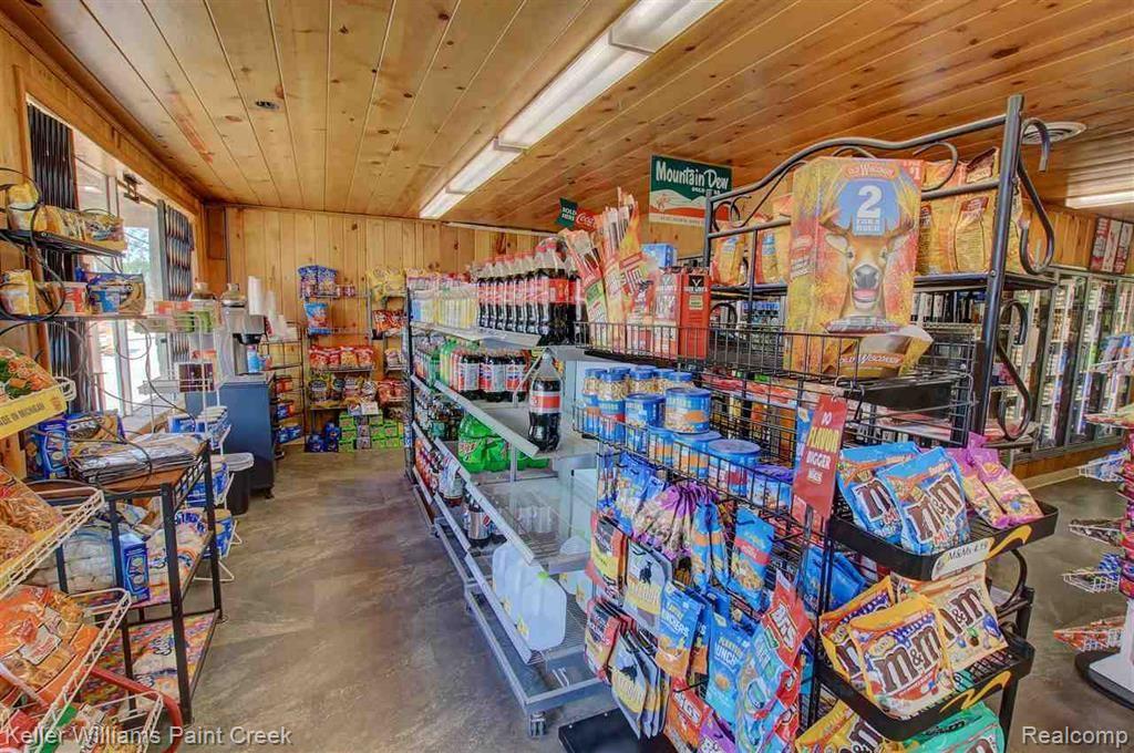 Market and gas station on Elk Lake with waterfront views.