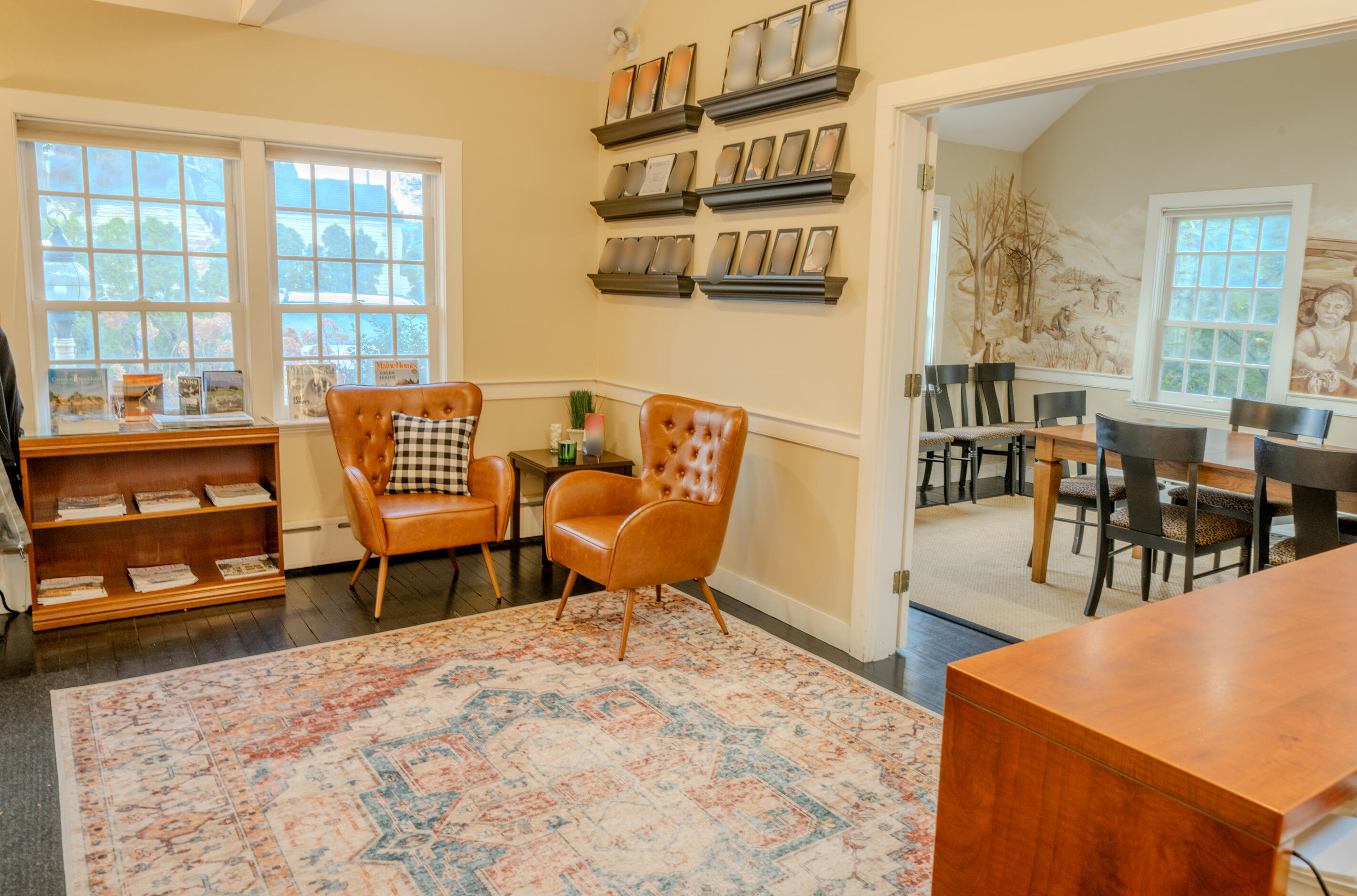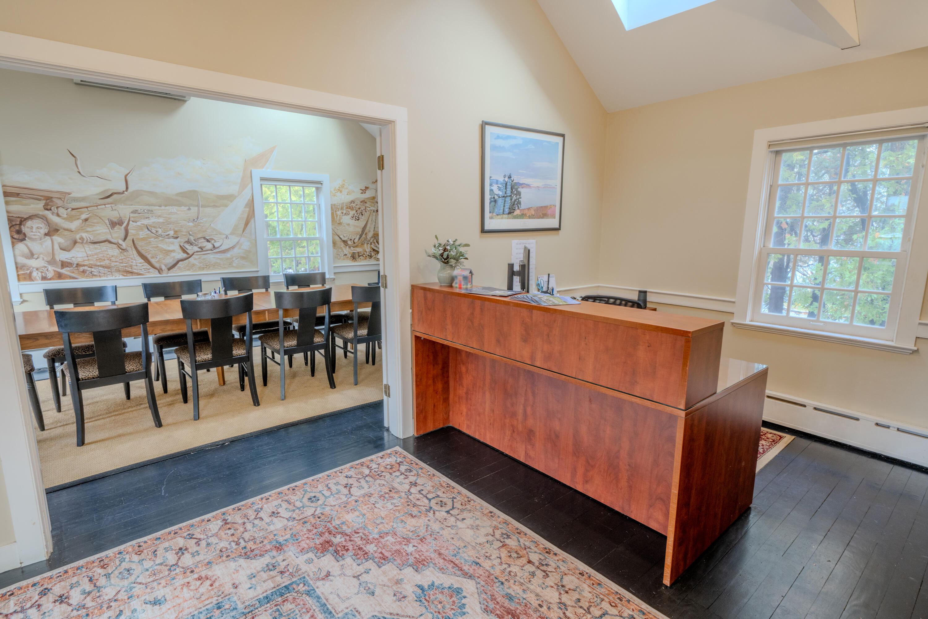 This property features: Two office buildings totaling 6,177 sq ft on 1.2 acres with 29 parking spaces.; **Meticulously renovated front building (3,777 sq ft) featuring a hand‑painted mural and stenciling.**; Rear building (2,400 sq ft) featuring western fir, post & beam construction and cathedral ceilings.