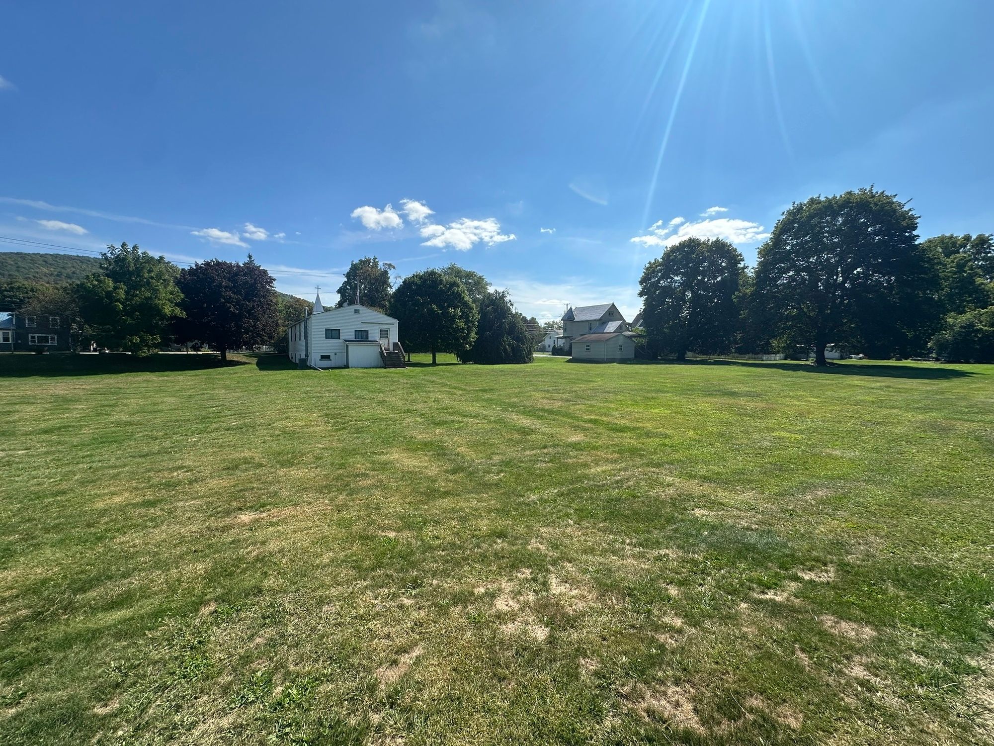 Two-parcel property with church and multi-use building in Almond.