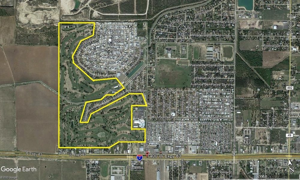 27-hole golf course with clubhouse in Hidalgo County growth corridor.