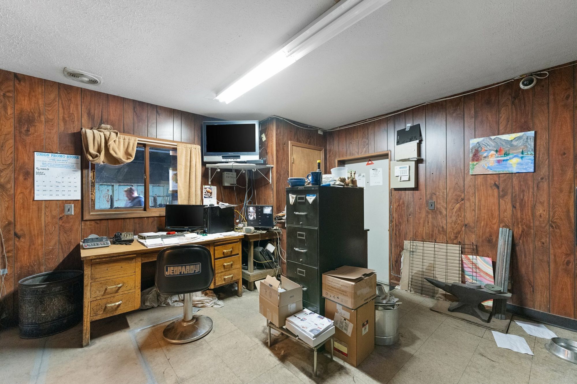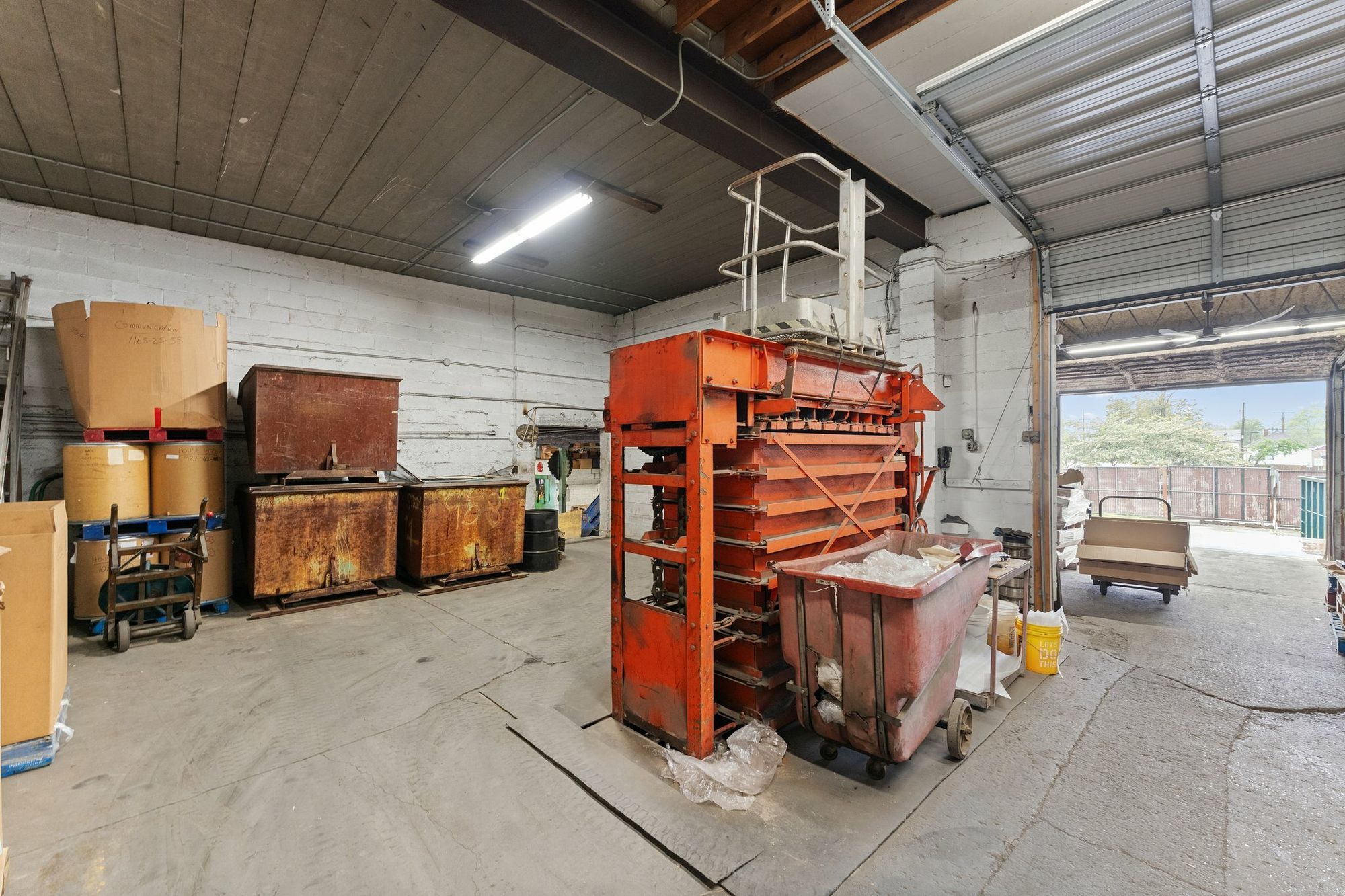 8,833 SF warehouse with fenced lot and six drive-in doors.