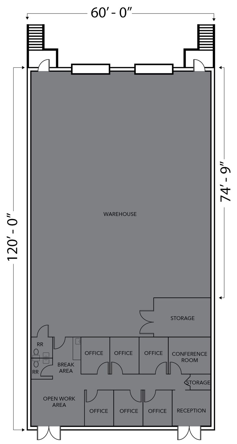 7,241 SF flex space with offices and warehouse areas.