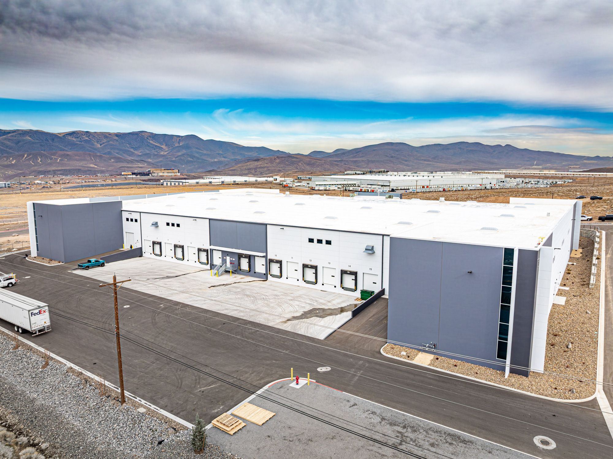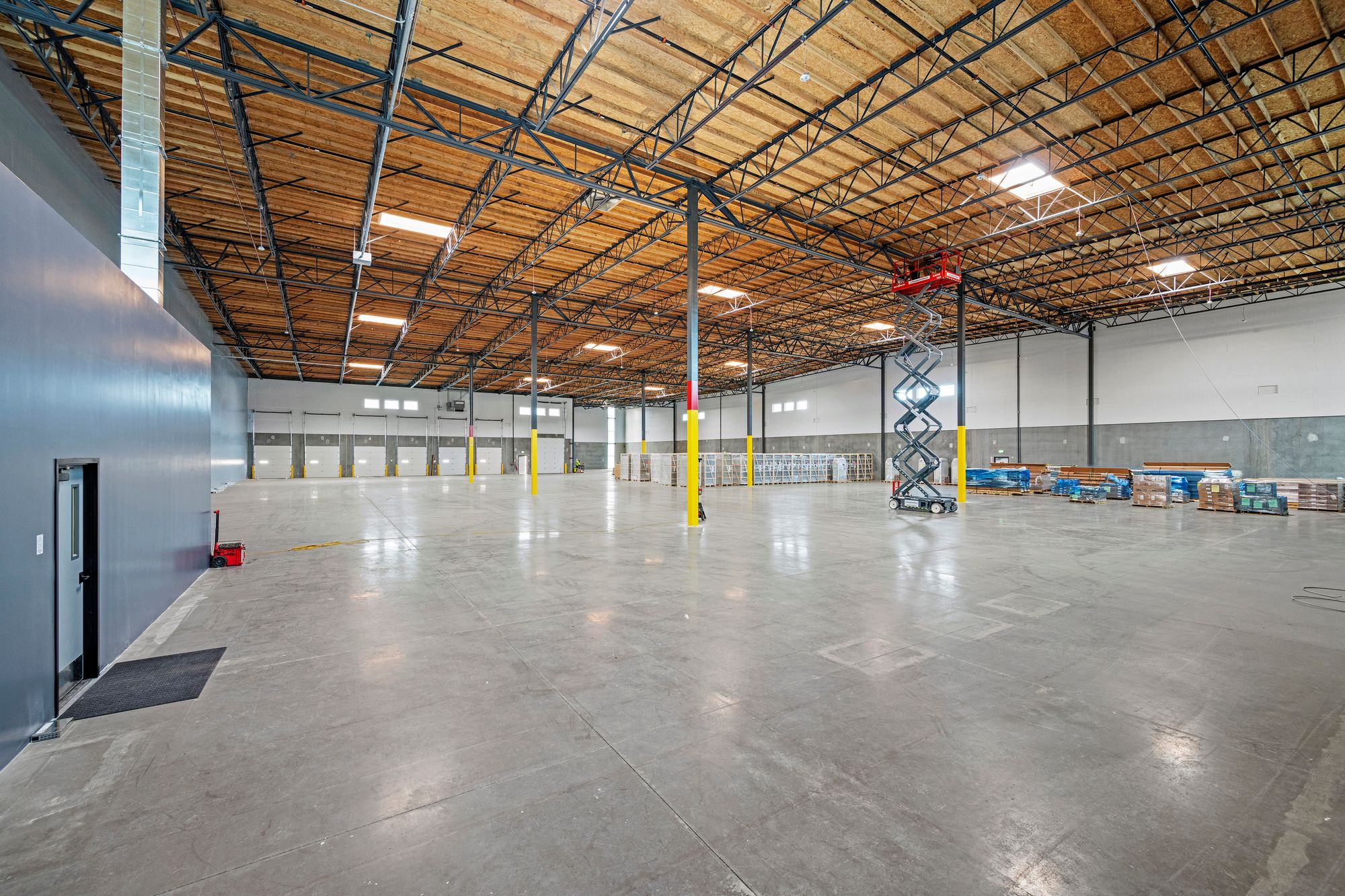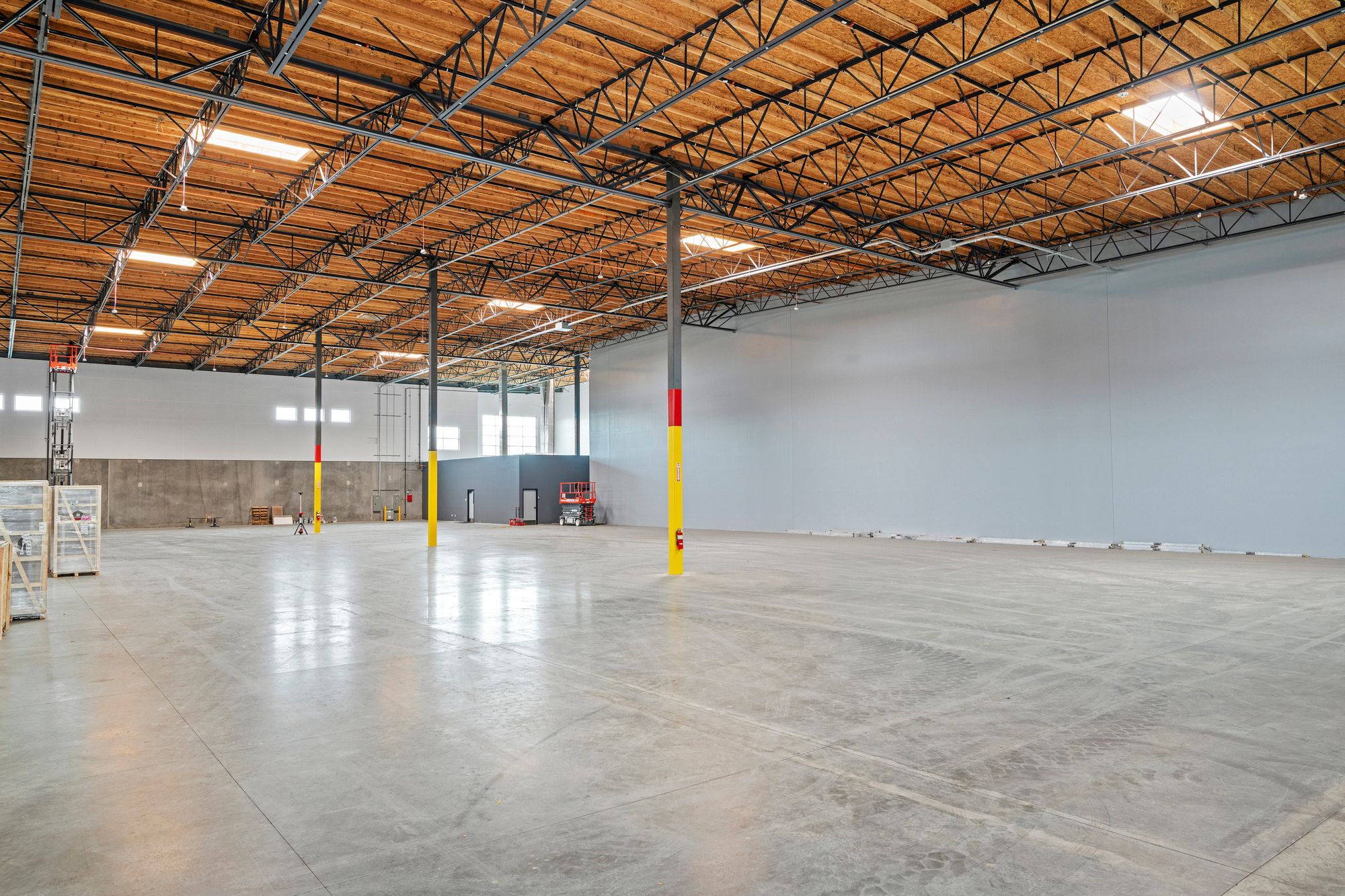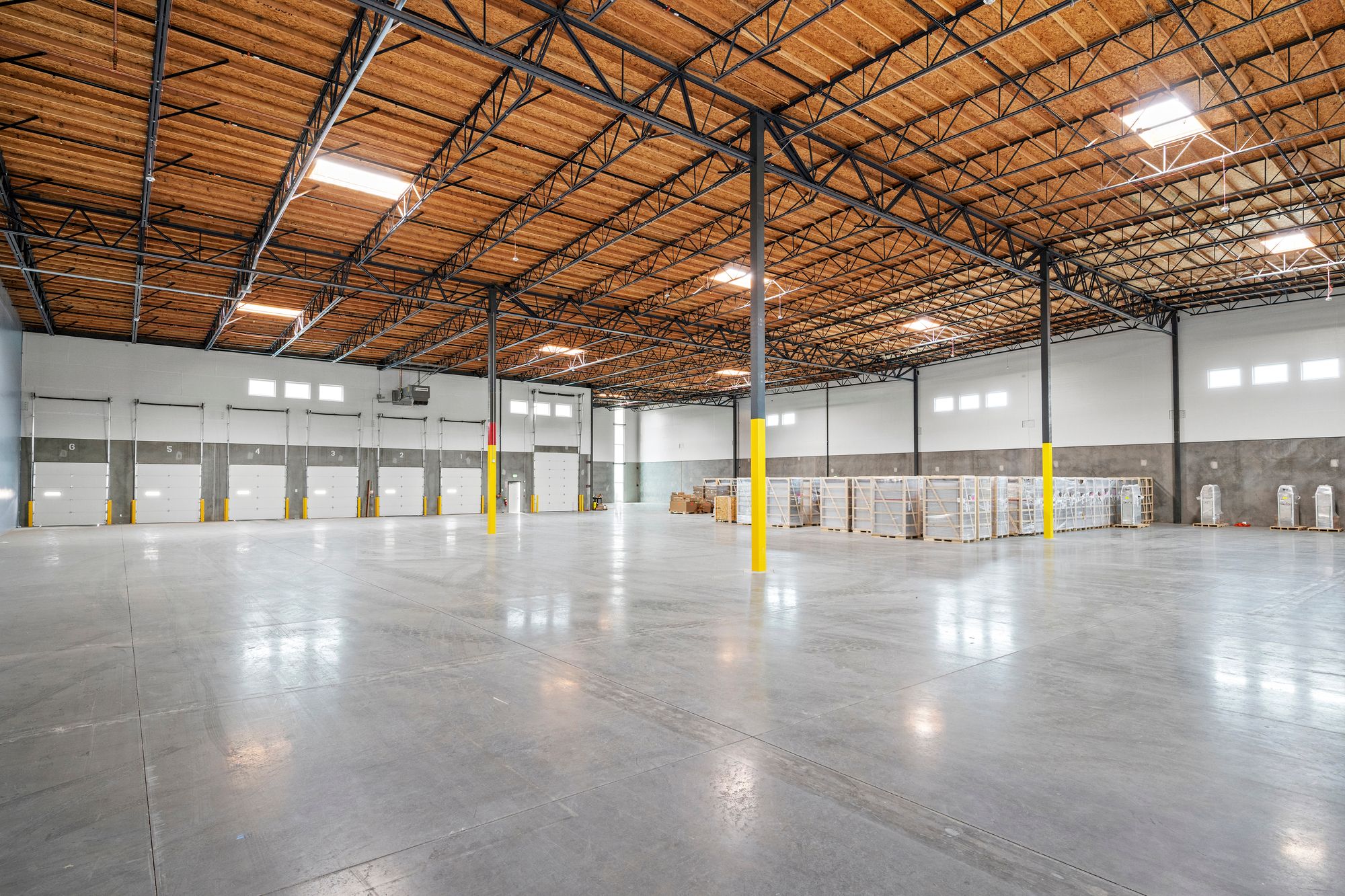 Newly constructed industrial space suitable for distribution, logistics, or manufacturing.