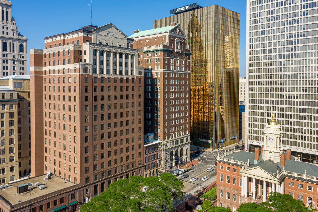 Iconic, modernized office spaces in historic Hartford skyscraper.