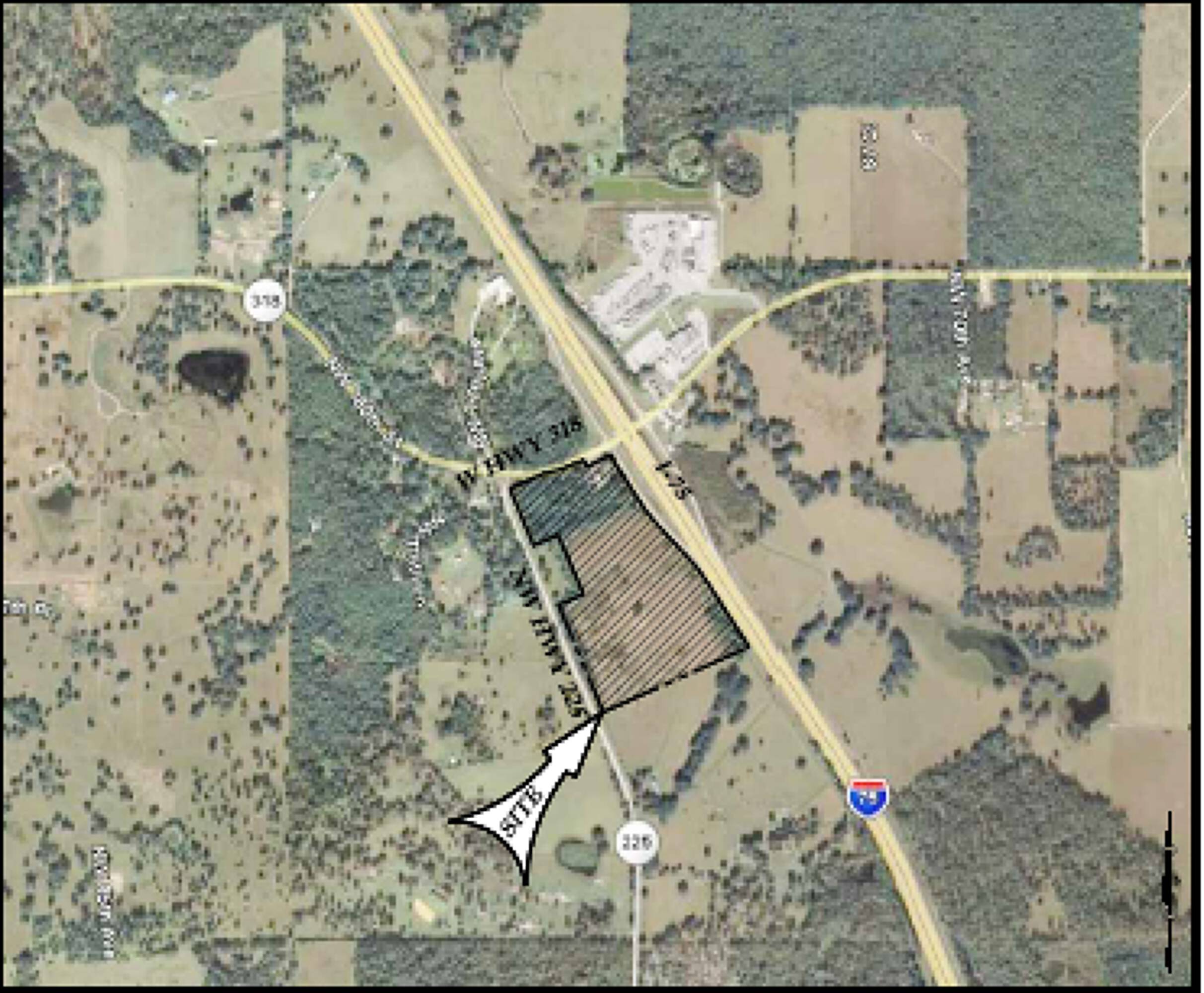 Prime land near I-75 interchange, ideal for development.