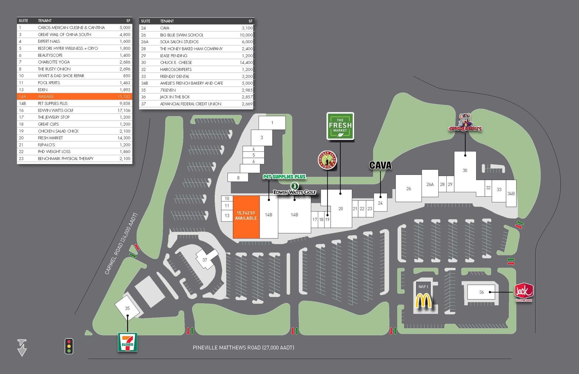 15,742 SF junior anchor space with attractive co-tenancy.